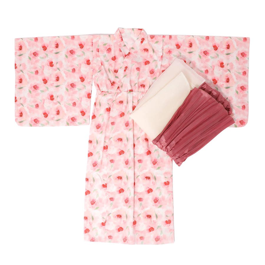 【被るだけ簡単&アレンジ自在】ニュアンスフラワーワンピ浴衣(桃華)+兵児帯2点セ…