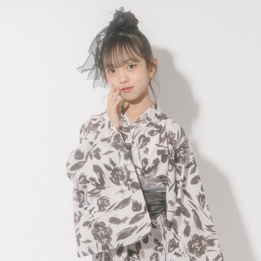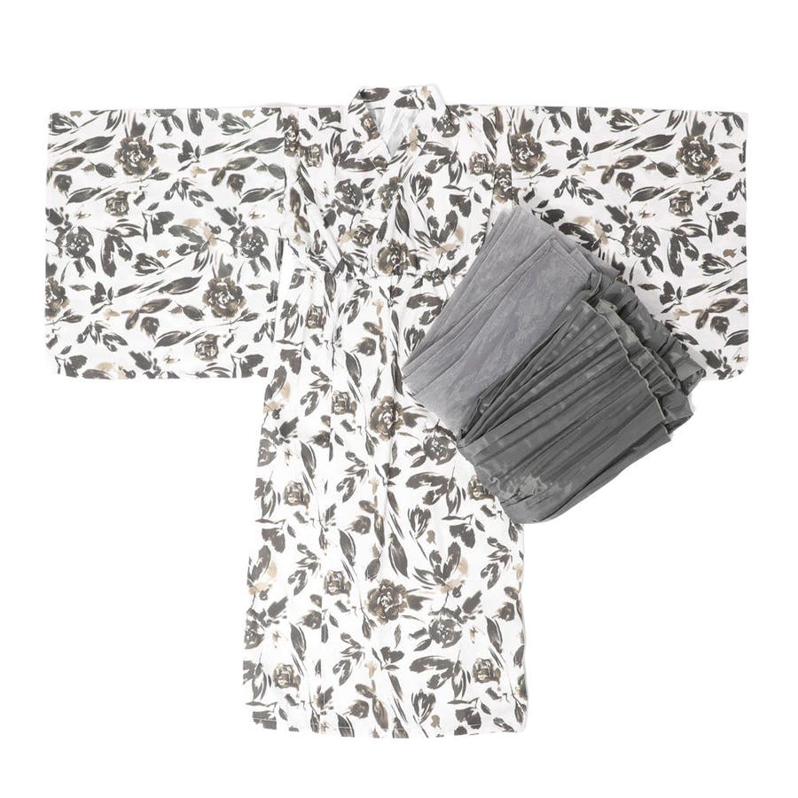 【被るだけ簡単&アレンジ自在】ニュアンスフラワーワンピ浴衣(凛華)+兵児帯2点セ…