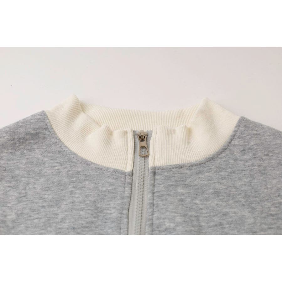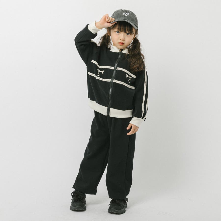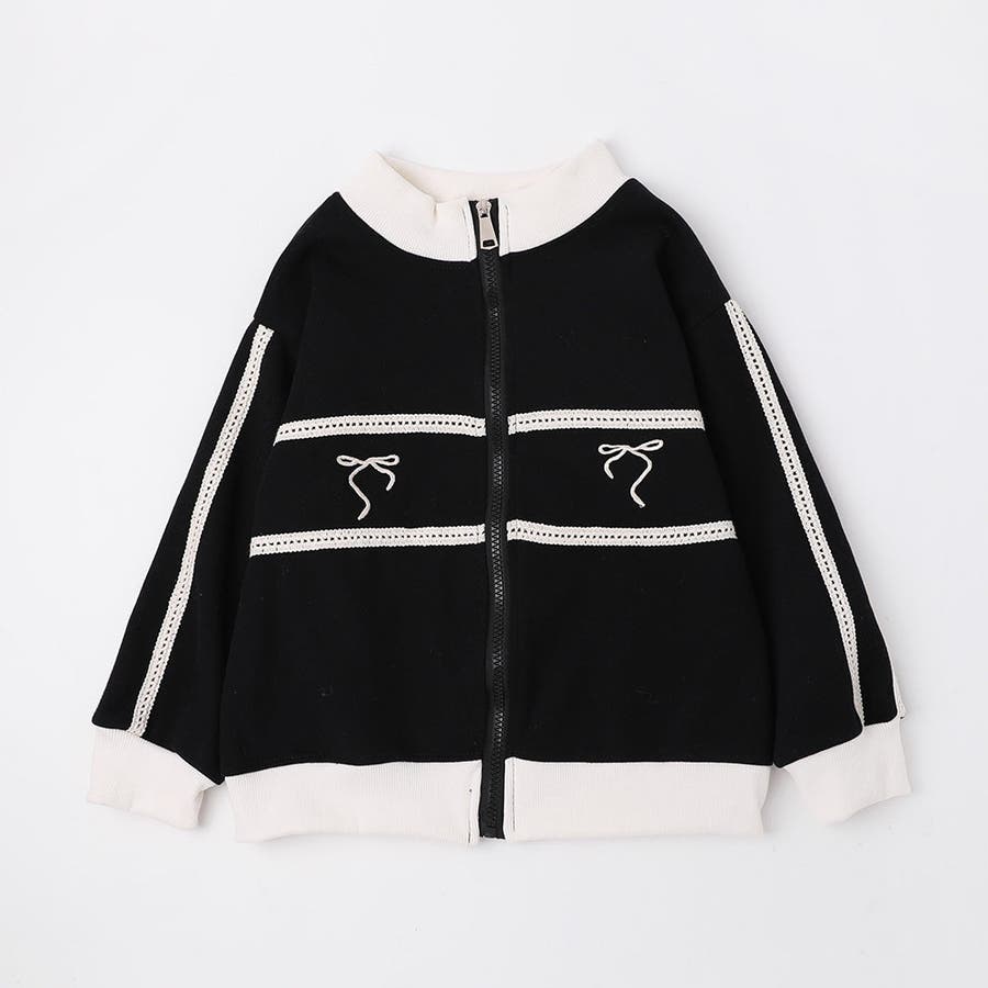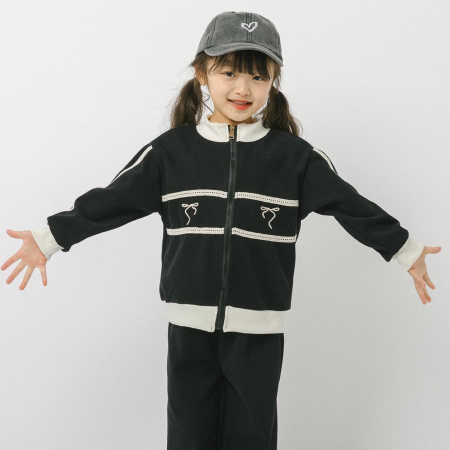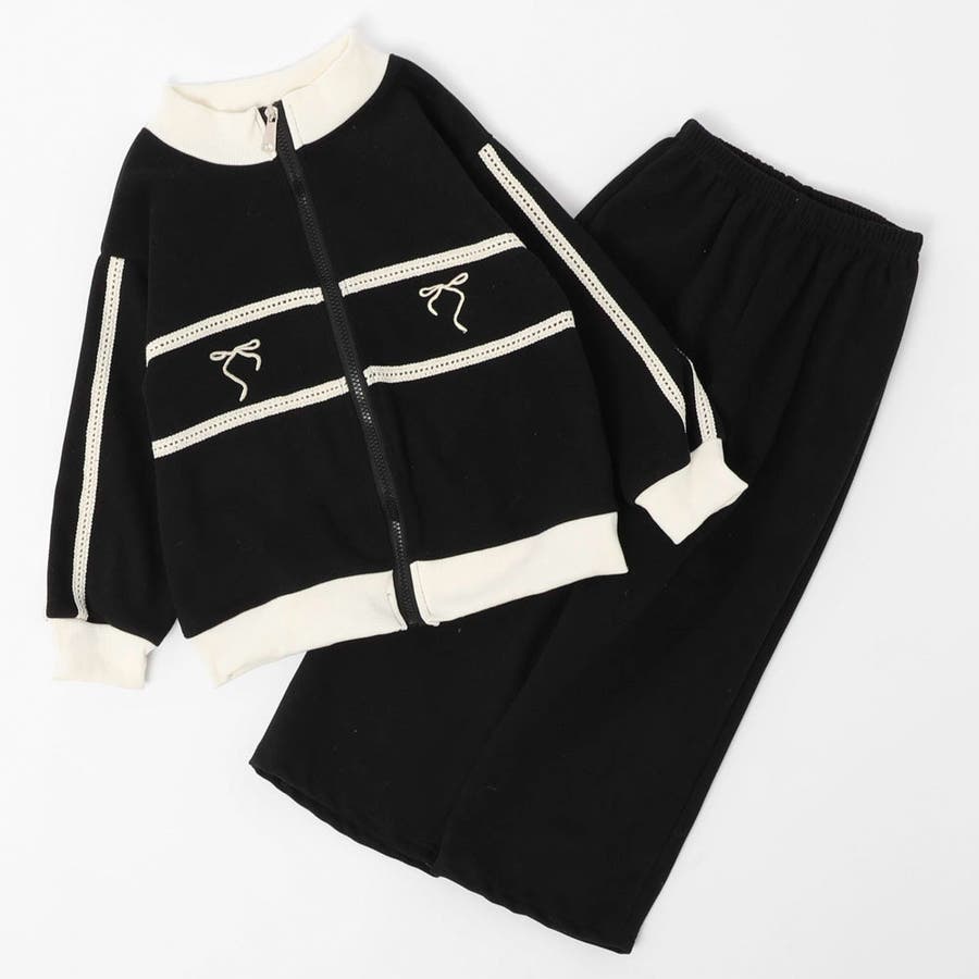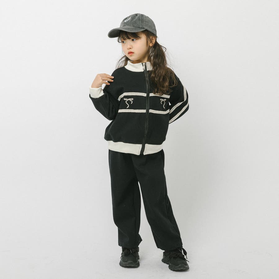 【2点セット】バイカラーフロントリボンデザインジップトップス+ストレートパンツ