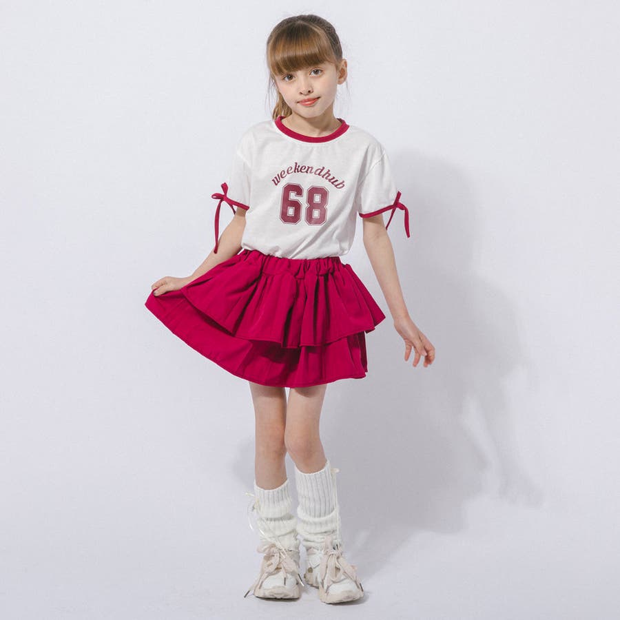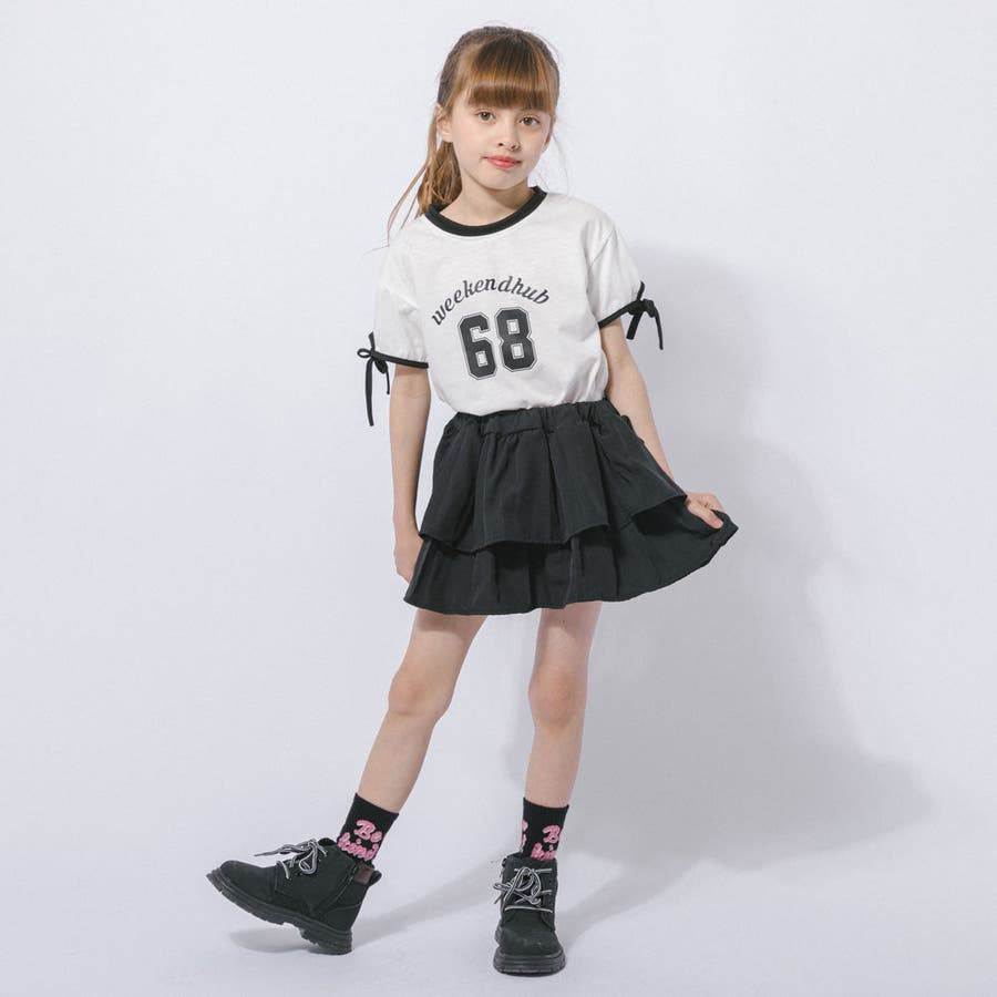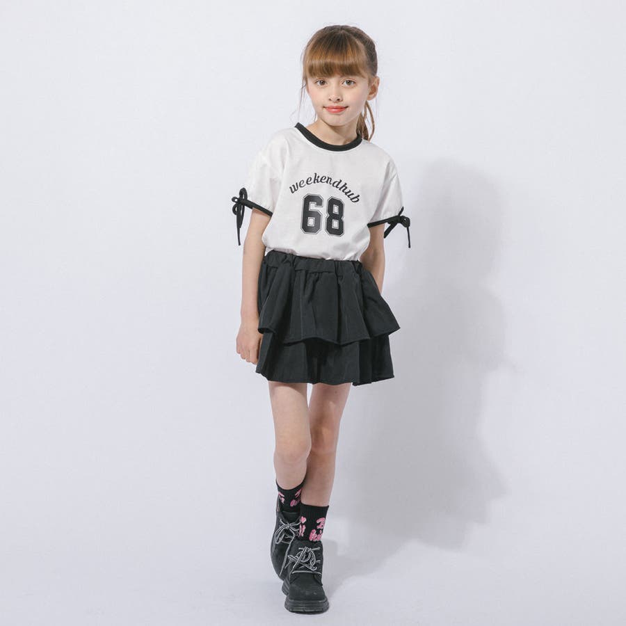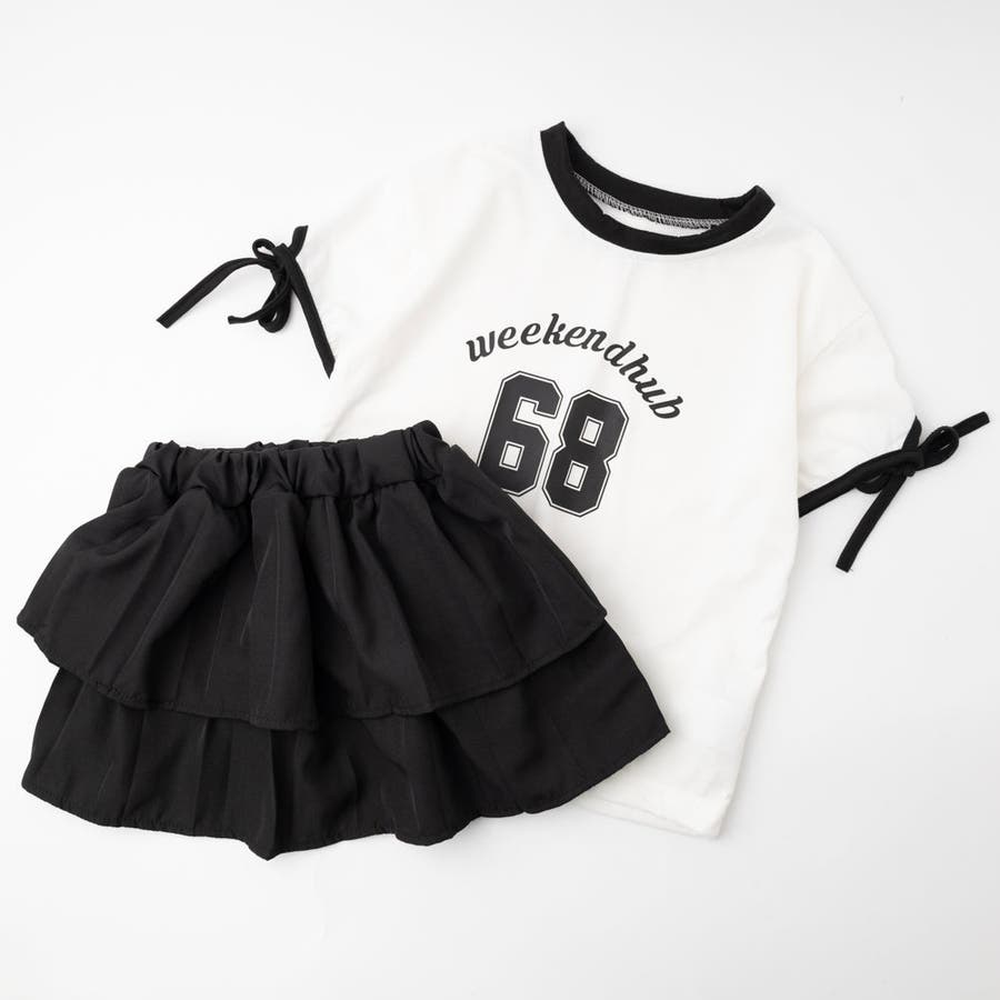 【2点セット】サイドラインロゴプリントトップス+ティアードスカート