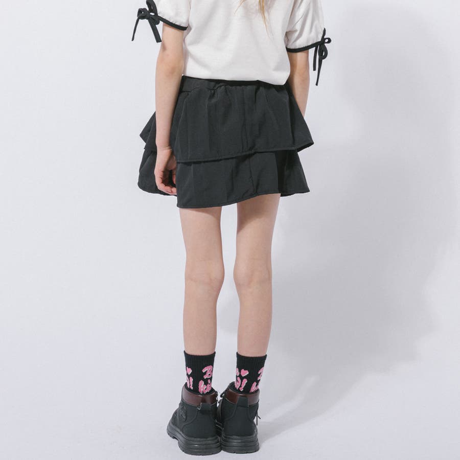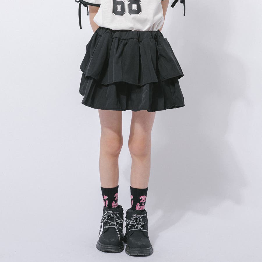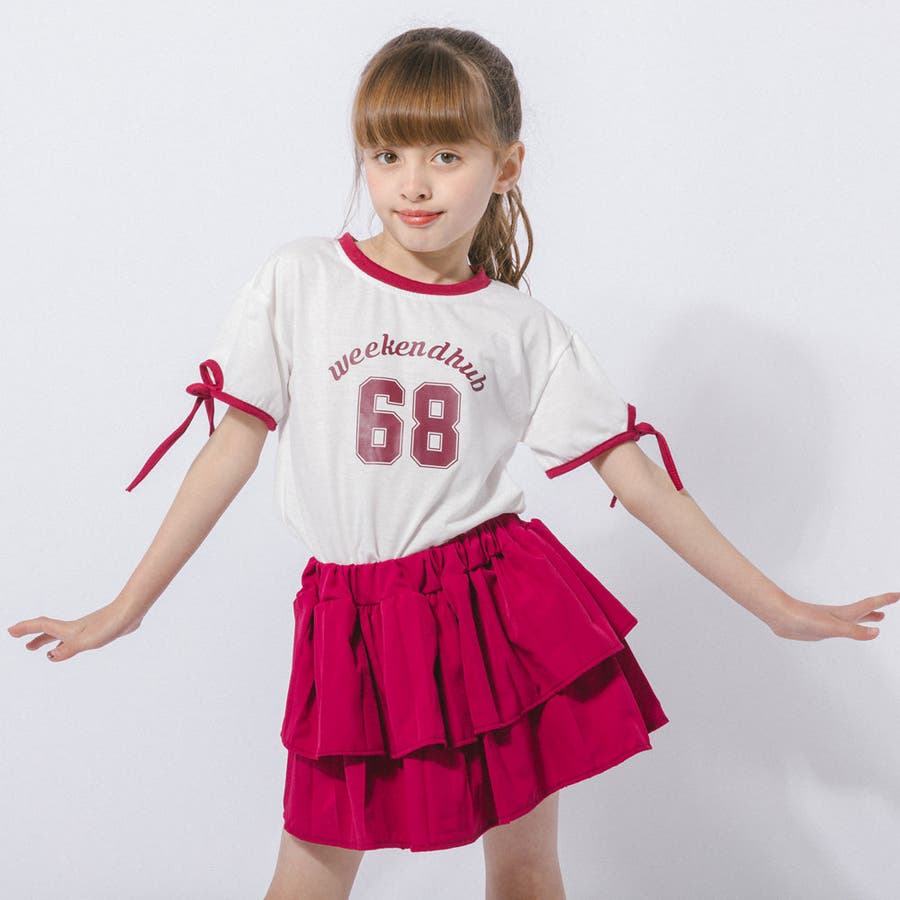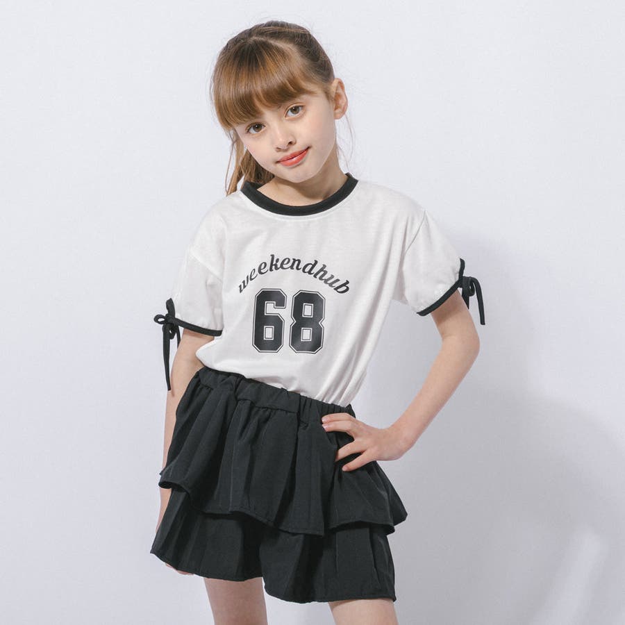 【2点セット】サイドラインロゴプリントトップス+ティアードスカート