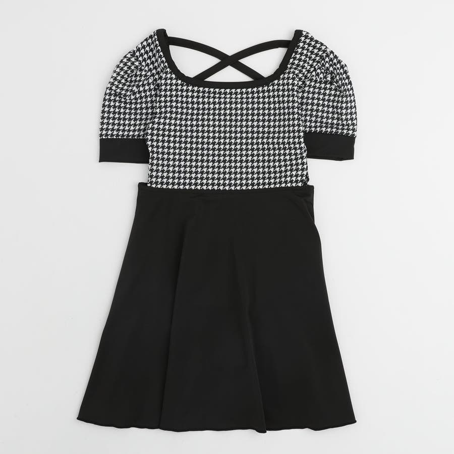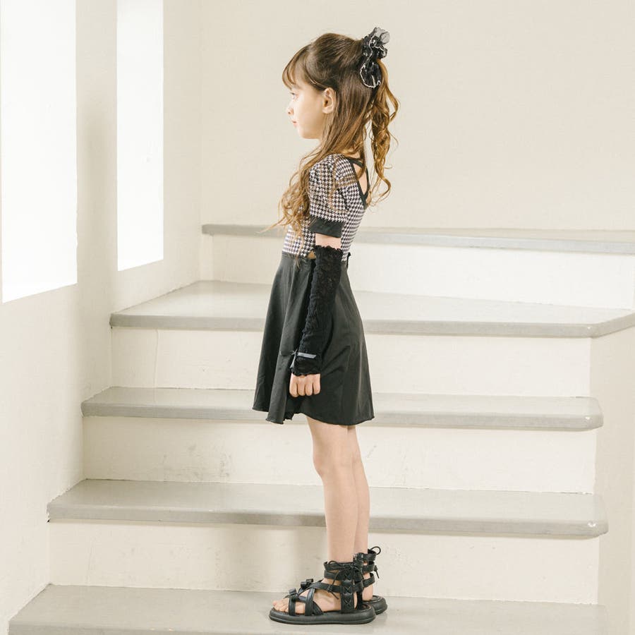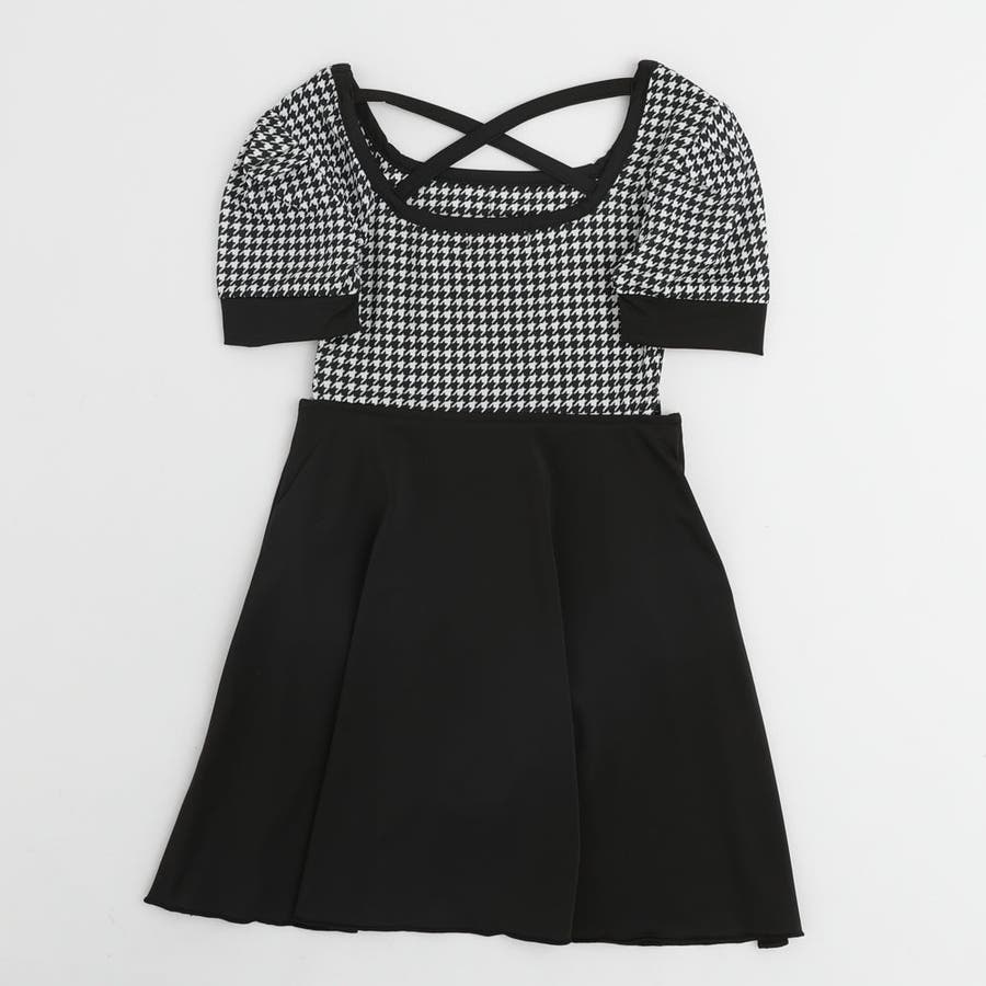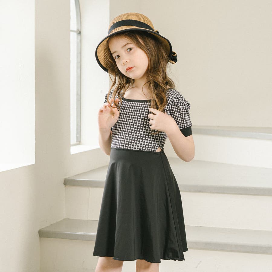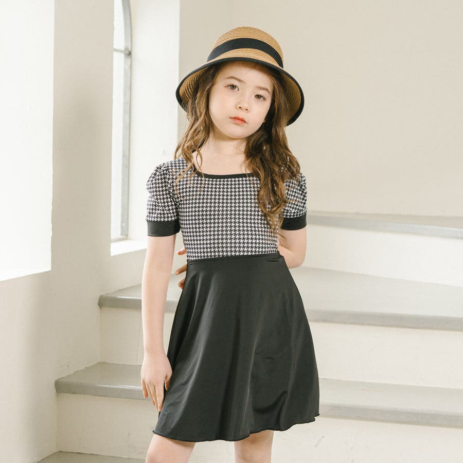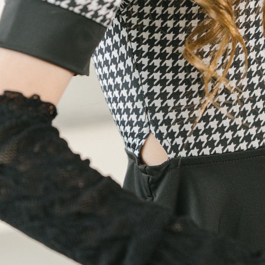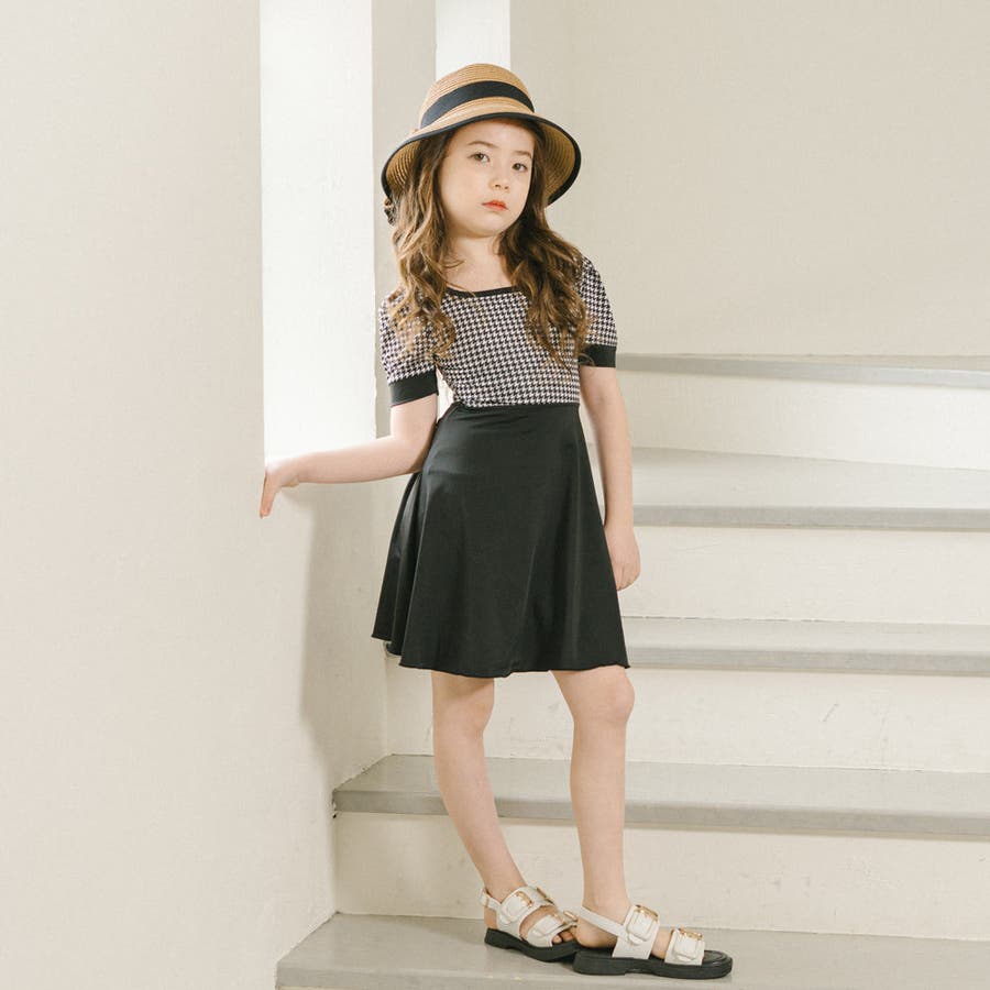 シックな千鳥格子柄のカラーリングとガーリーなAラインシルエットスカートが