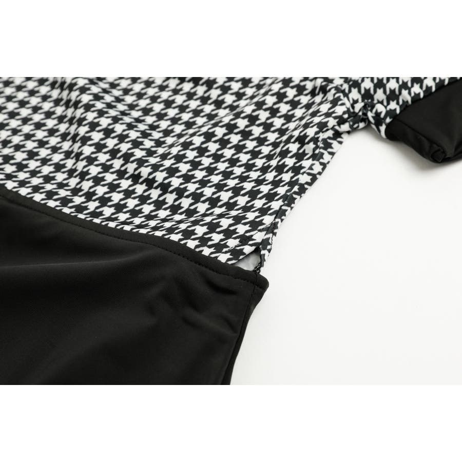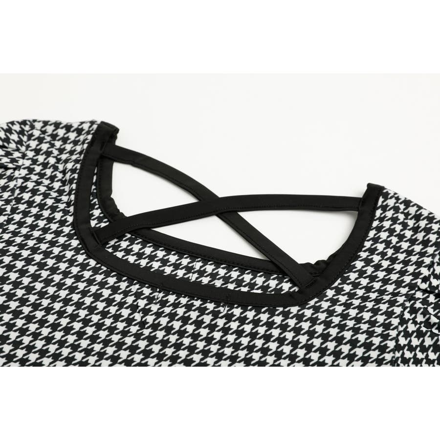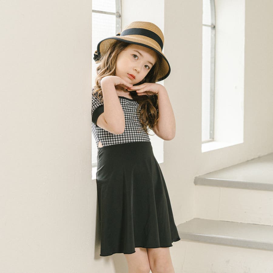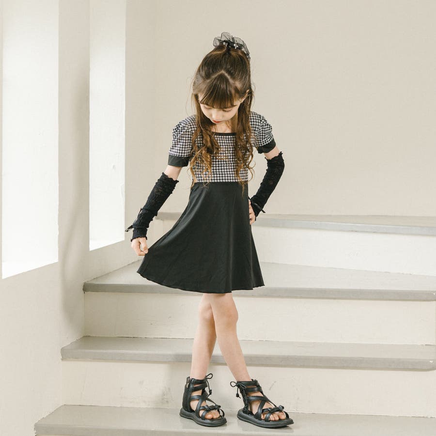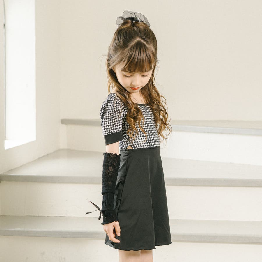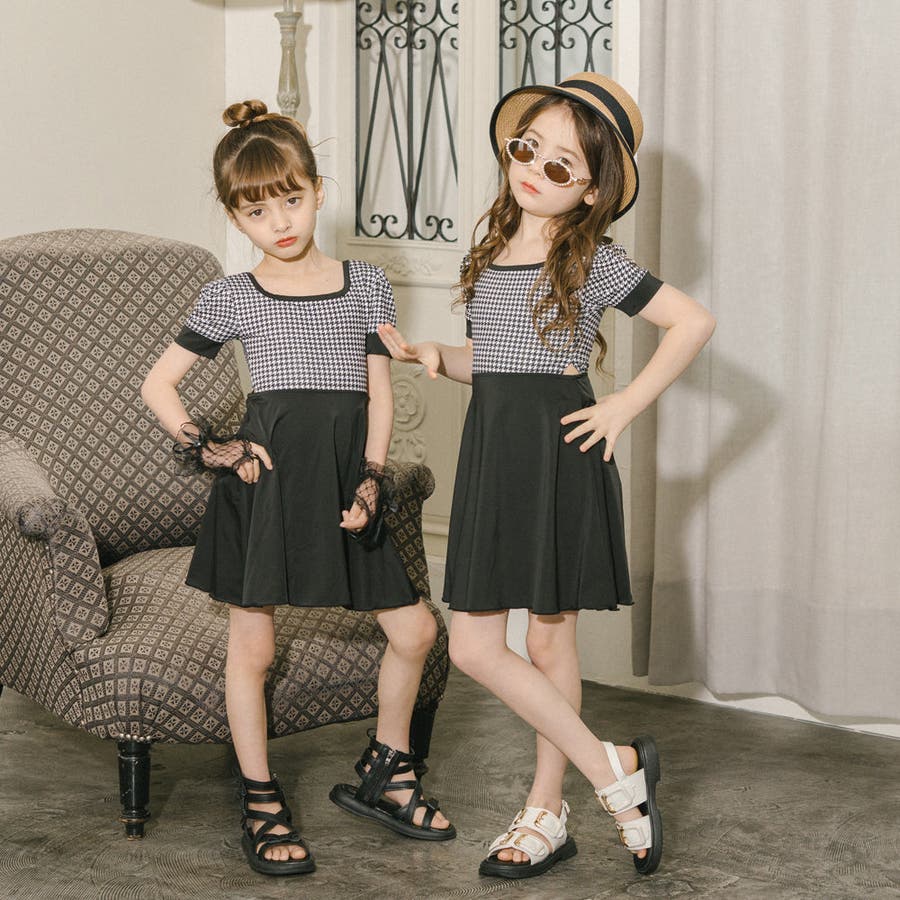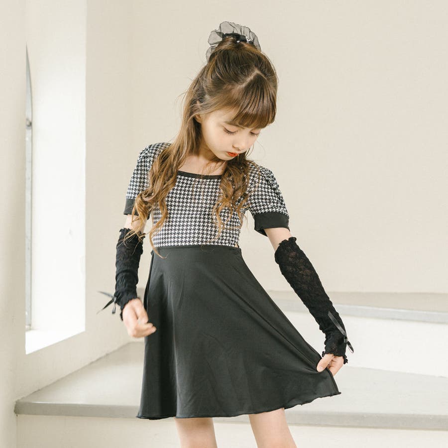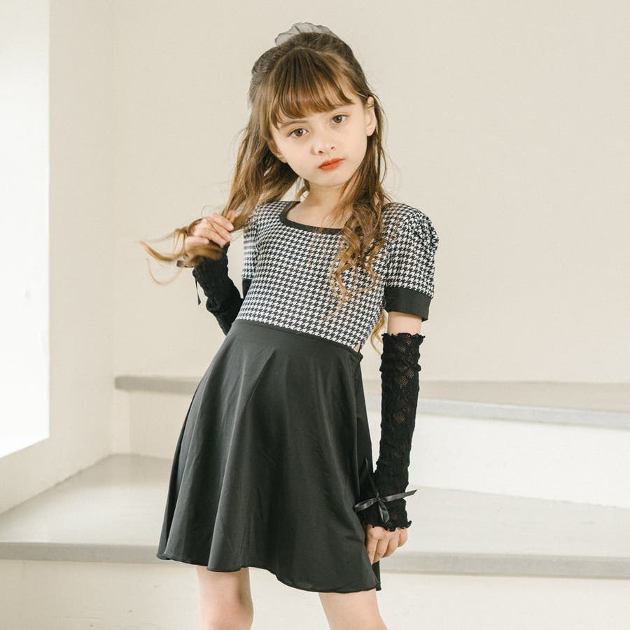 シックな千鳥格子柄のカラーリングとガーリーなAラインシルエットスカートが