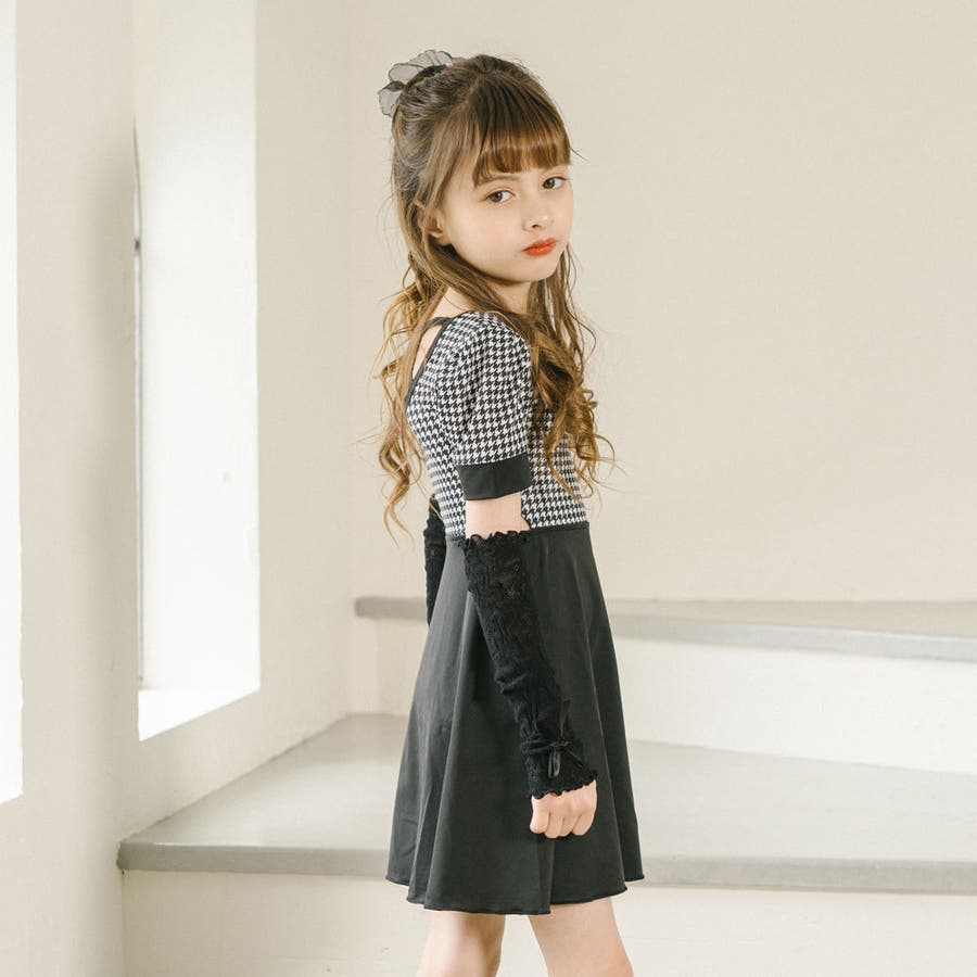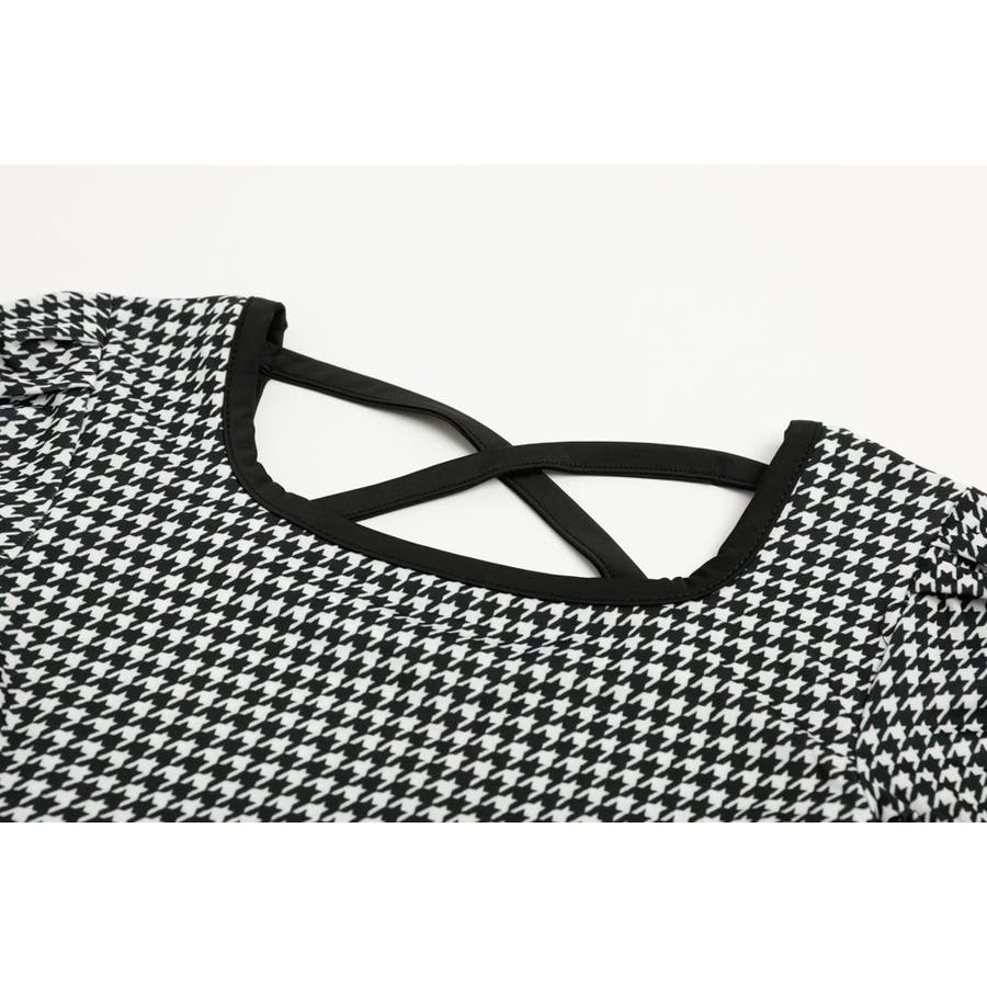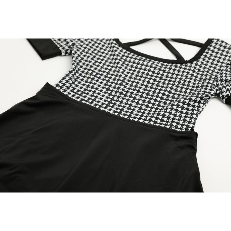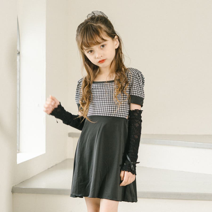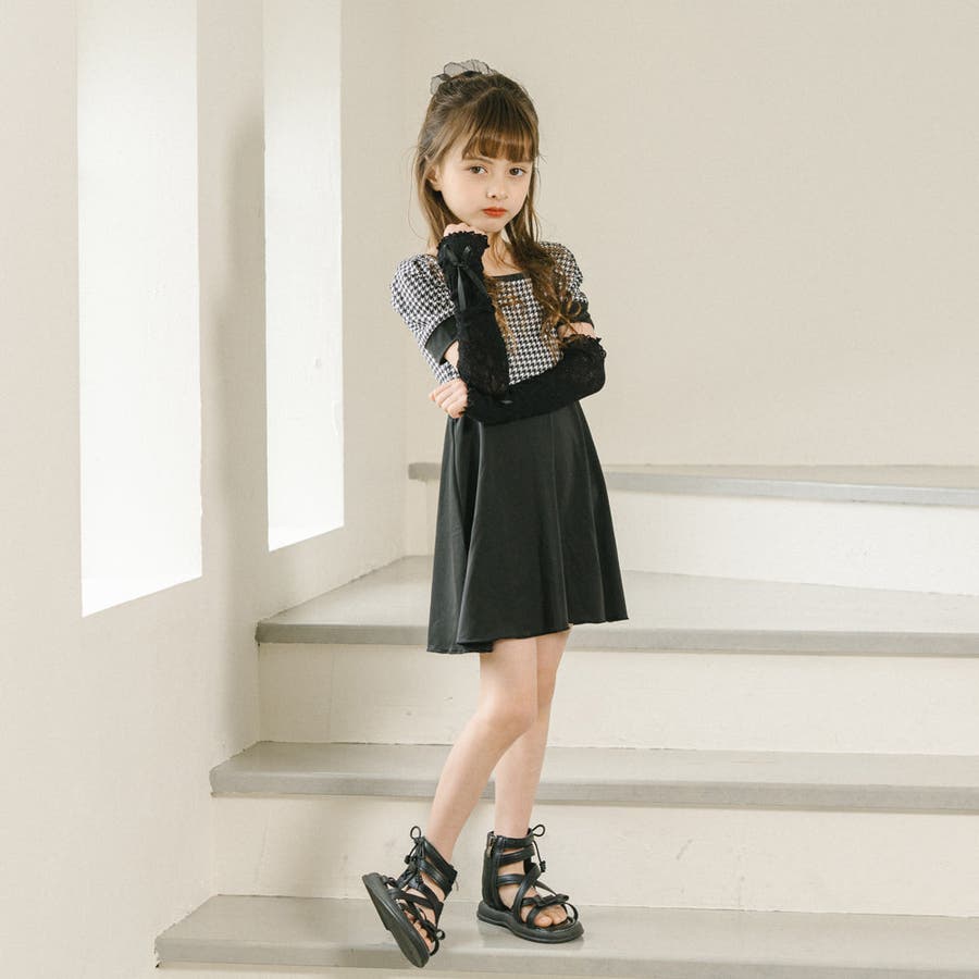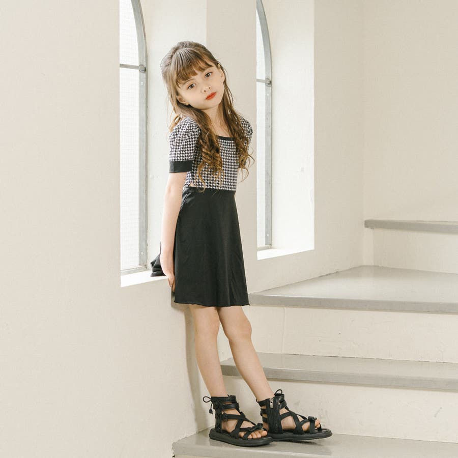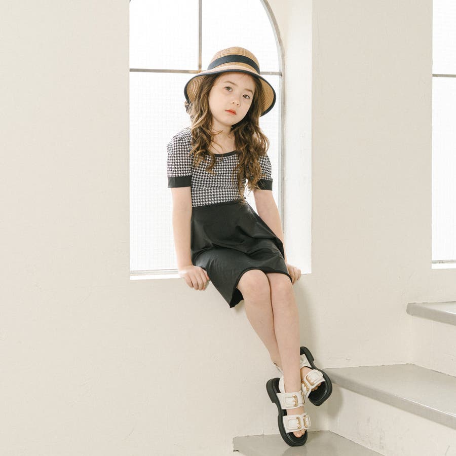 シックな千鳥格子柄のカラーリングとガーリーなAラインシルエットスカートが