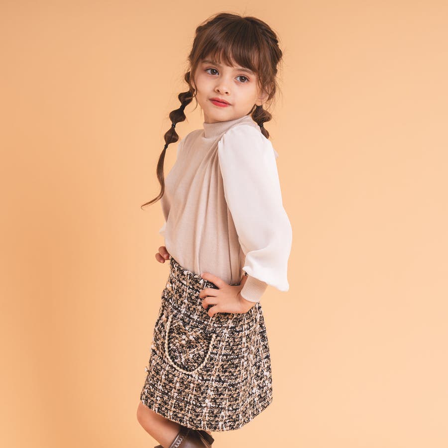トップス身頃:ポリエステル95% ポリウレタン5% /袖シフォン生地:ポリエステル100%
