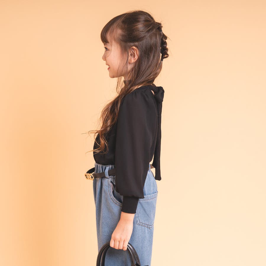 こなれ感あるバックリボンデザインとシアー袖切り替えがこなれ感あるデザインプルオーバー。