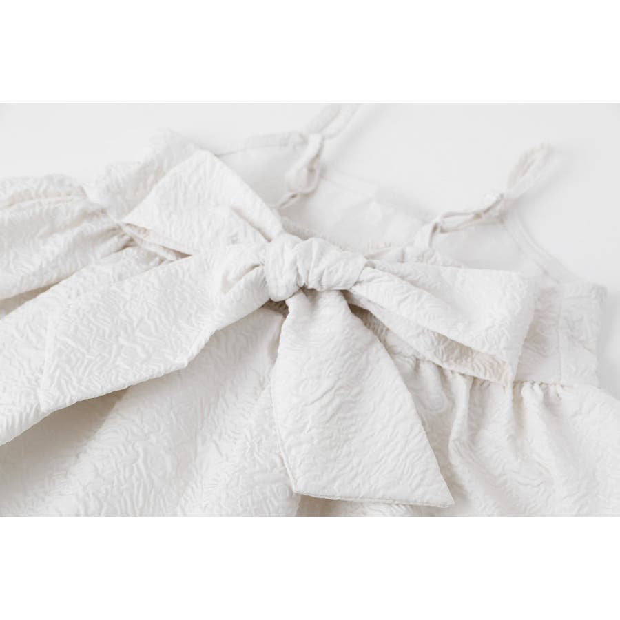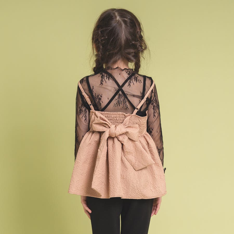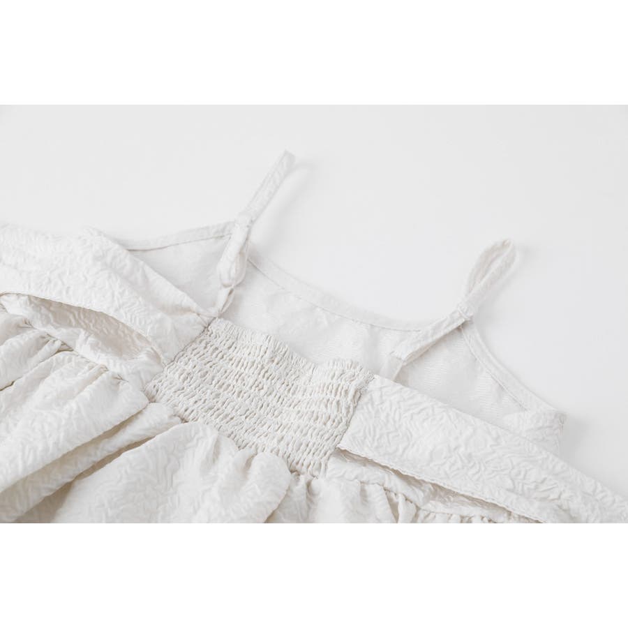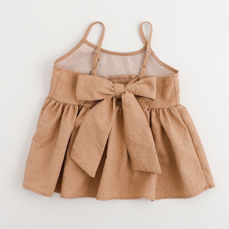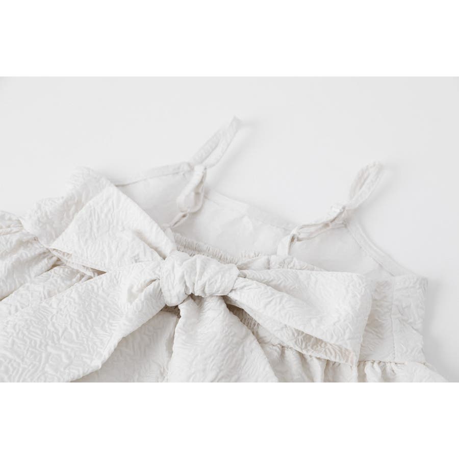 トレンド素材の表情のあるジャガード生地で華やかな印象になるバックリボンで後ろ姿までかわいいビスチェ。