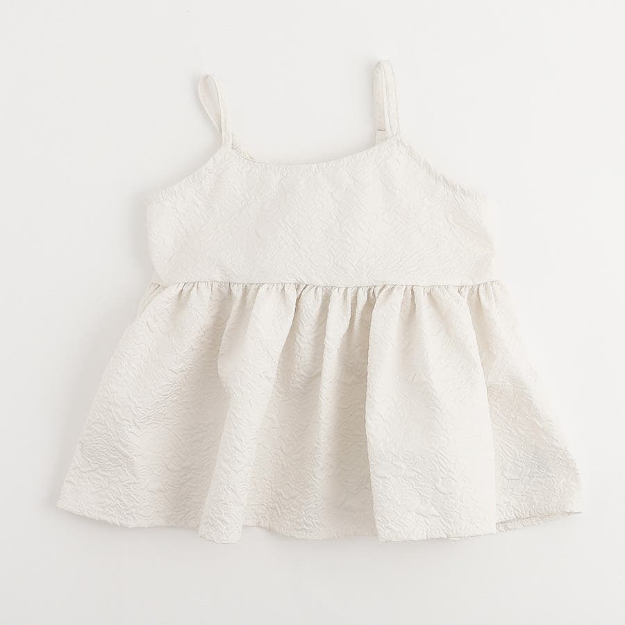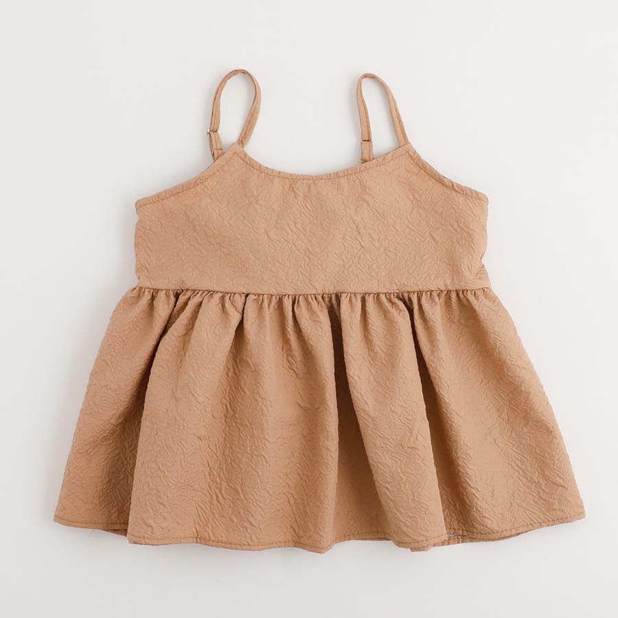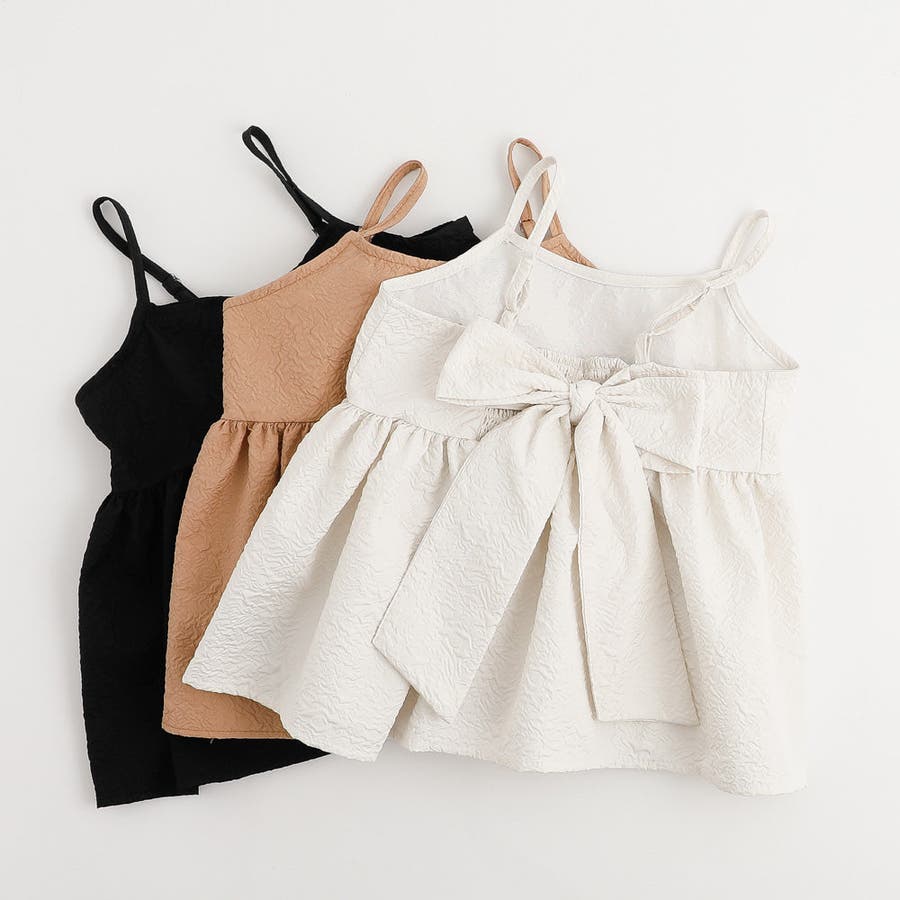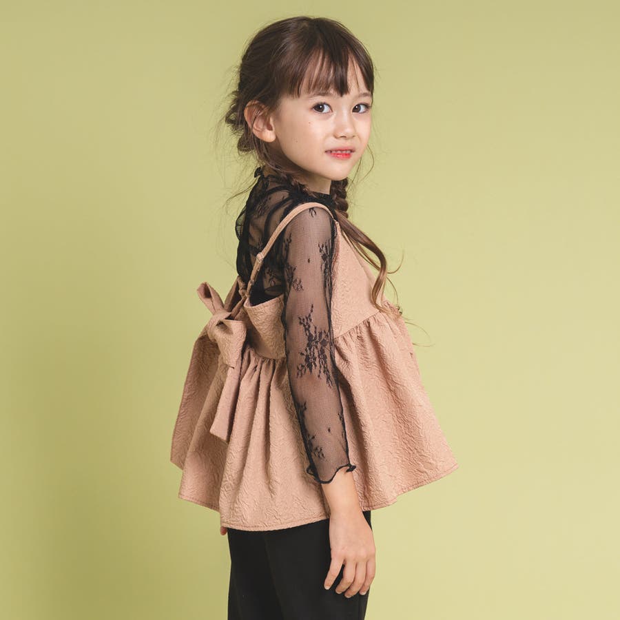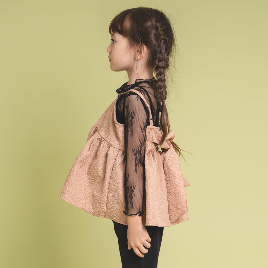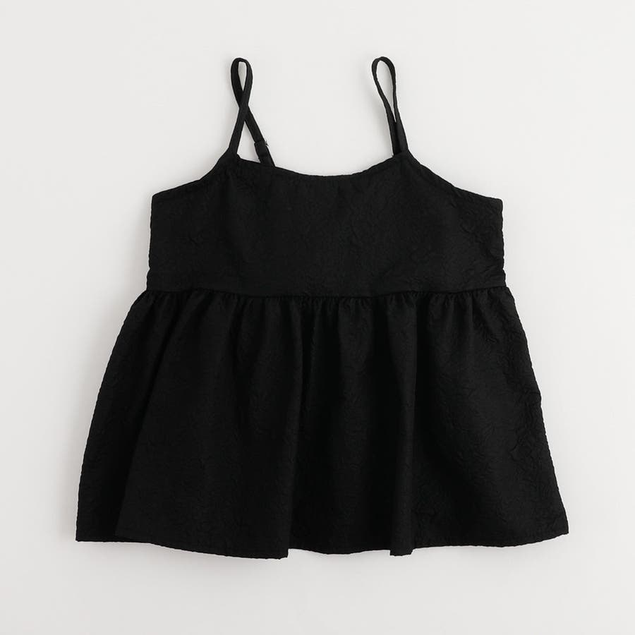 トレンド素材の表情のあるジャガード生地で華やかな印象になるバックリボンで後ろ姿までかわいいビスチェ。