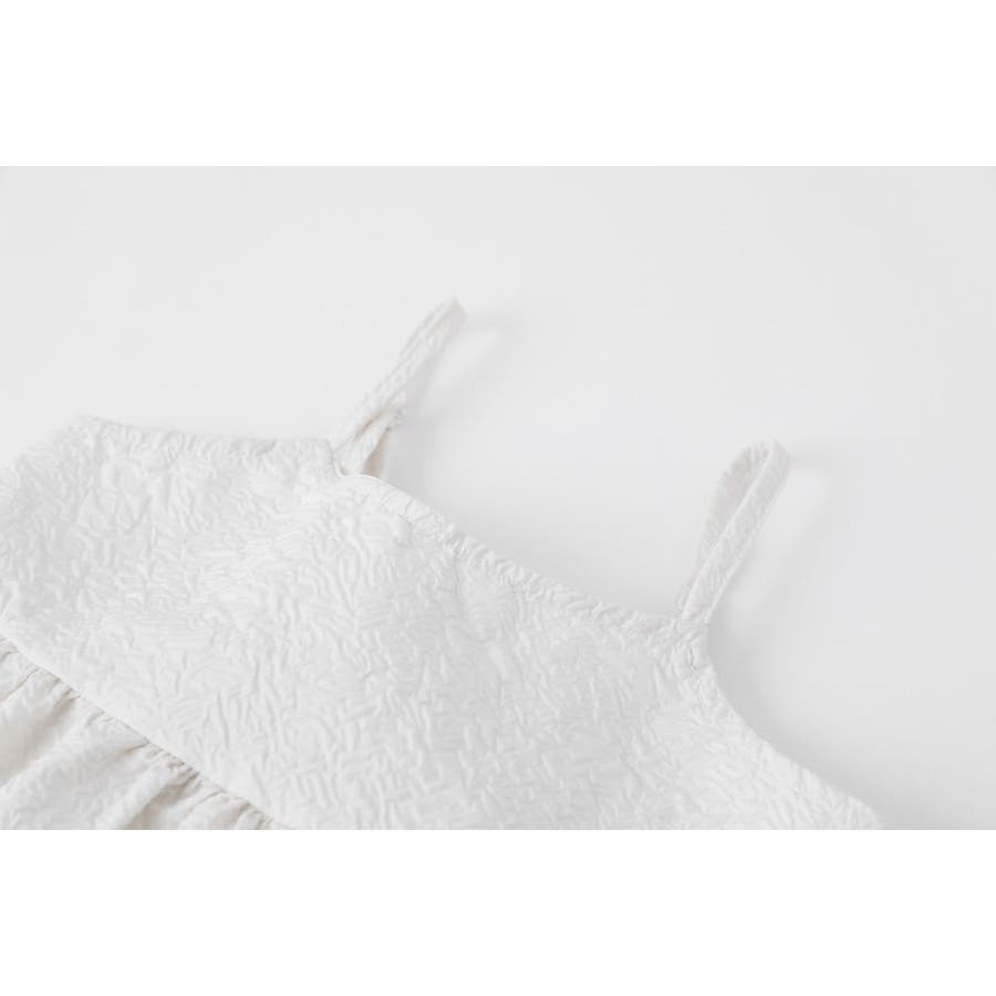 腰まわりが隠れる長めの丈感と、胸下の切替から広がるフレアシルエットでお腹周りやヒップを隠せてスタイルアップ効果もあります♪