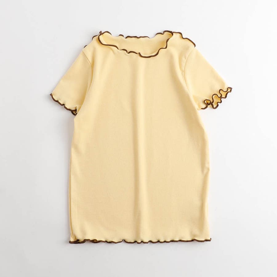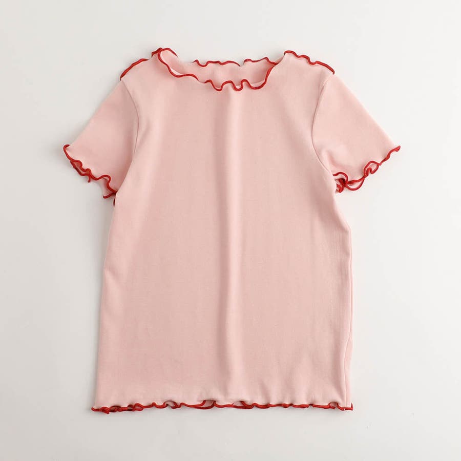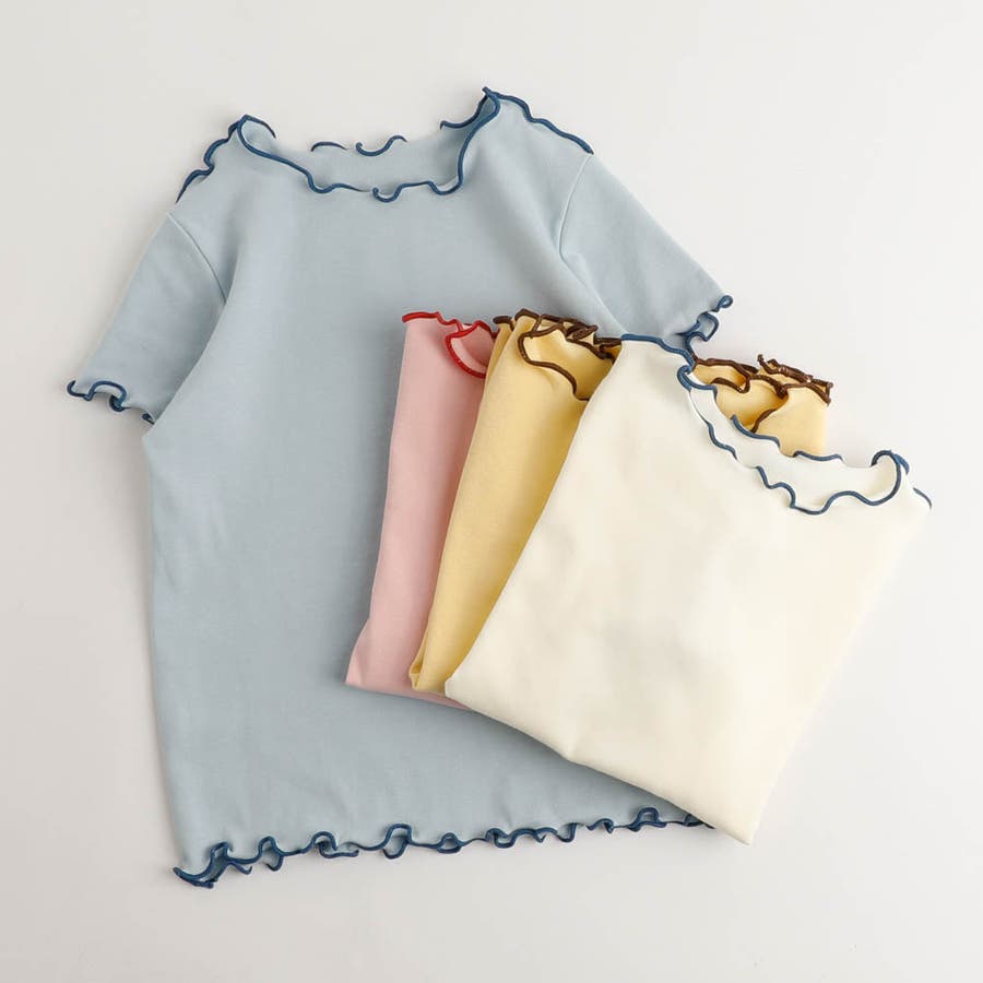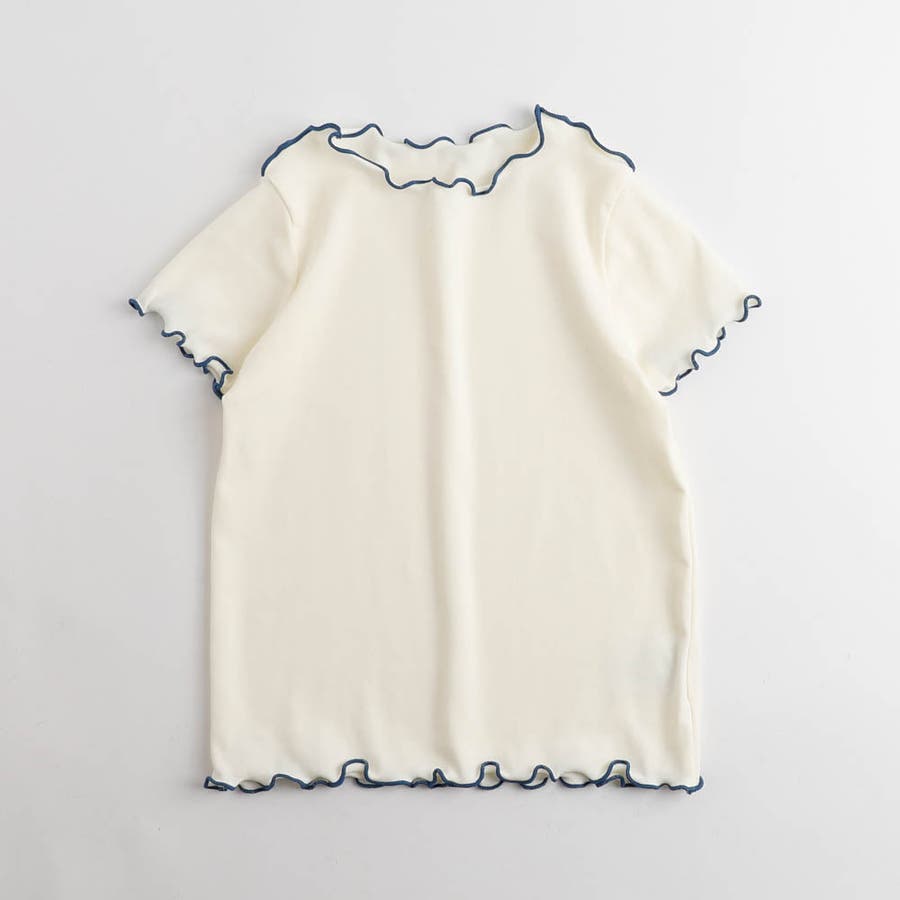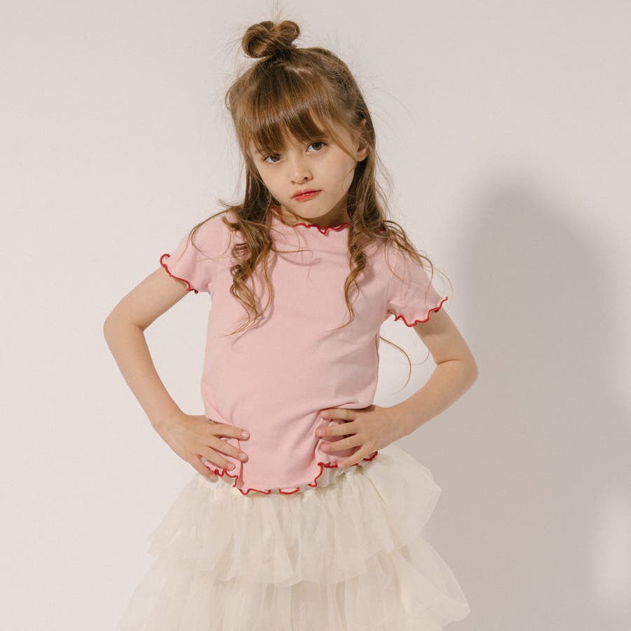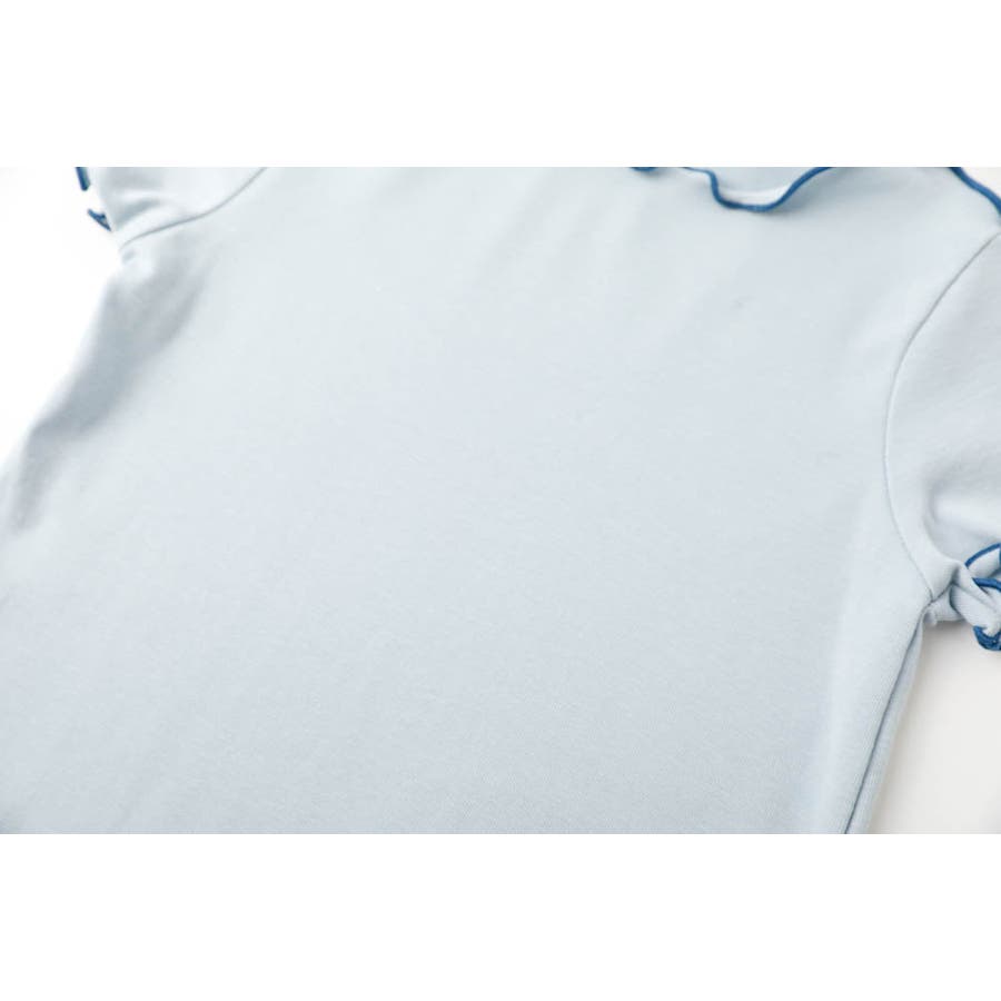 配色メローを襟元と袖口にあしらったガーリーなトップス。
