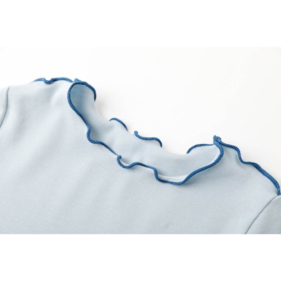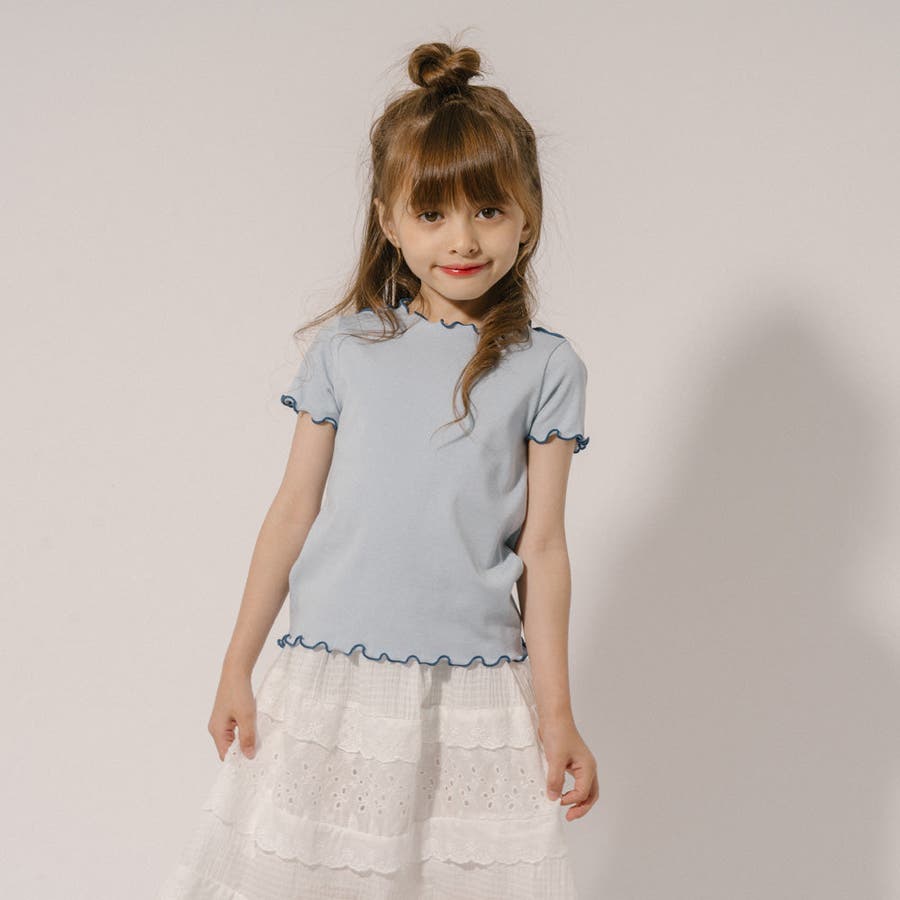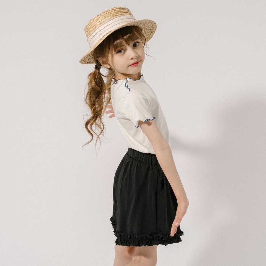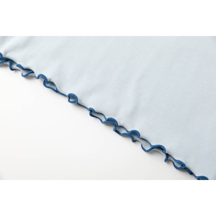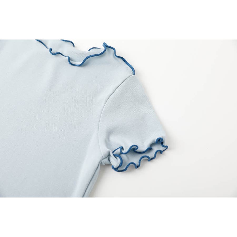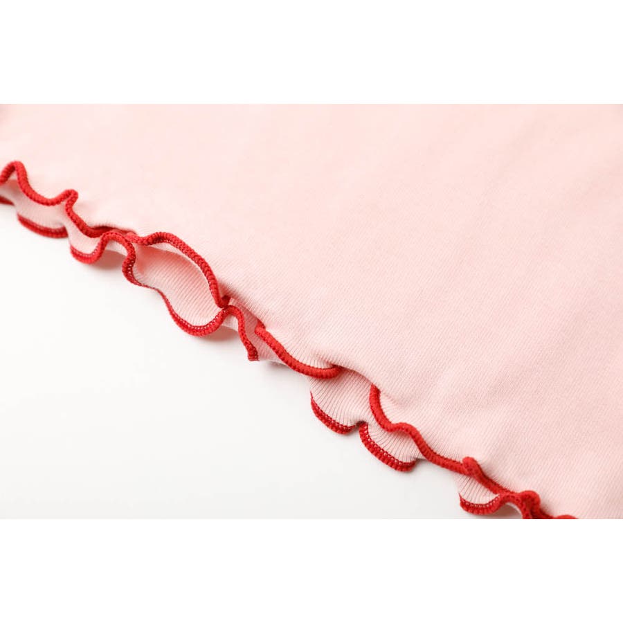 配色メローを襟元と袖口にあしらったガーリーなトップス。