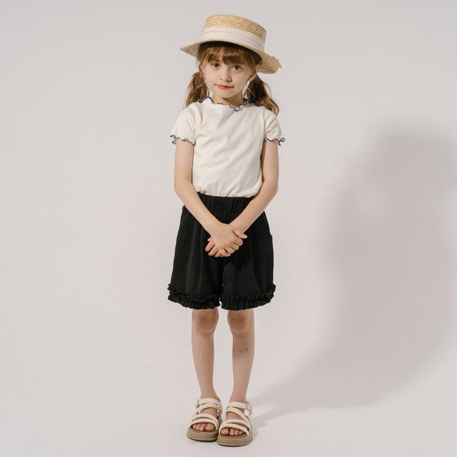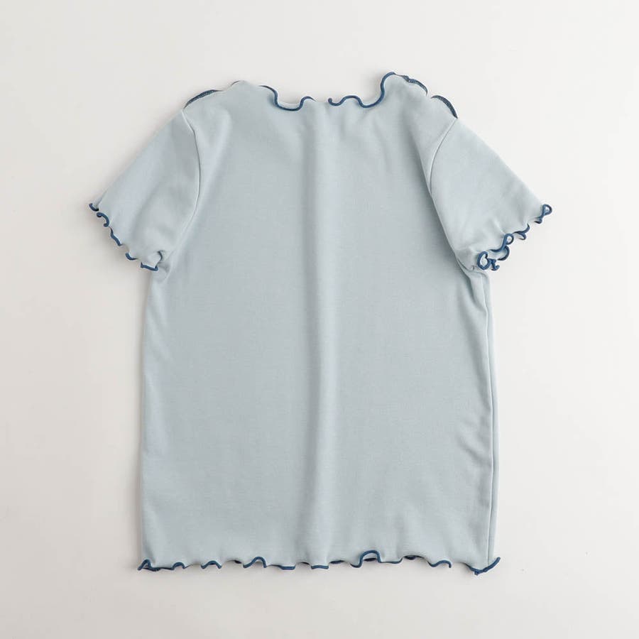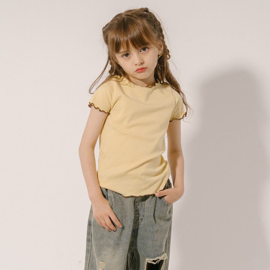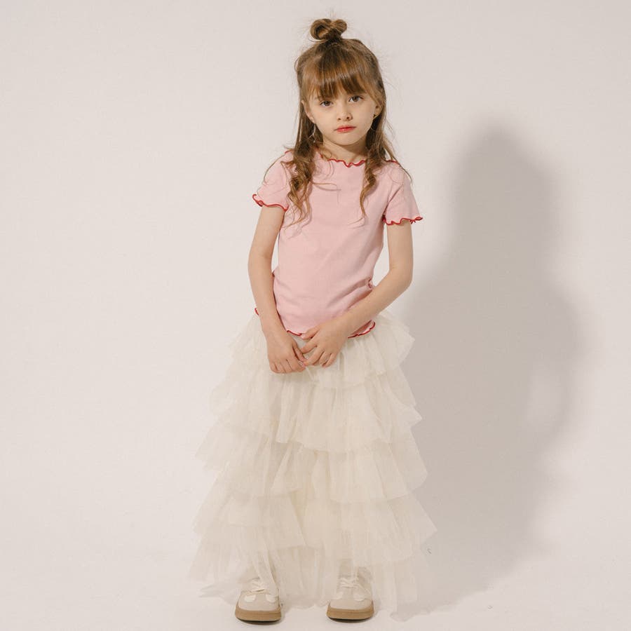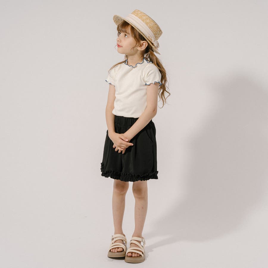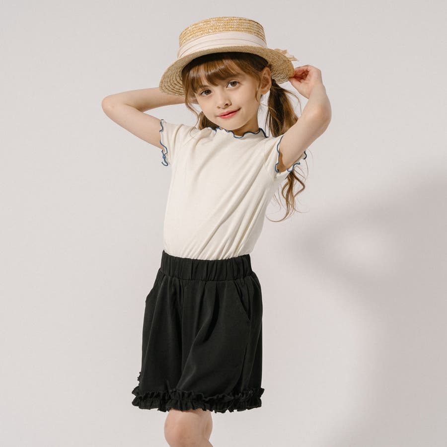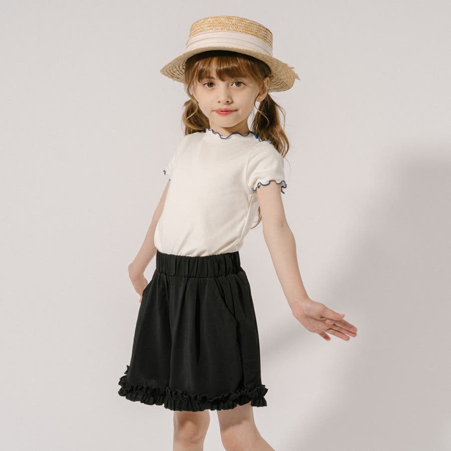 配色メローを襟元と袖口にあしらったガーリーなトップス。