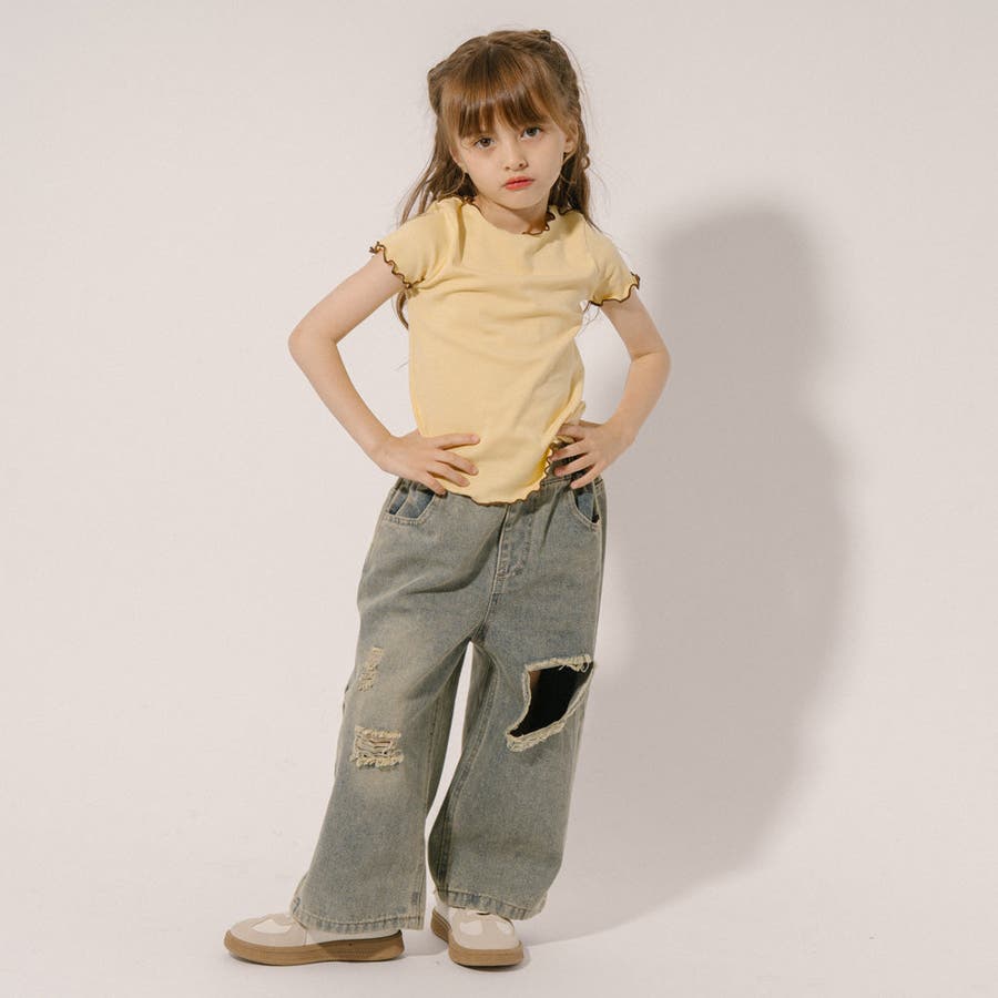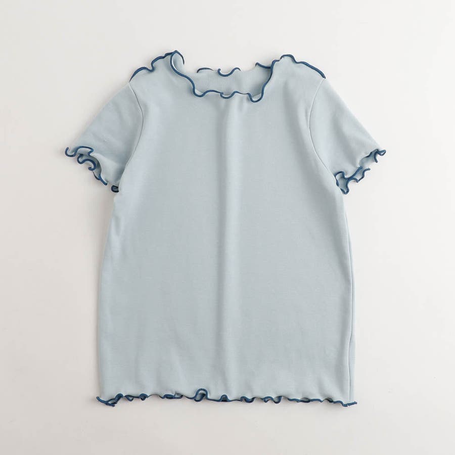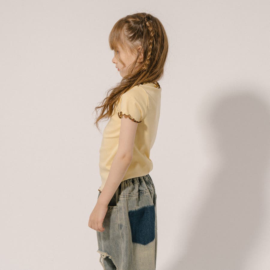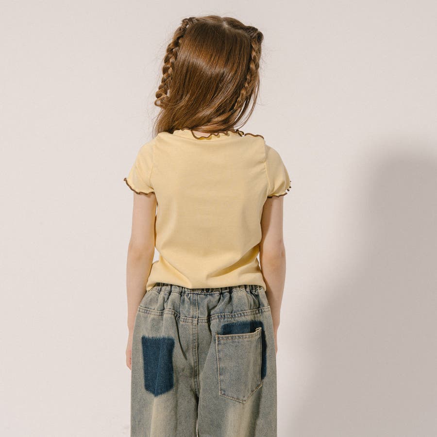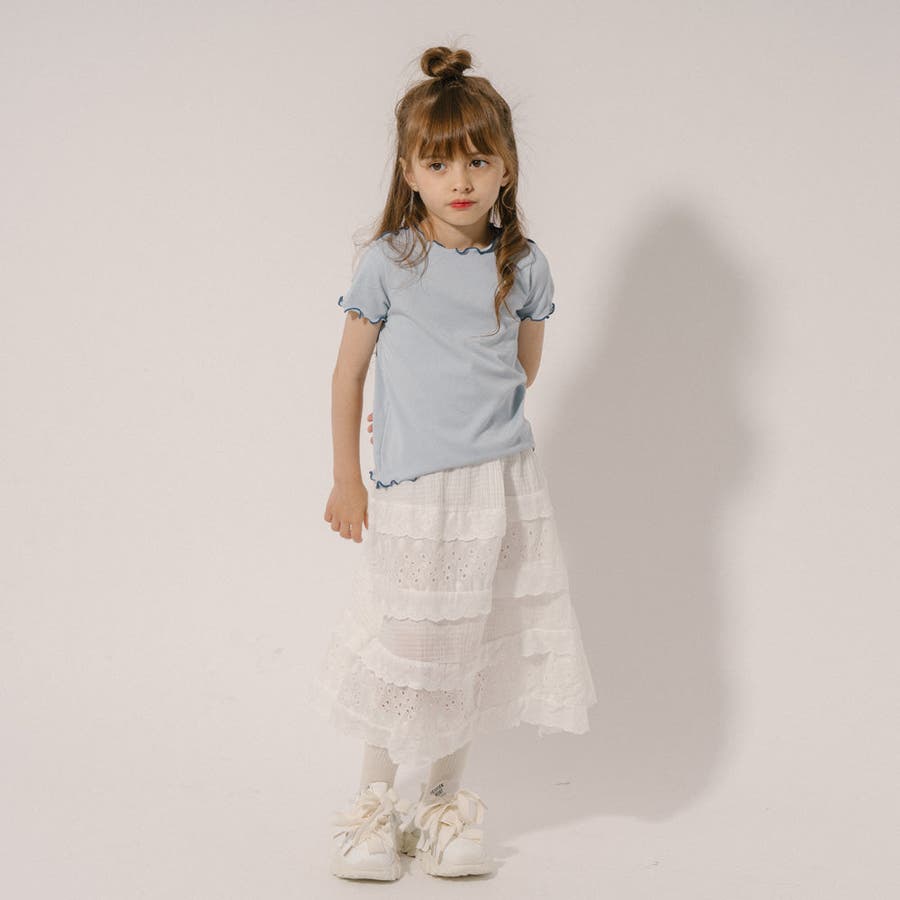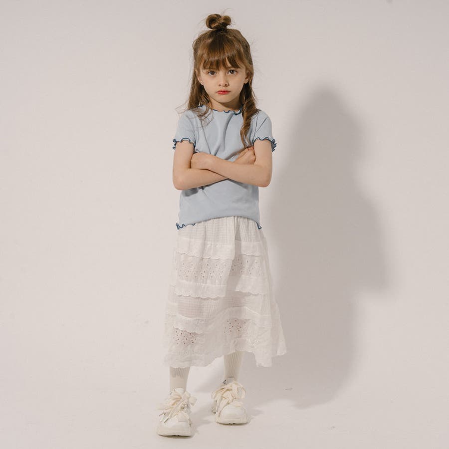 配色メローを襟元と袖口にあしらったガーリーなトップス。