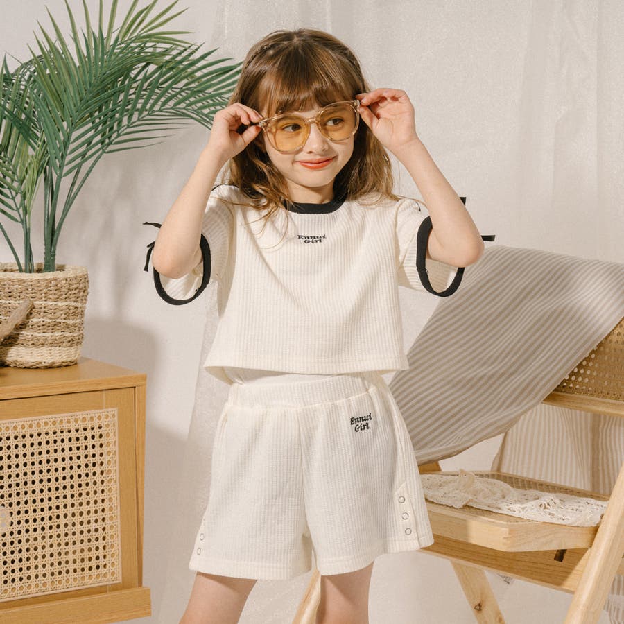 スポーティなサイドのラインがヘルシーな印象を与えてくれる一枚です。 ベーシックカラー展開で子供っぽくなりすぎず、大人っぽく着こなせるデザインがポイント◎ これからのイベント時期から初秋時期まで長く使えるように、ベーシックカラーを中心に展開。