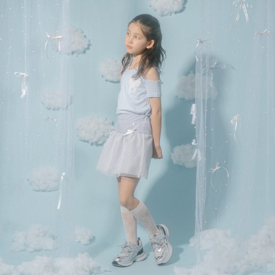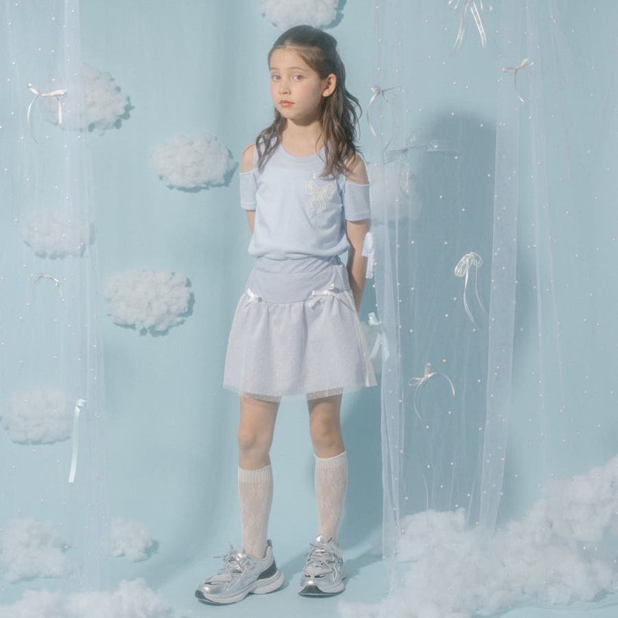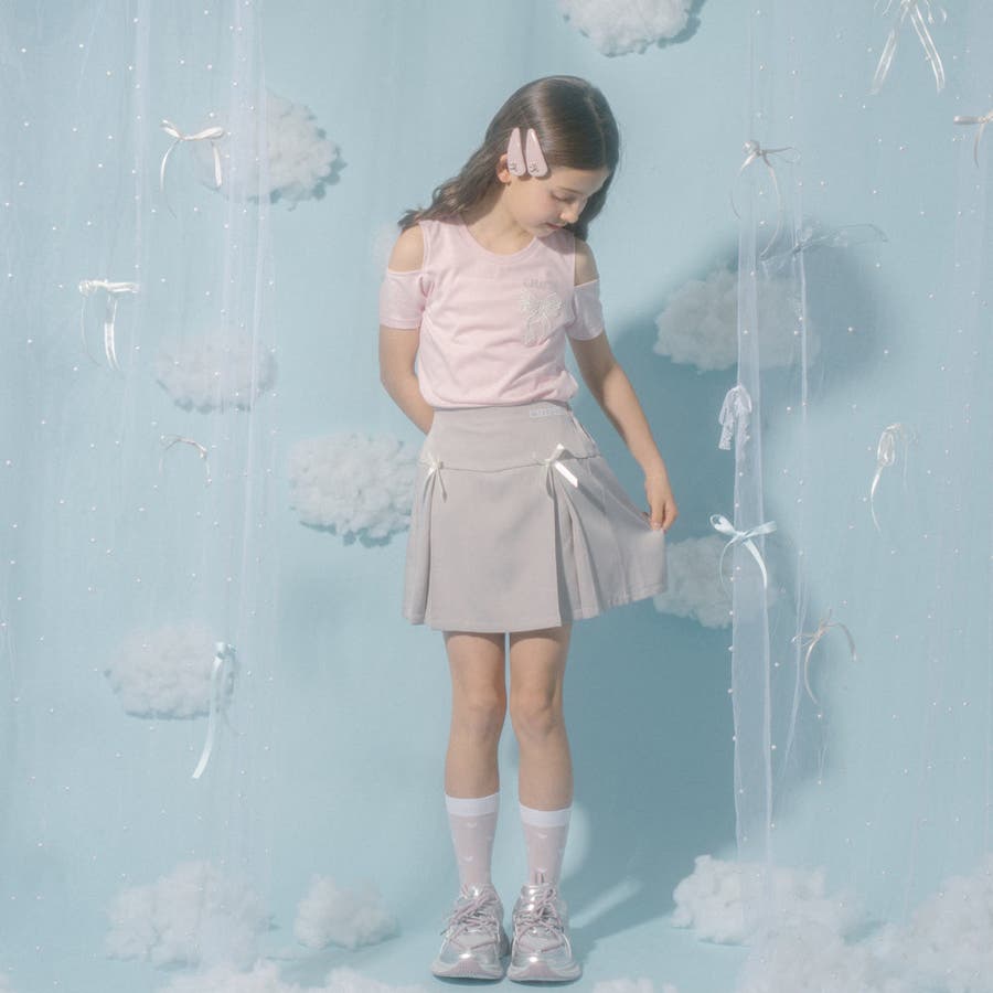 胸元のロゴとリボンがアクセントになり、シンプルなボトムスや足元はスニーカーで外すのがおすすめです。