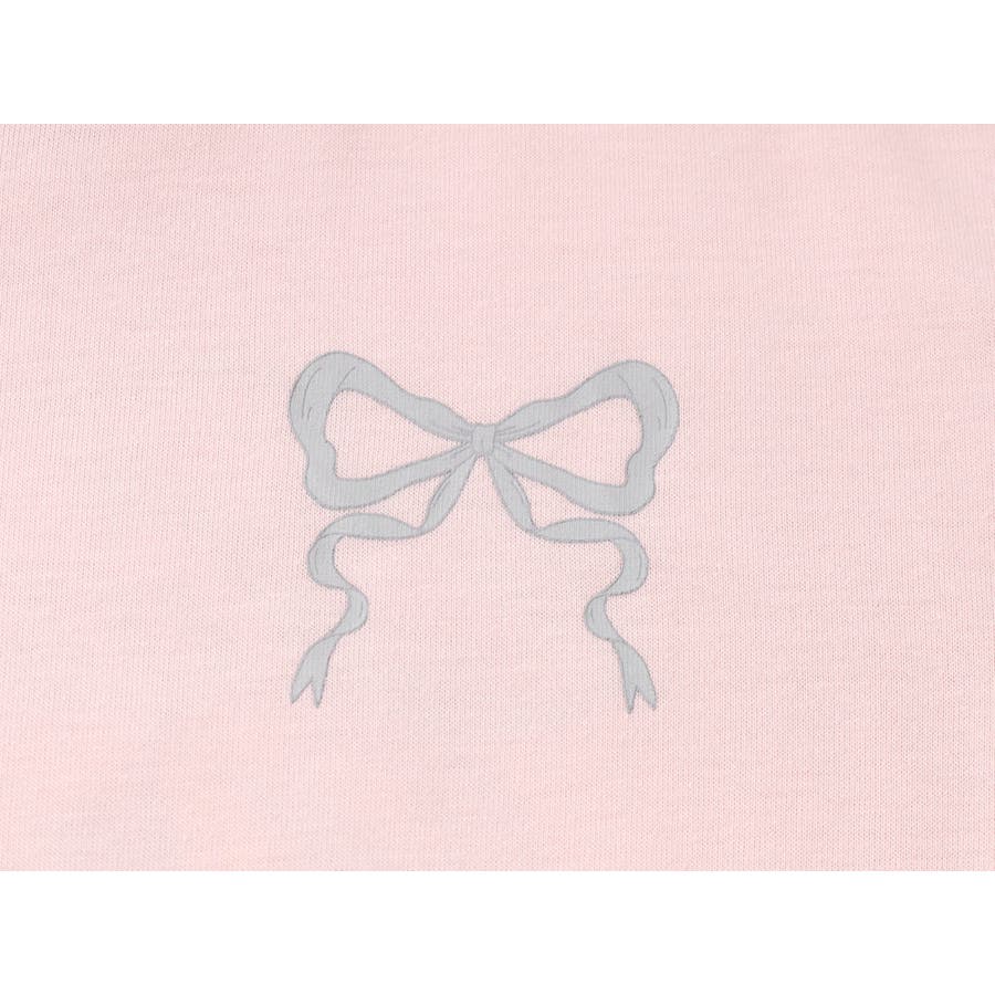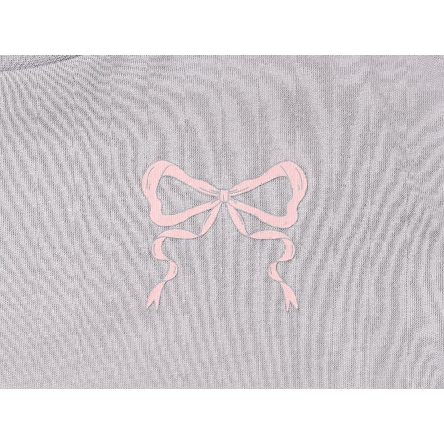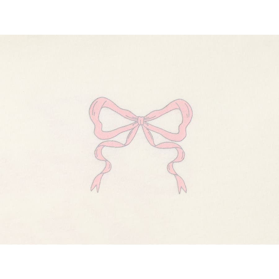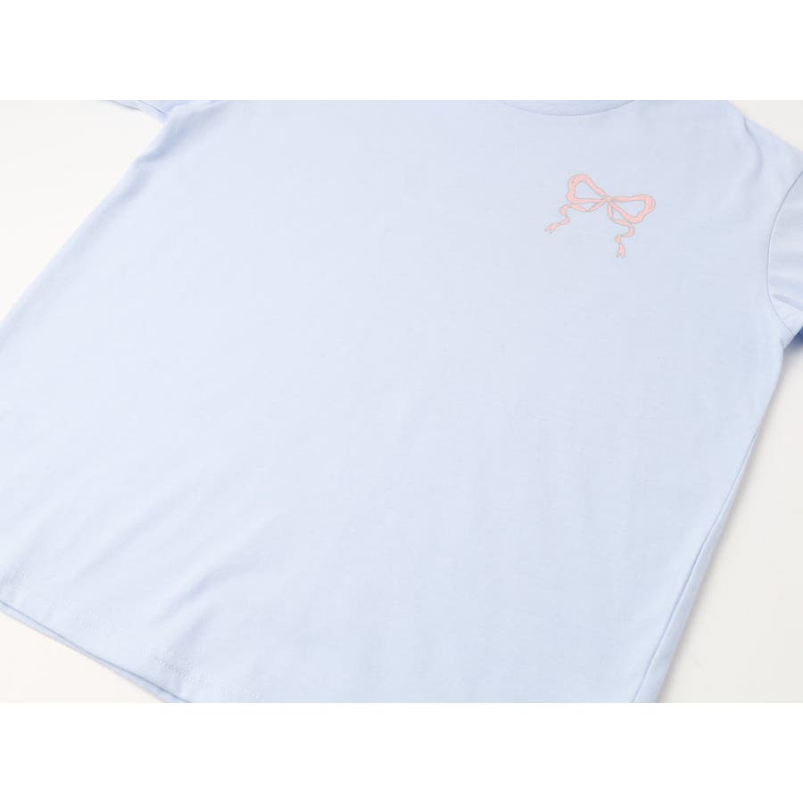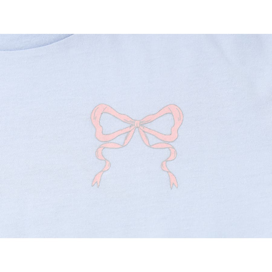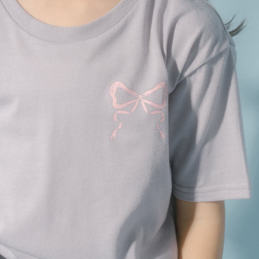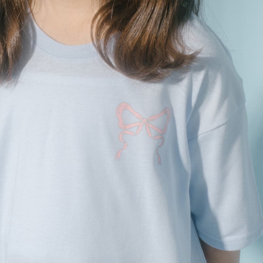フロントの胸元にはリボンを、バックには大きくレタリングロゴをプリントした