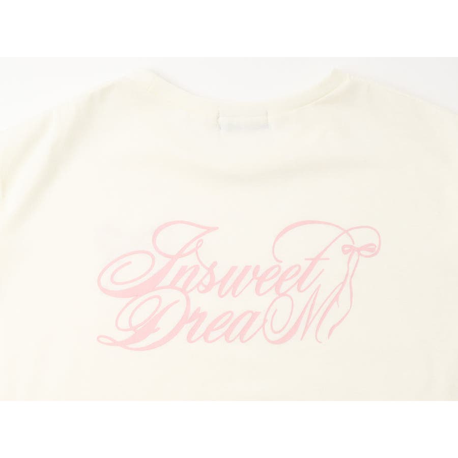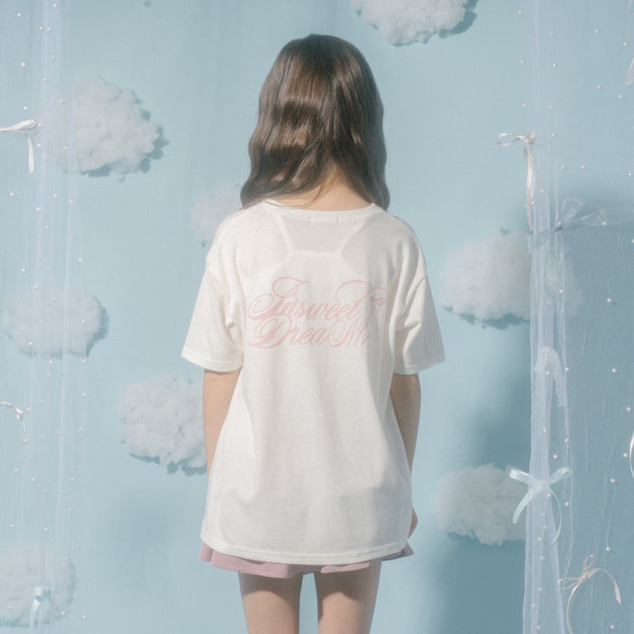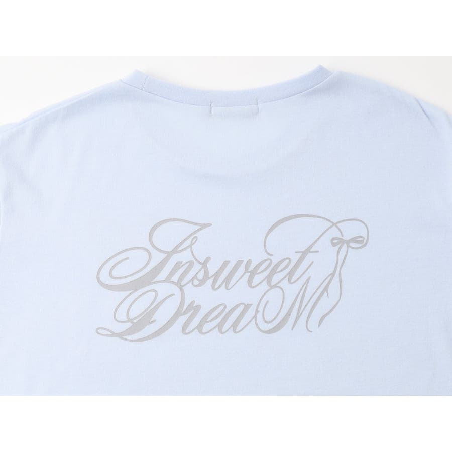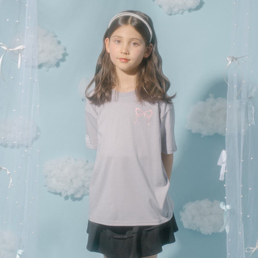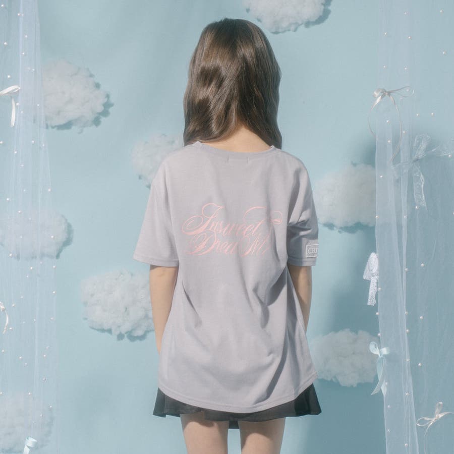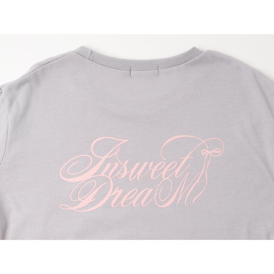 フロントの胸元にはリボンを、バックには大きくレタリングロゴをプリントした