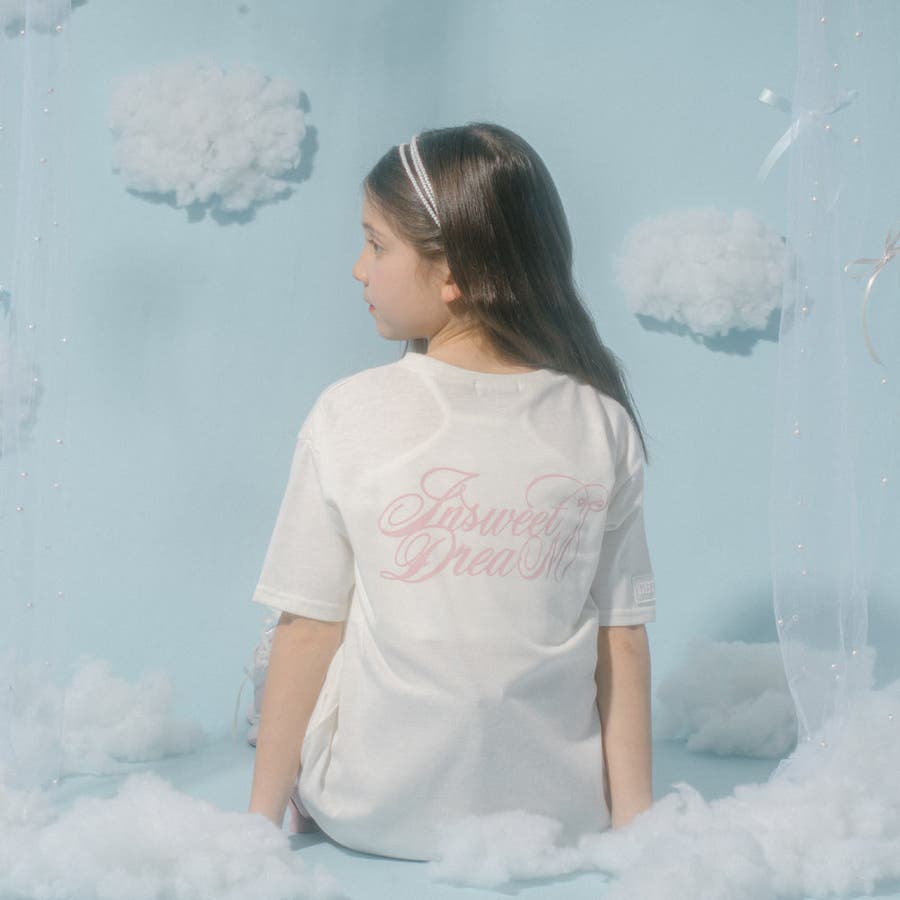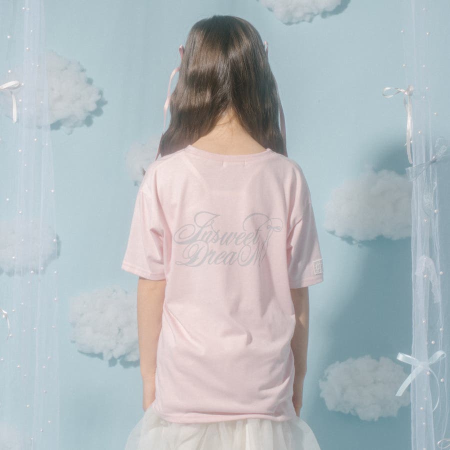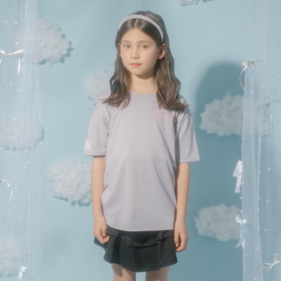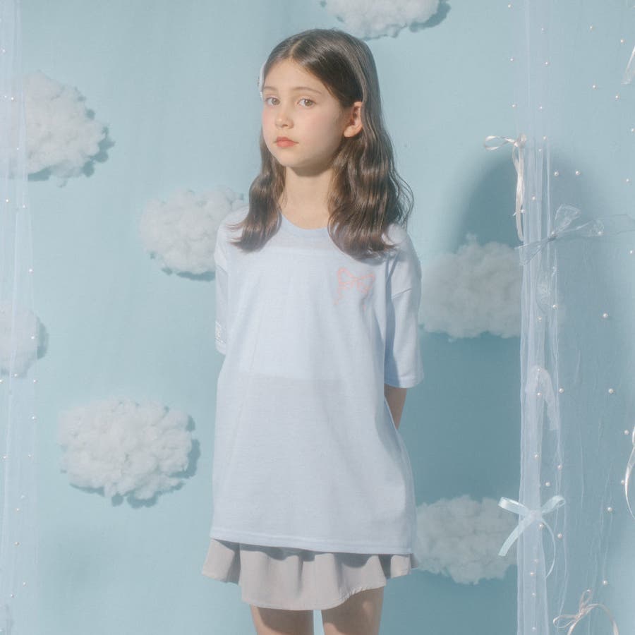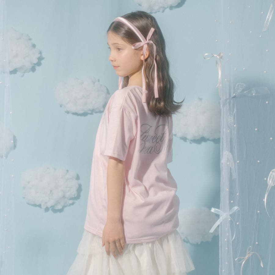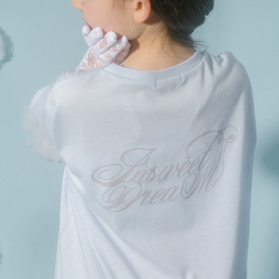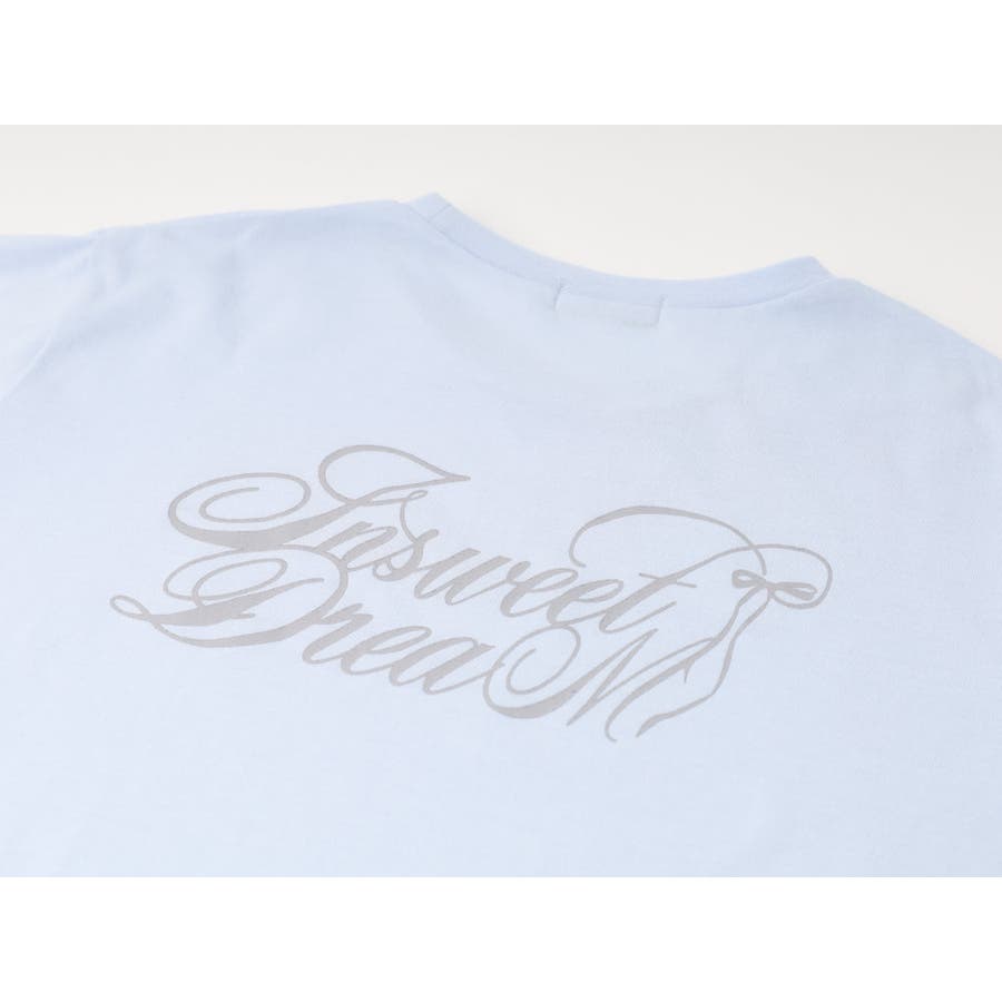 フロントの胸元にはリボンを、バックには大きくレタリングロゴをプリントした