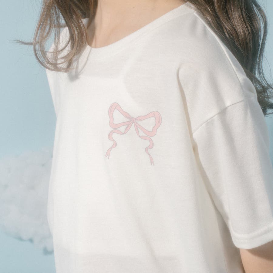 ゆったりしたシルエットにキュートなリボンプリントの外しの感じが◎