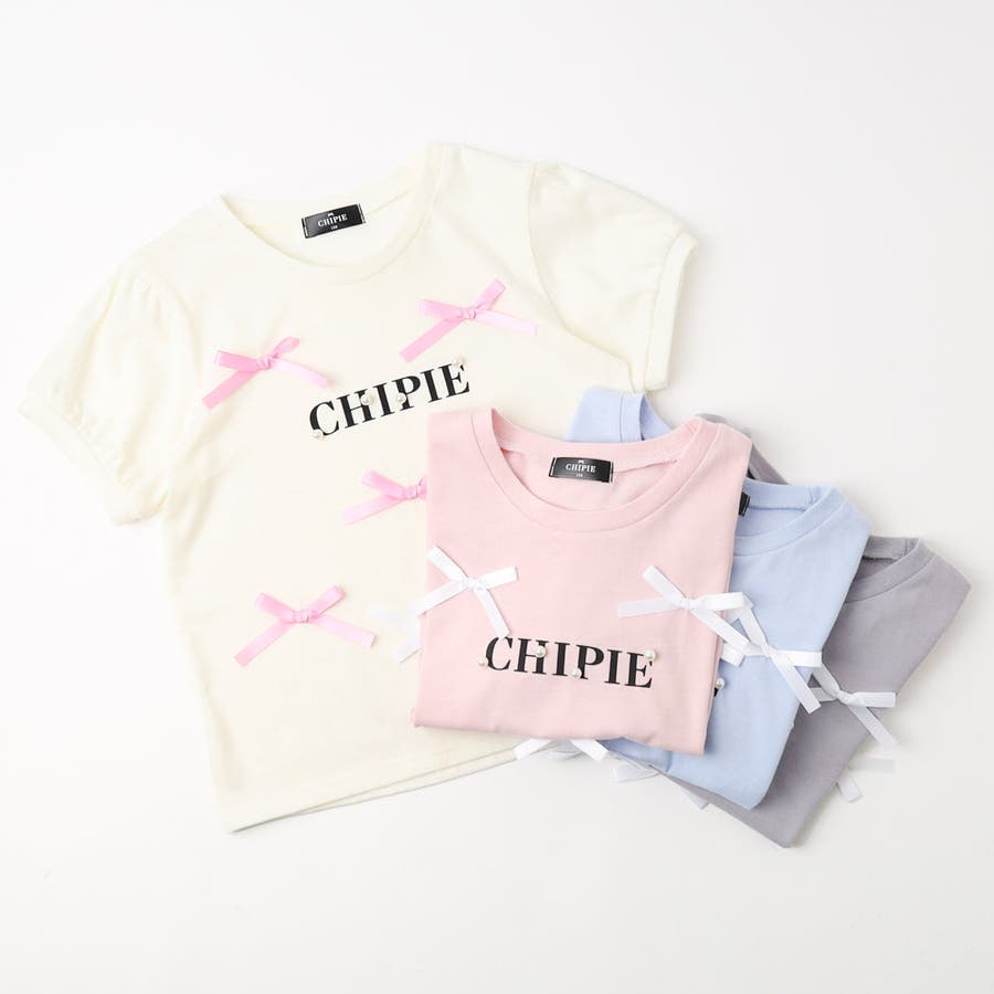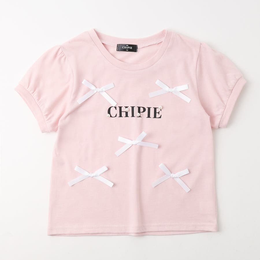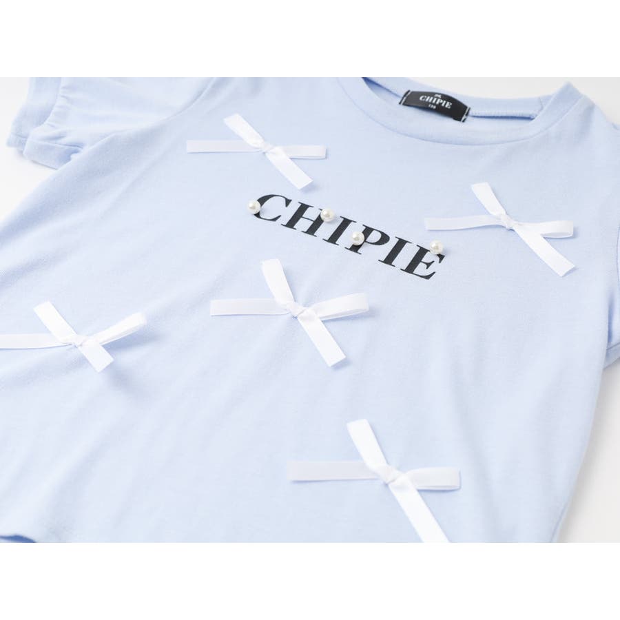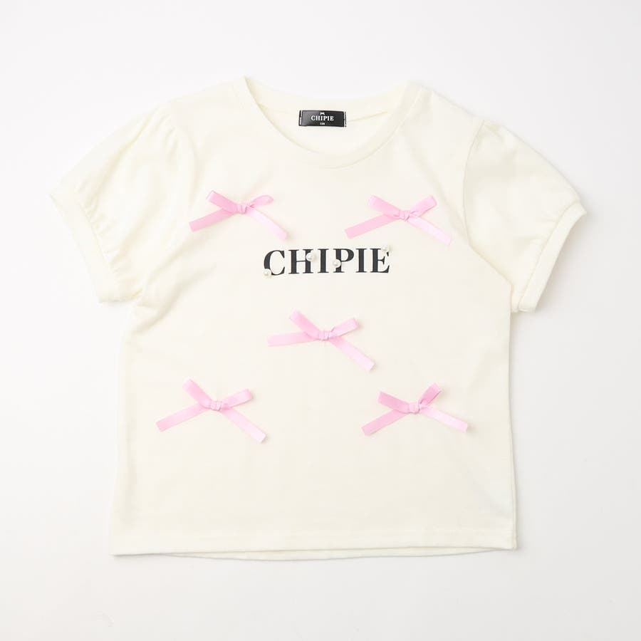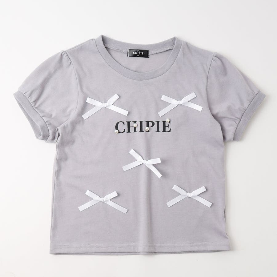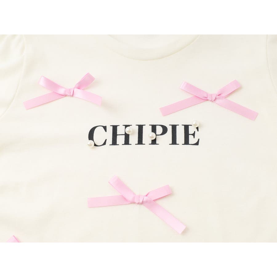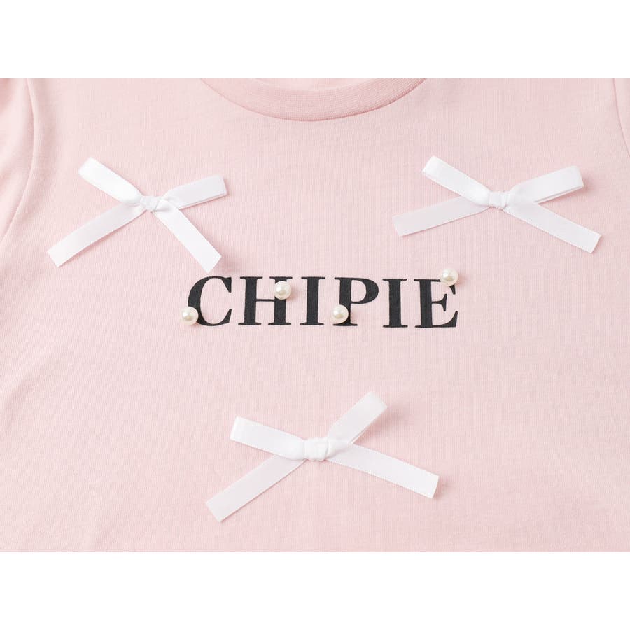 フロントにサテンリボンとパール付きロゴをあしらったCHIPIEの世界観がふんだんに詰まったTシャツ。
