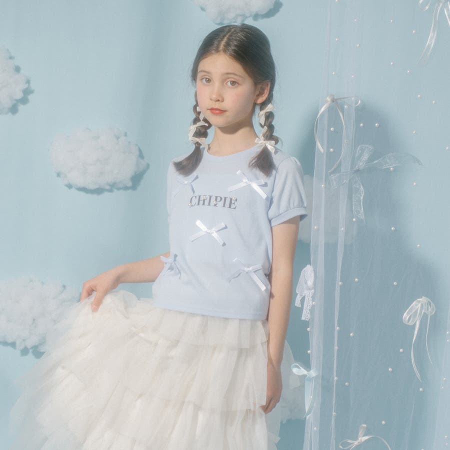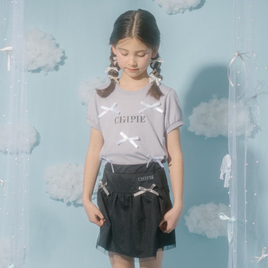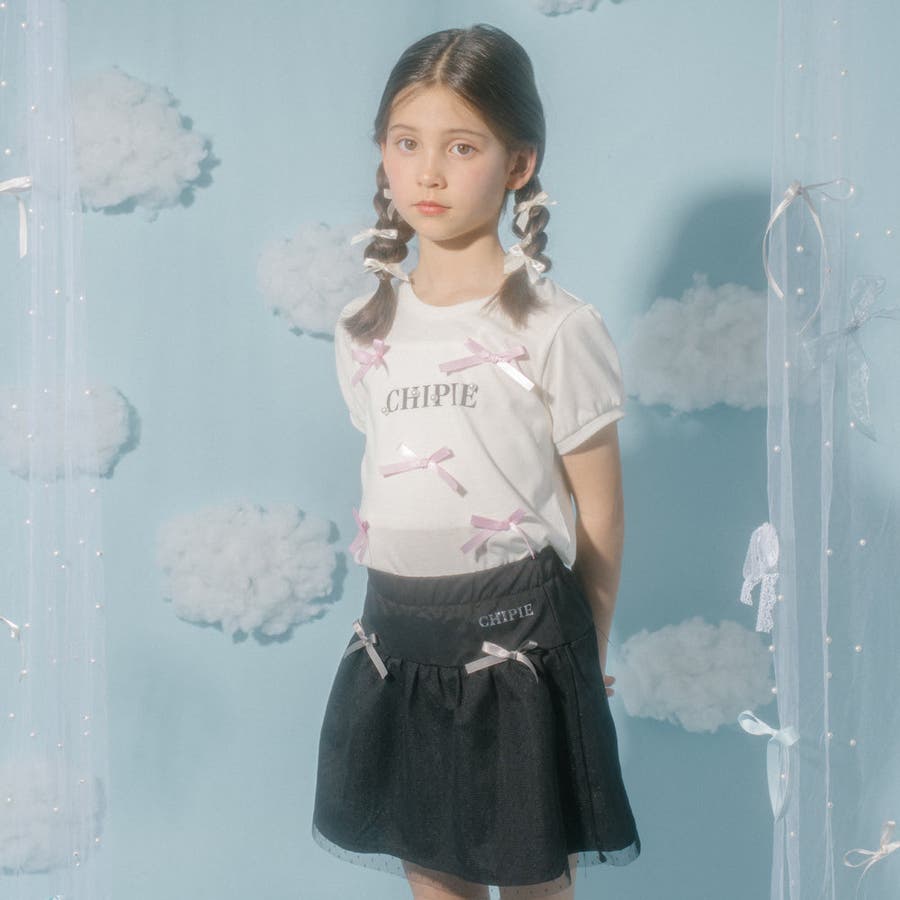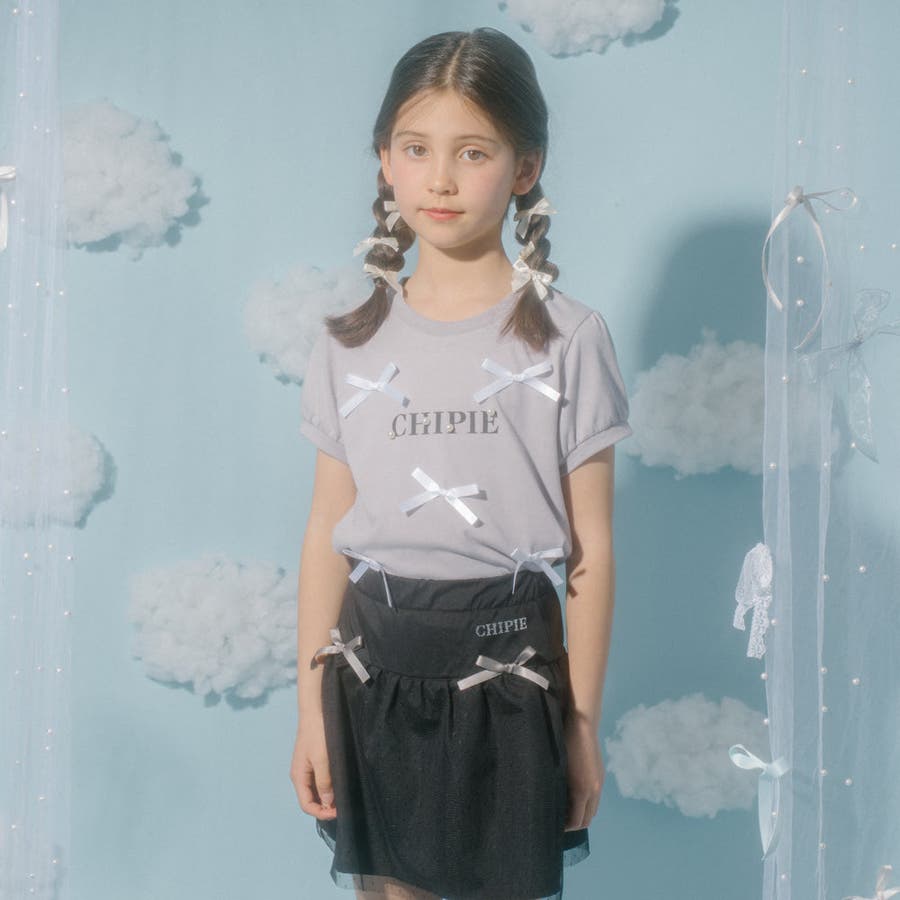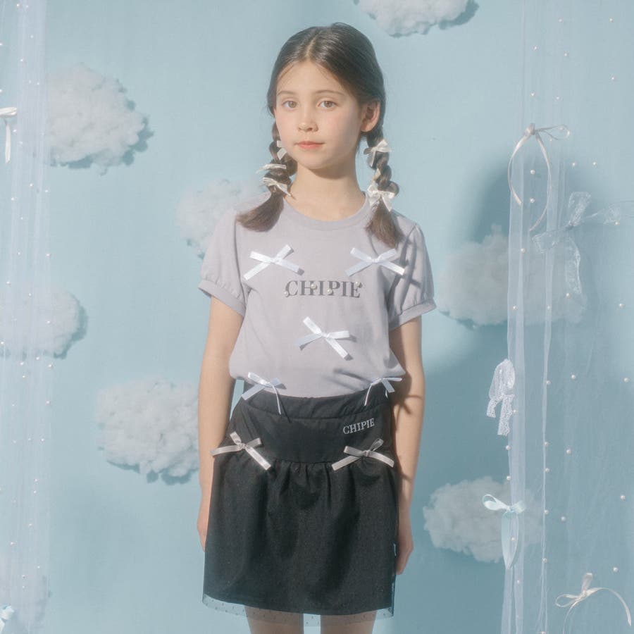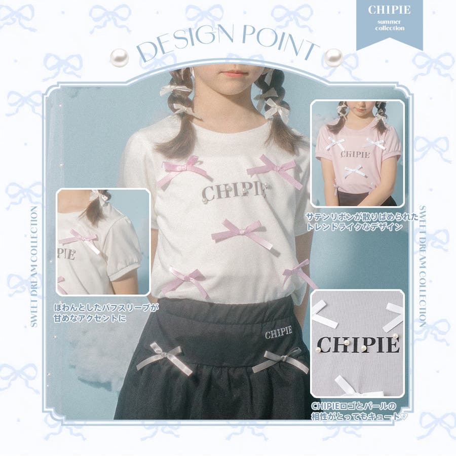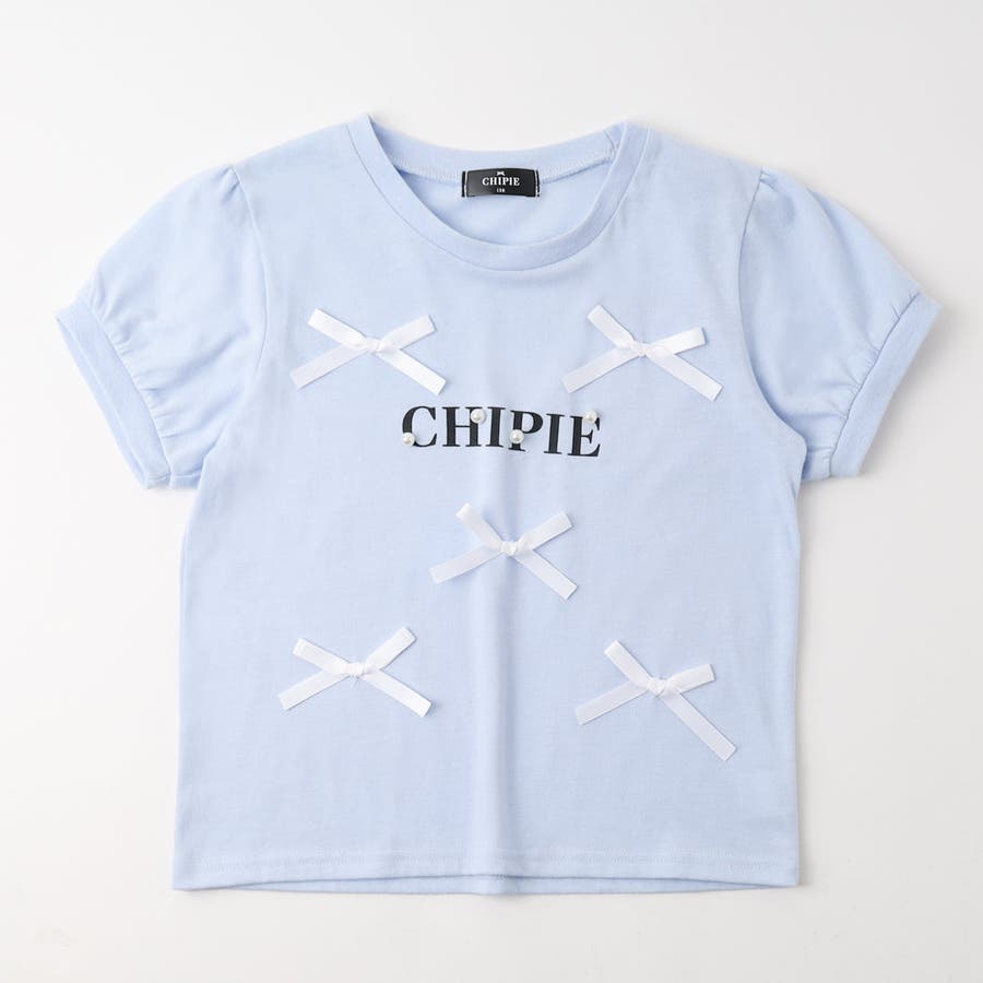 フロントにサテンリボンとパール付きロゴをあしらったCHIPIEの世界観がふんだんに詰まったTシャツ。