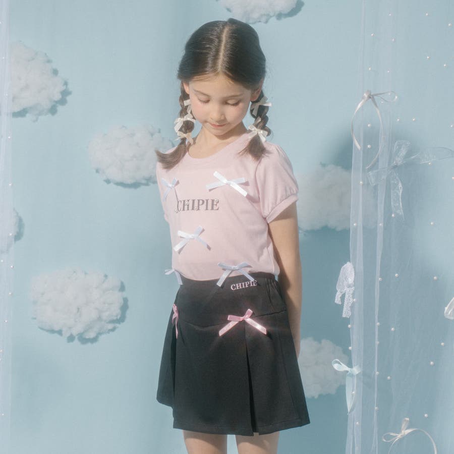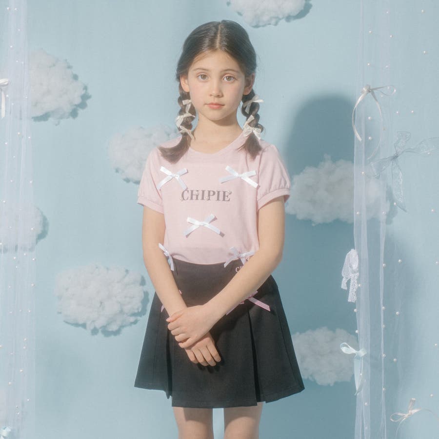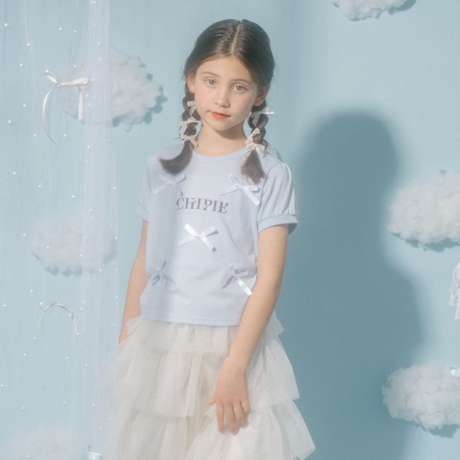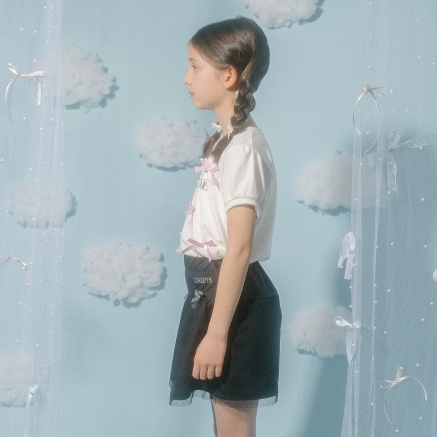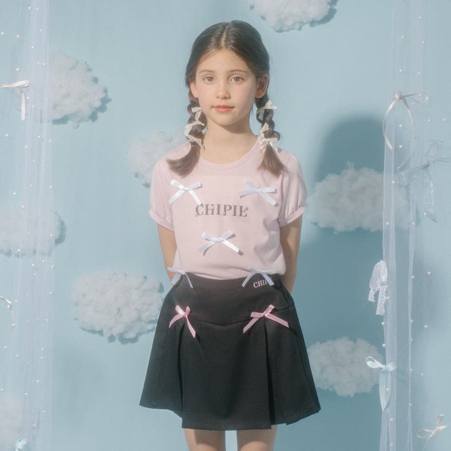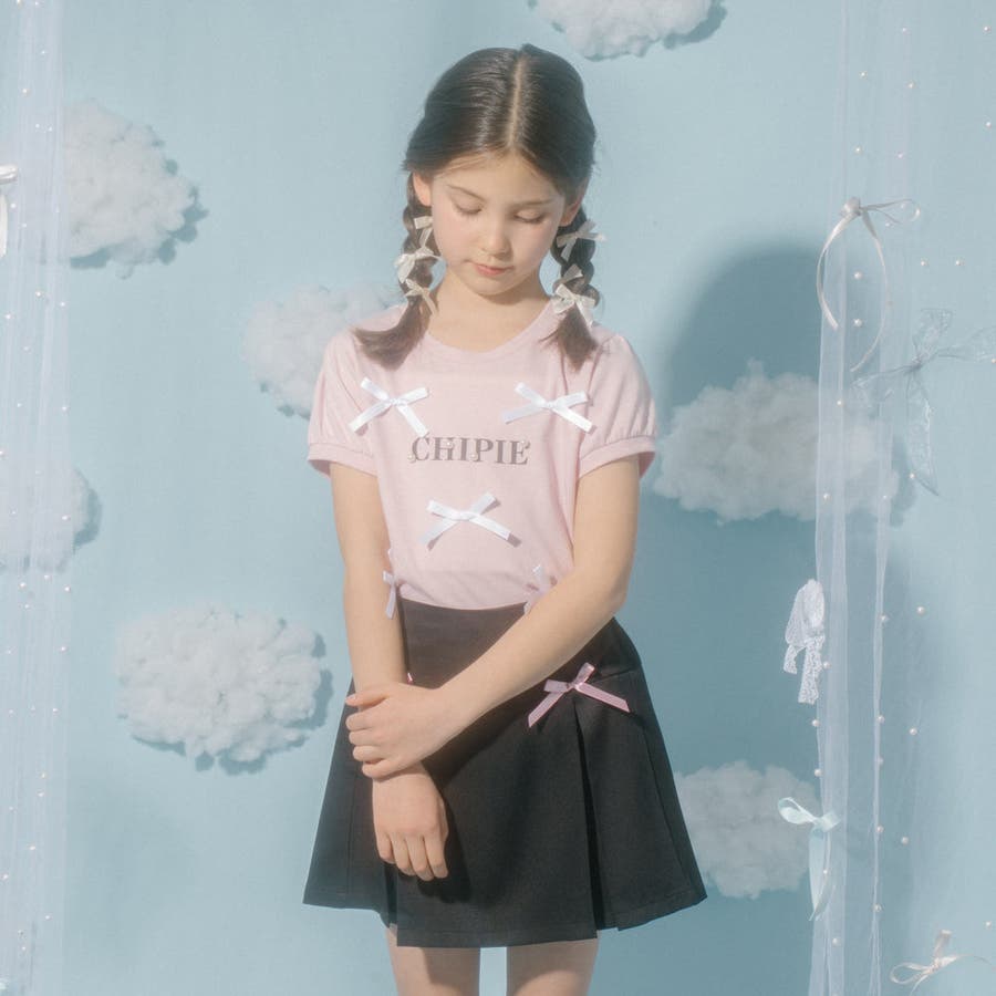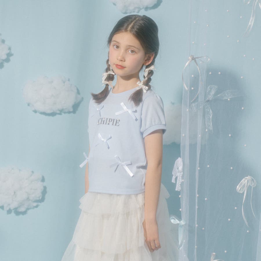 フロントにサテンリボンとパール付きロゴをあしらったCHIPIEの世界観がふんだんに詰まったTシャツ。