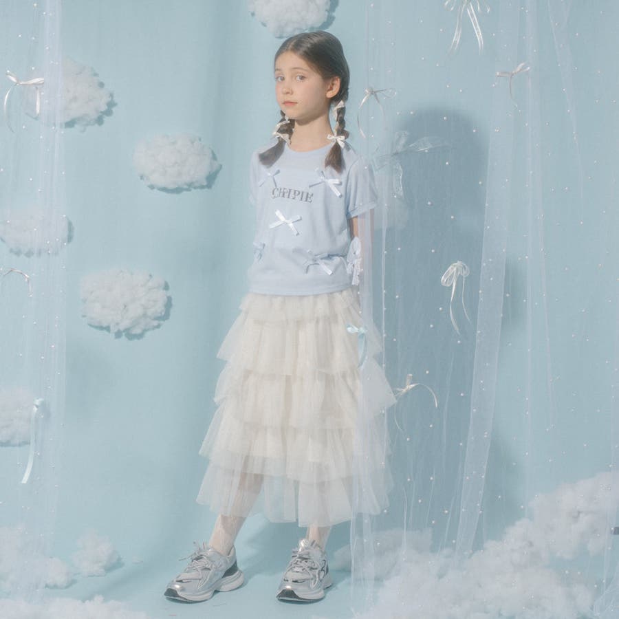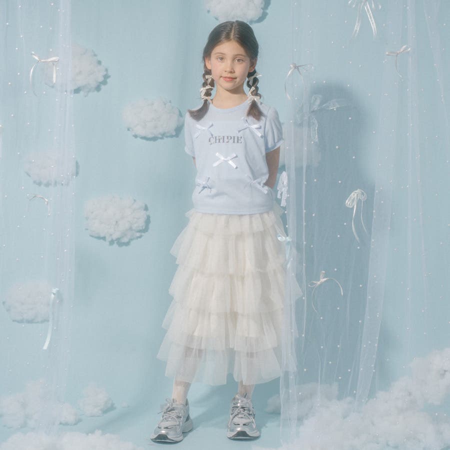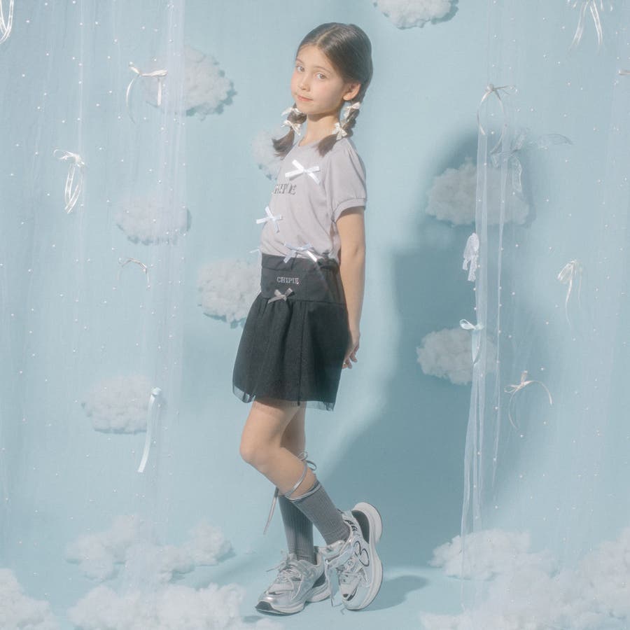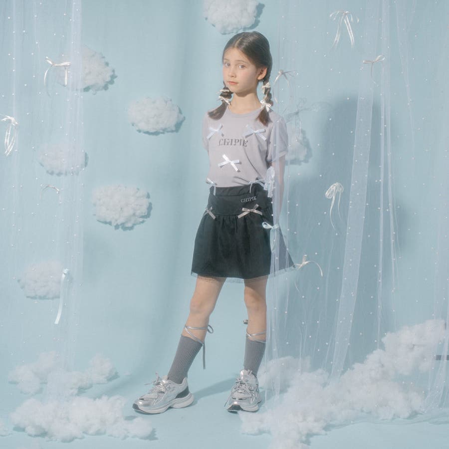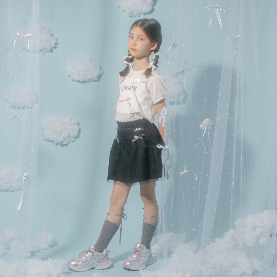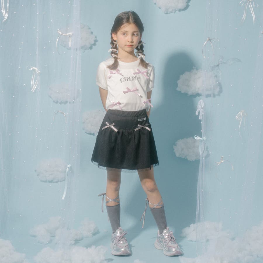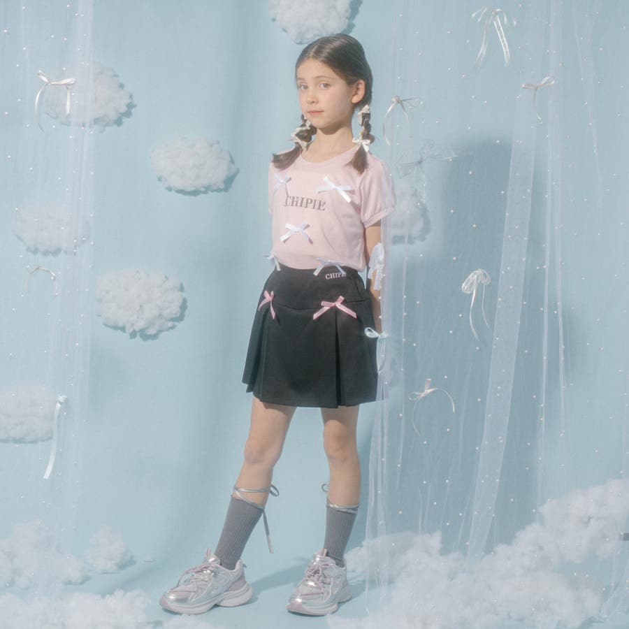 フロントにサテンリボンとパール付きロゴをあしらったCHIPIEの世界観がふんだんに詰まったTシャツ。