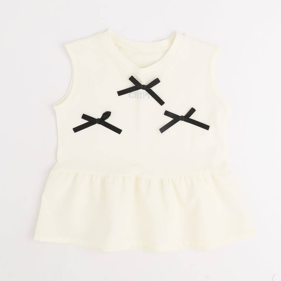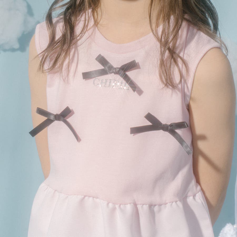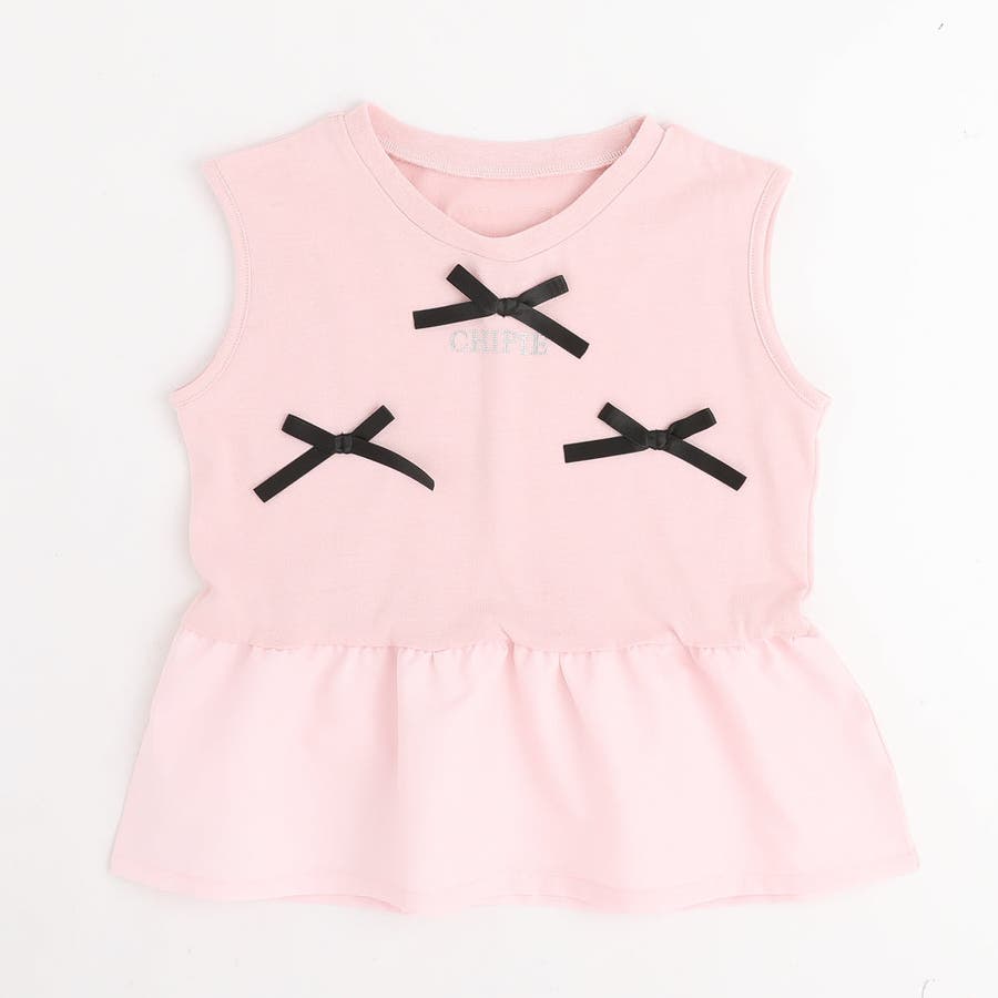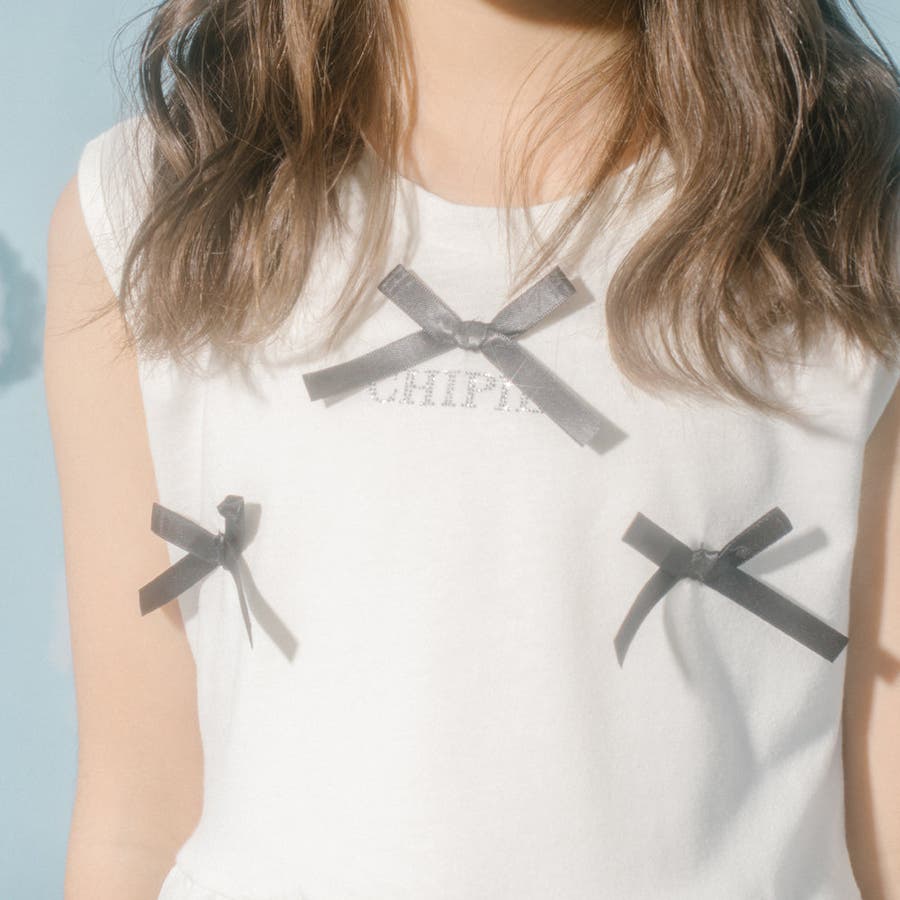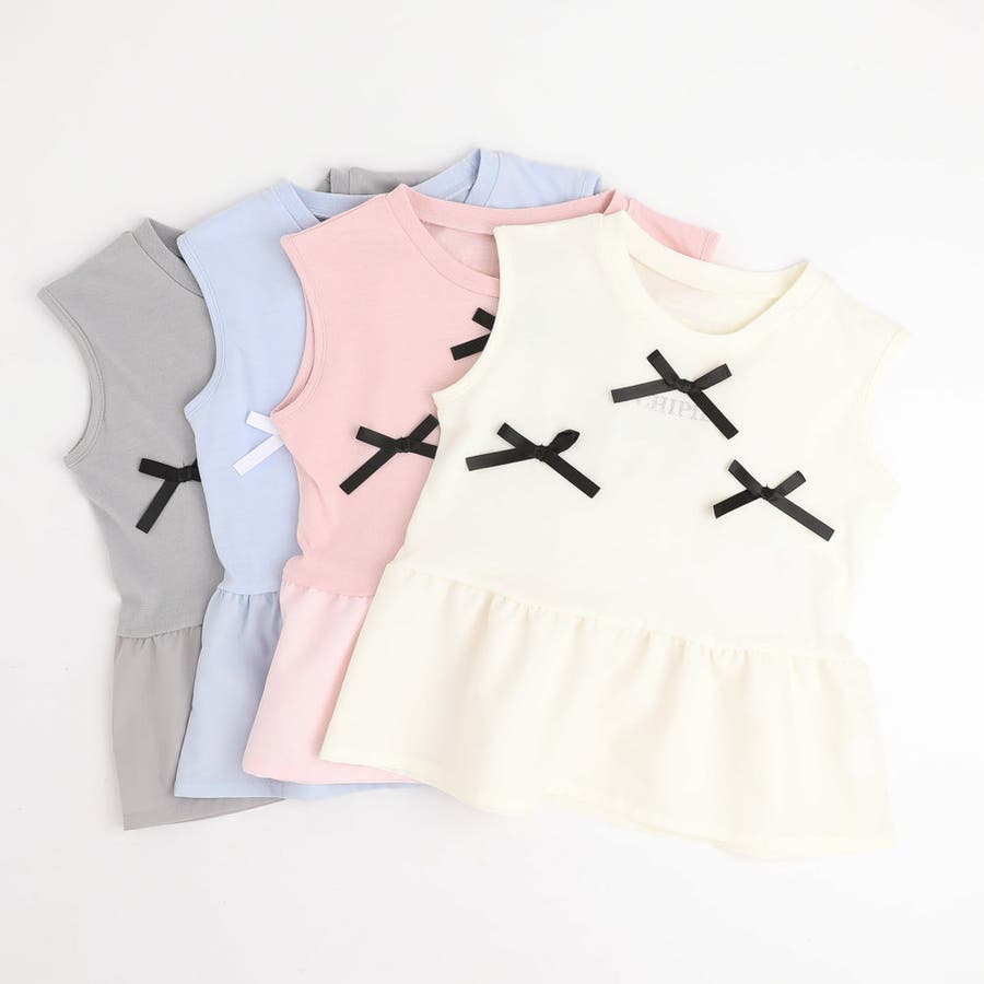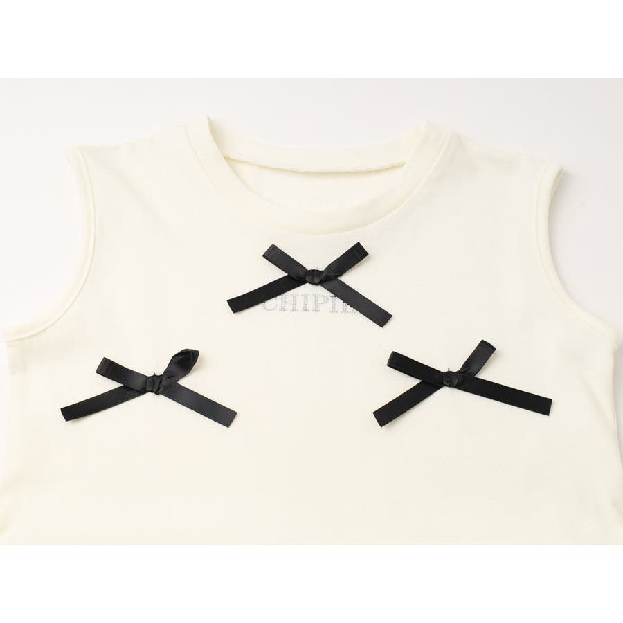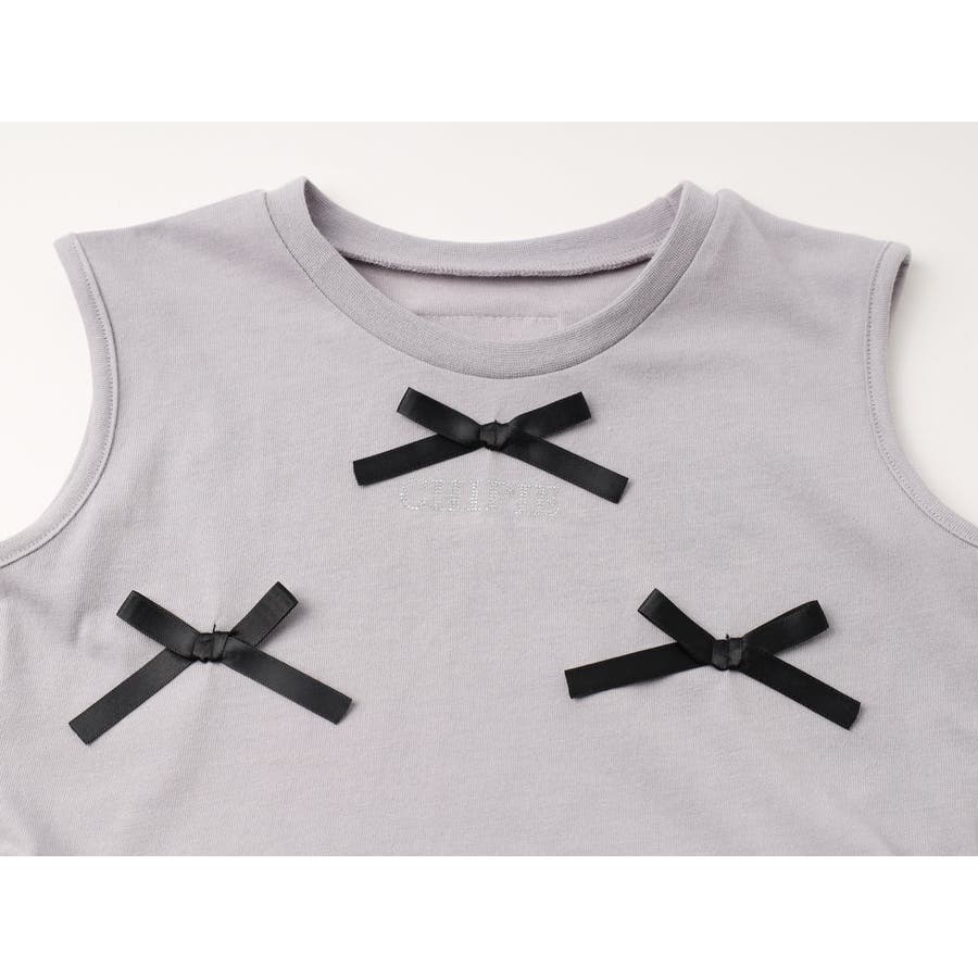 サテンリボンをあしらった注目トレンドのバレエコアルックなデザインが魅力的なノースリーブトップスは