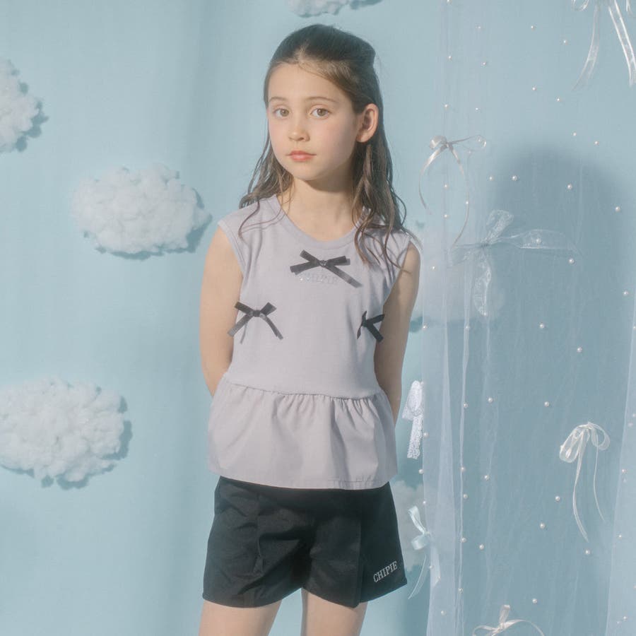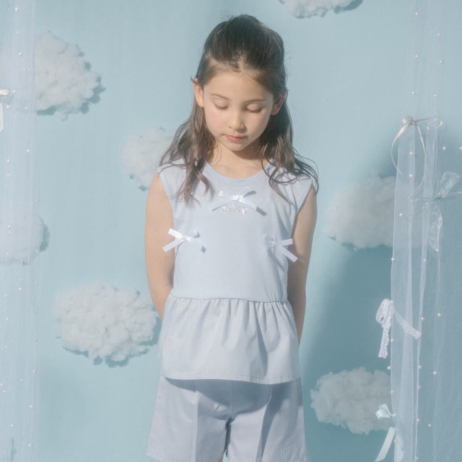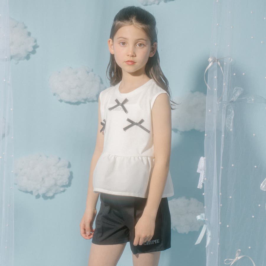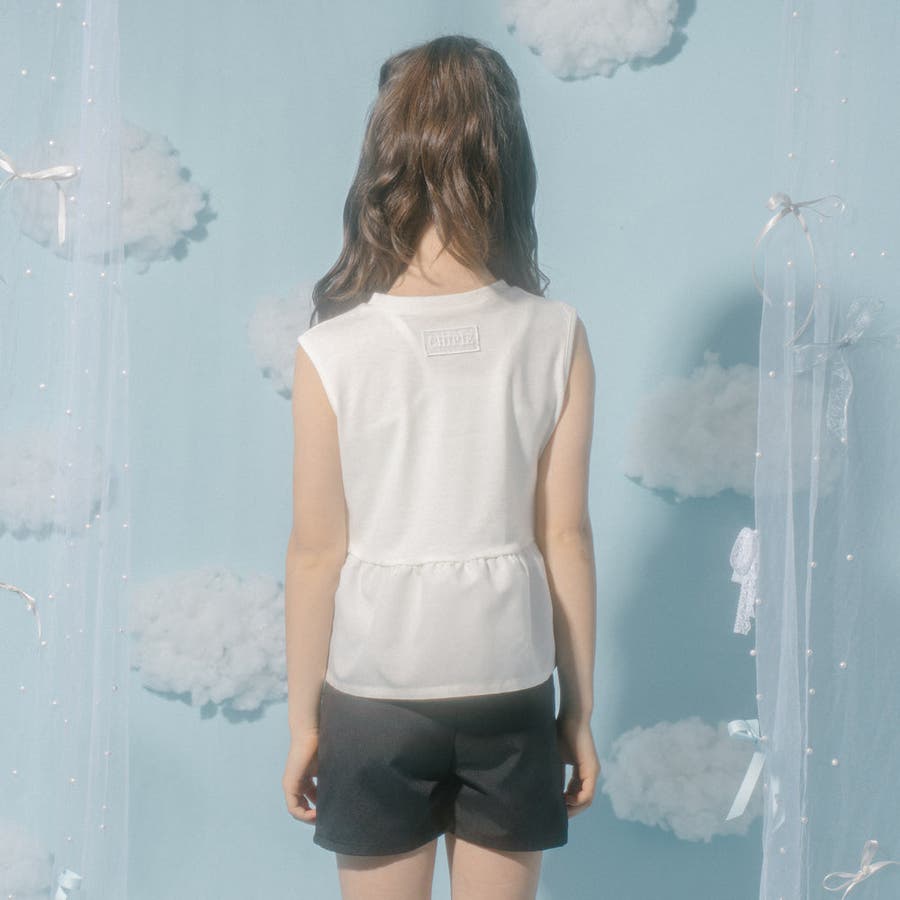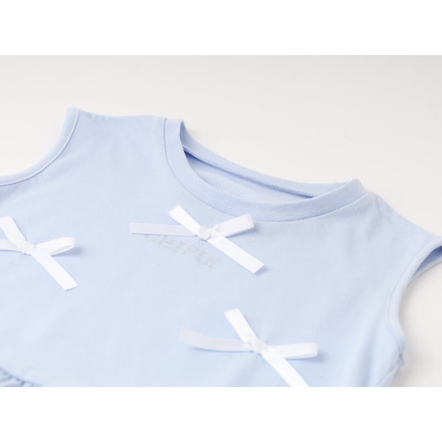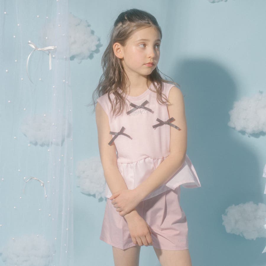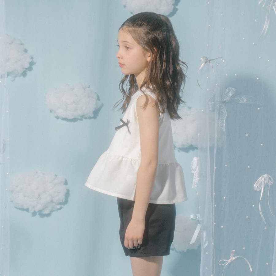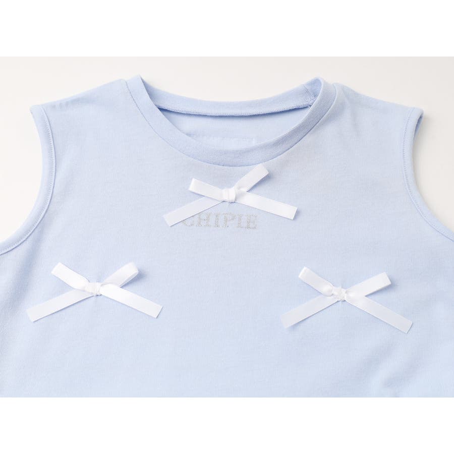 サテンリボンをあしらった注目トレンドのバレエコアルックなデザインが魅力的なノースリーブトップスは