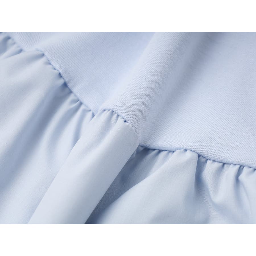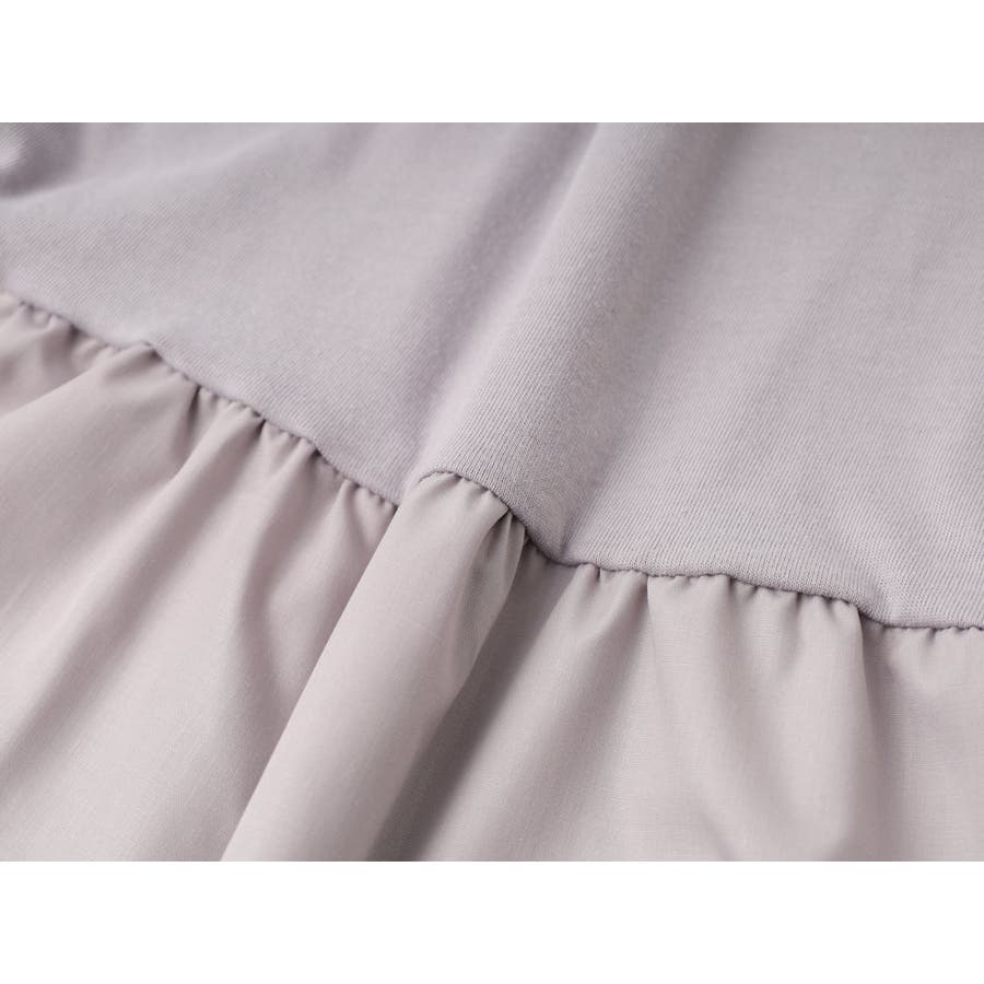 裾が布帛生地の異素材ペプラム切り替えで動くたびにふわっと揺れてキュートなデザインに♪