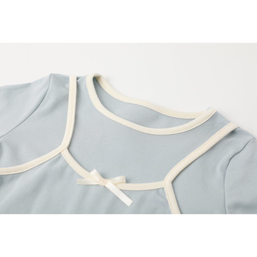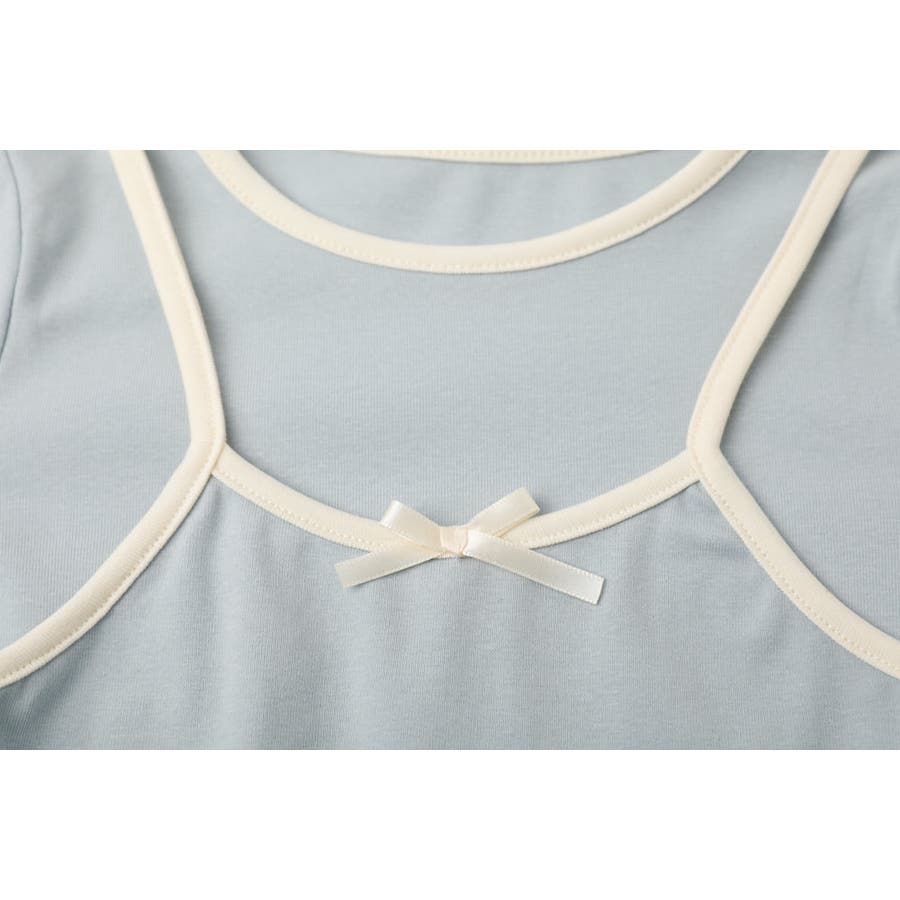 パイピングリボンキャミドッキングトップス