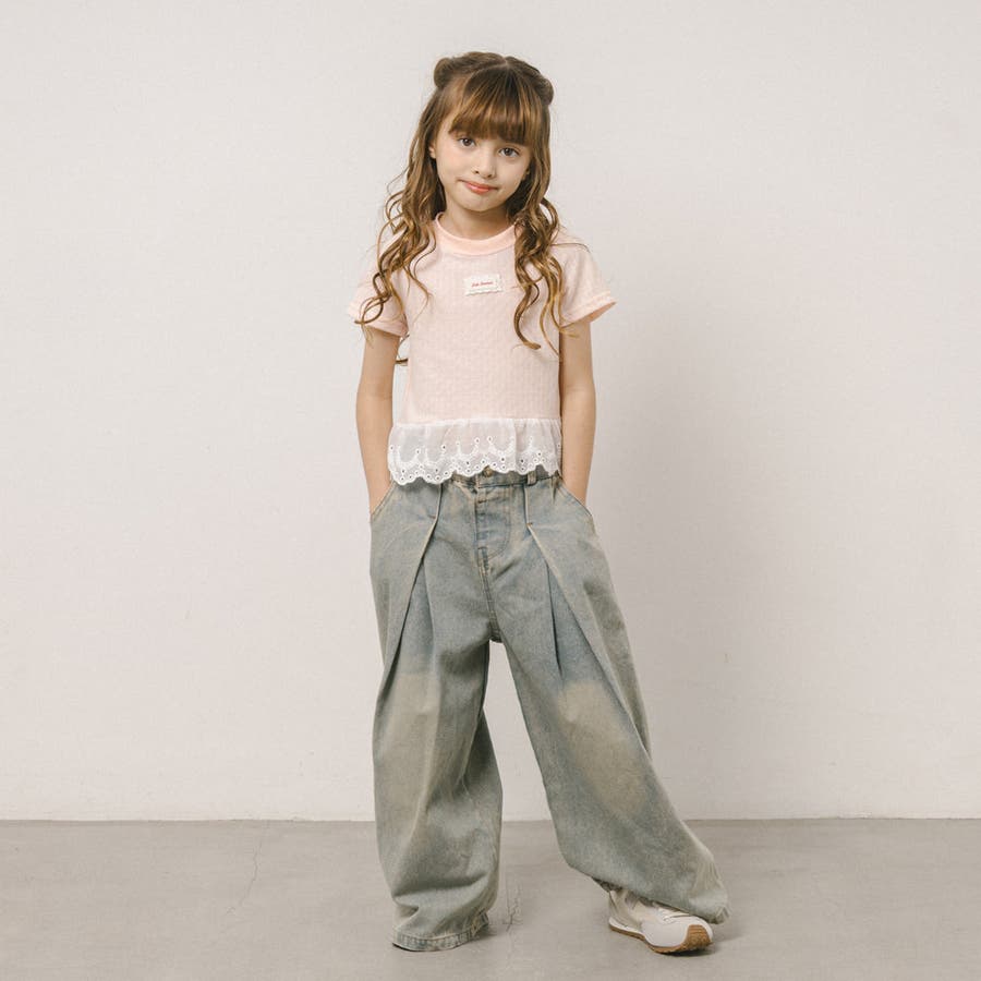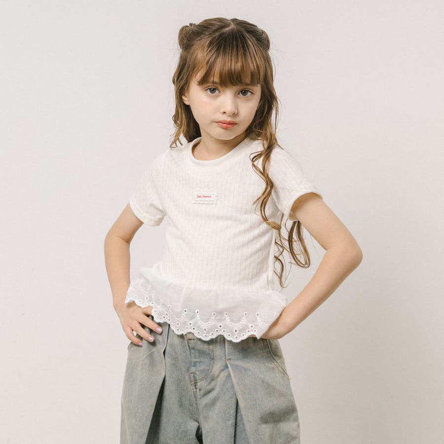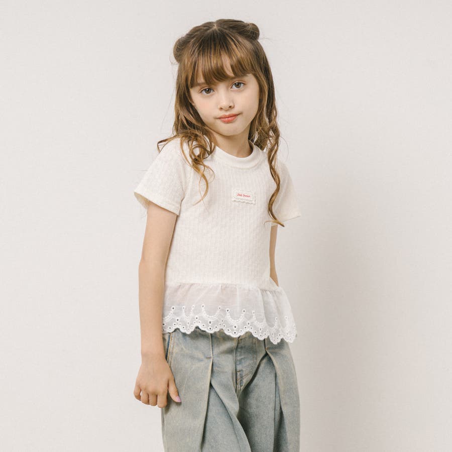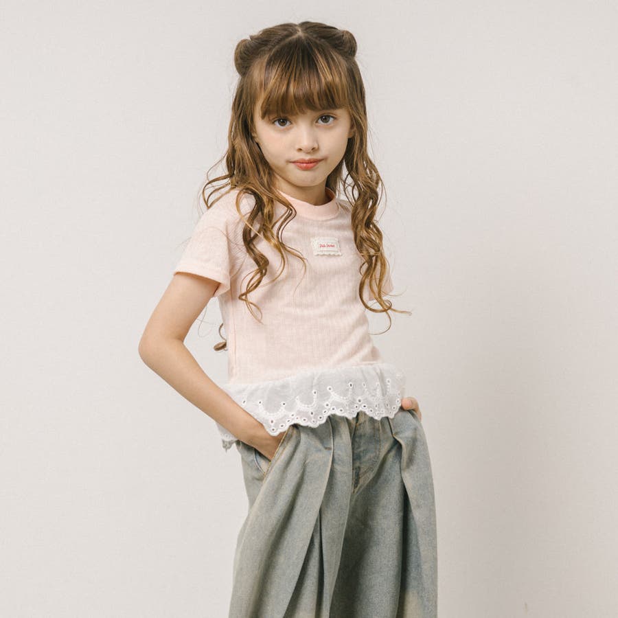 ロゴタグにはふちどりレースを施し、一枚でおしゃれコーデが決まる万能アイテム♪