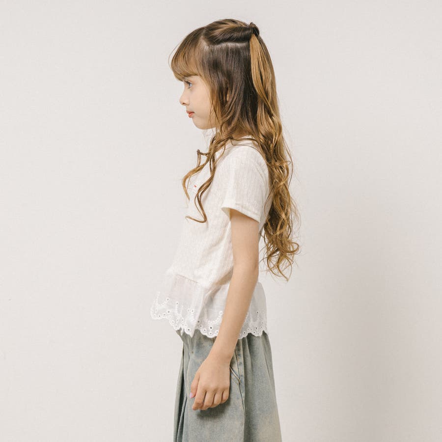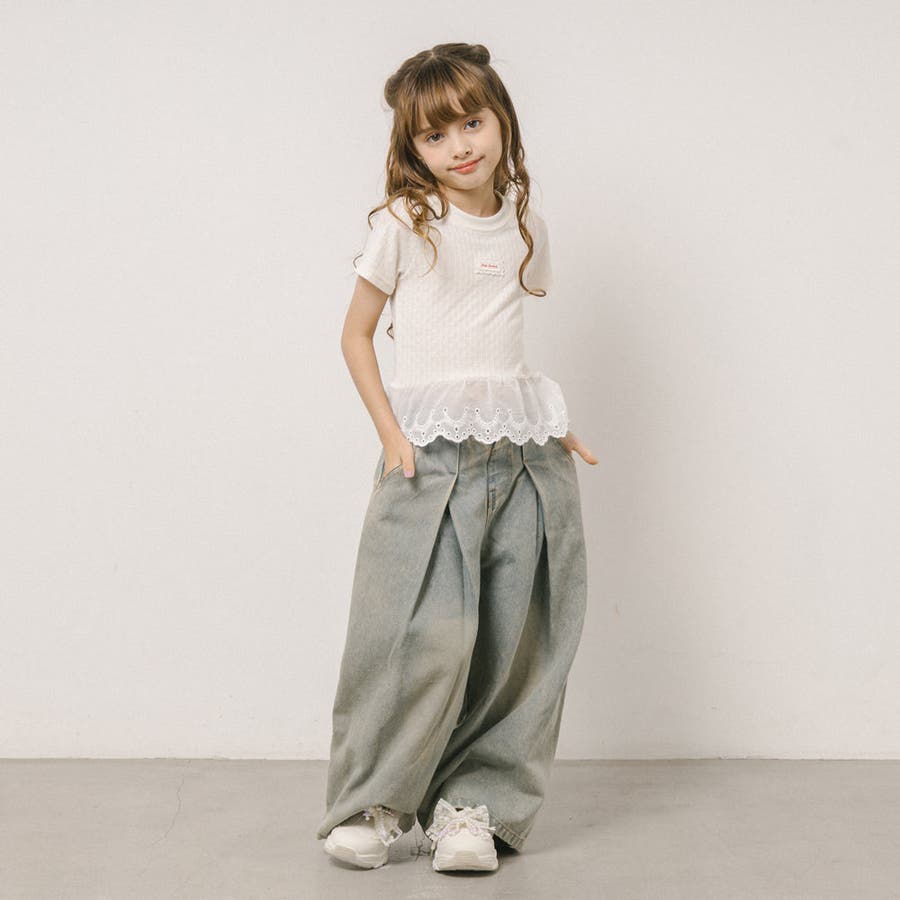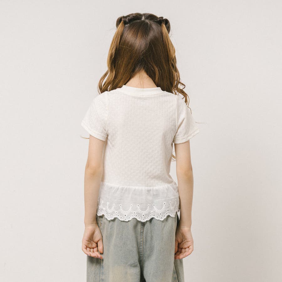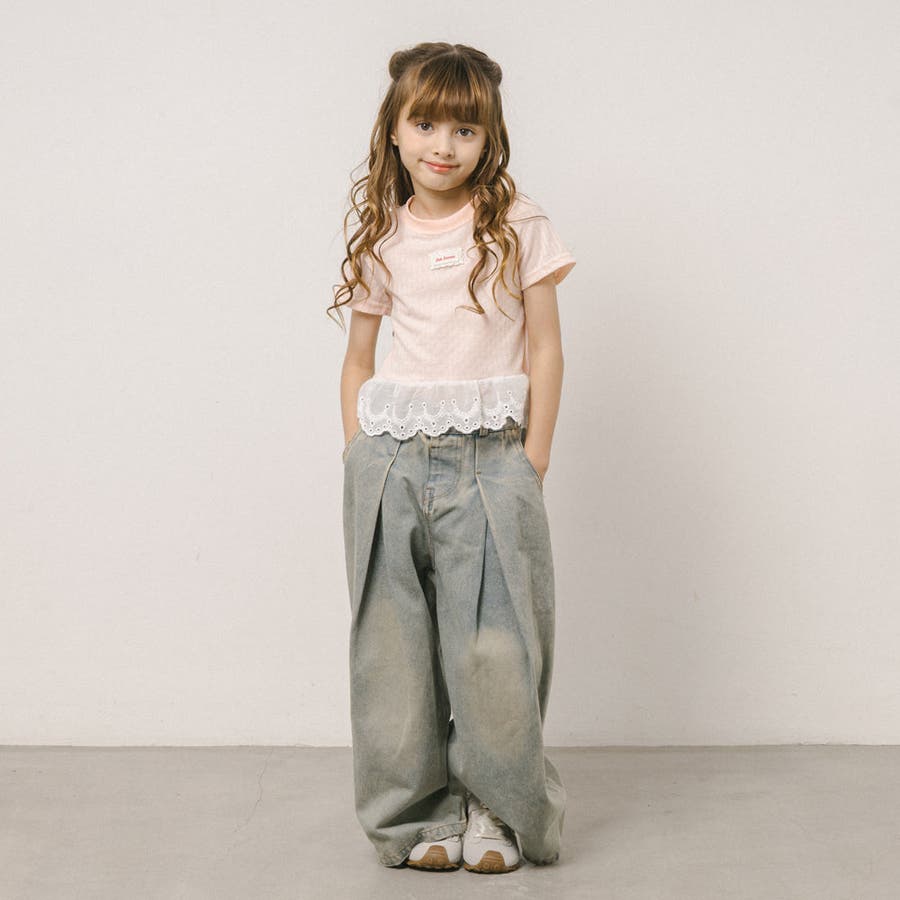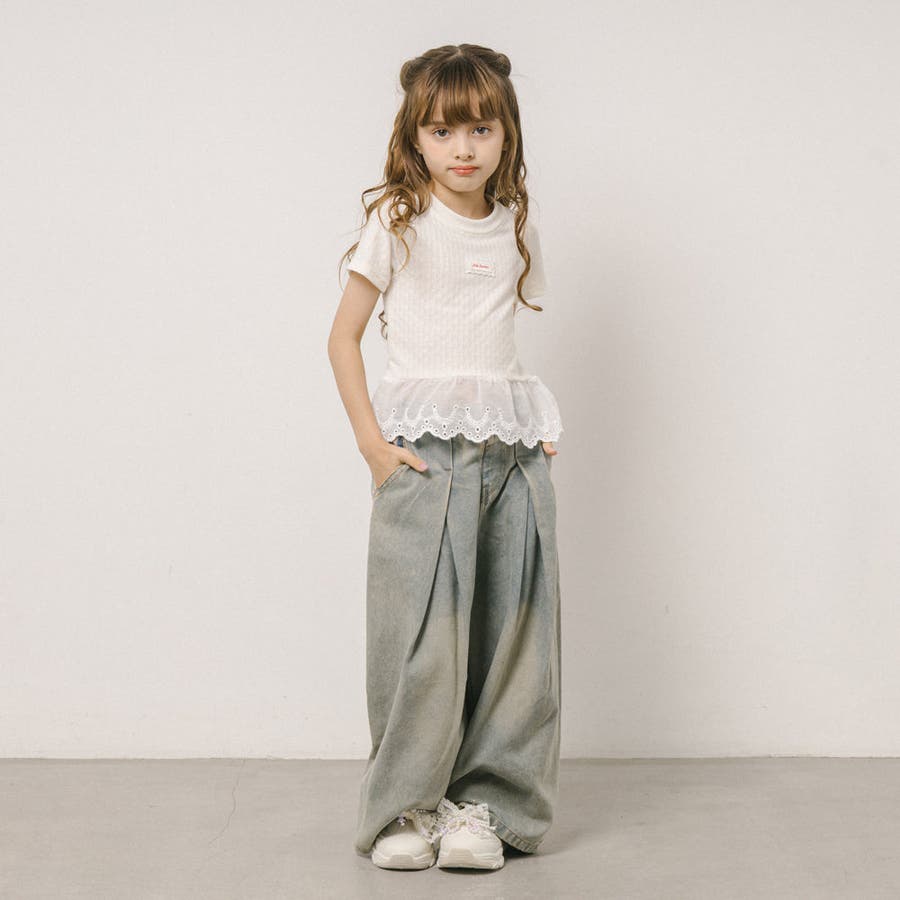 ロゴタグにはふちどりレースを施し、一枚でおしゃれコーデが決まる万能アイテム♪