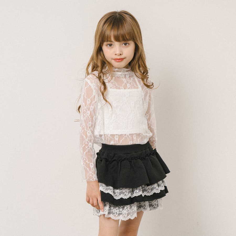 ハイネックレースシアートップス