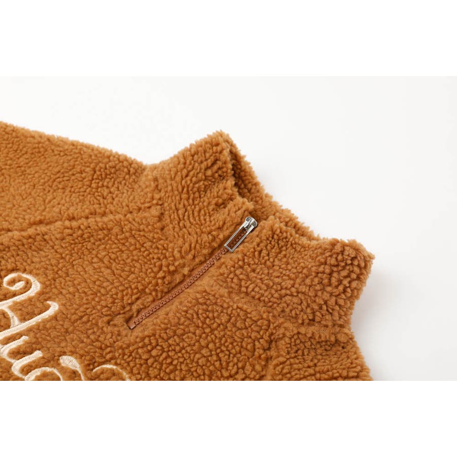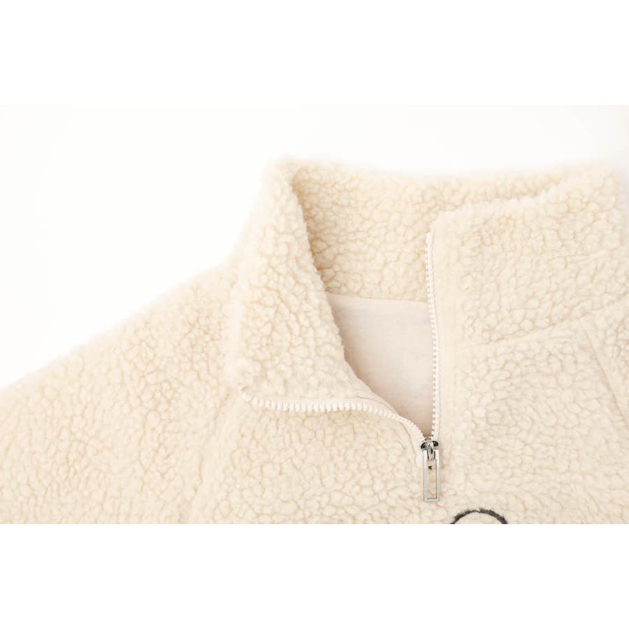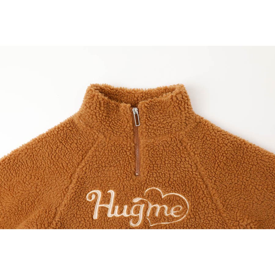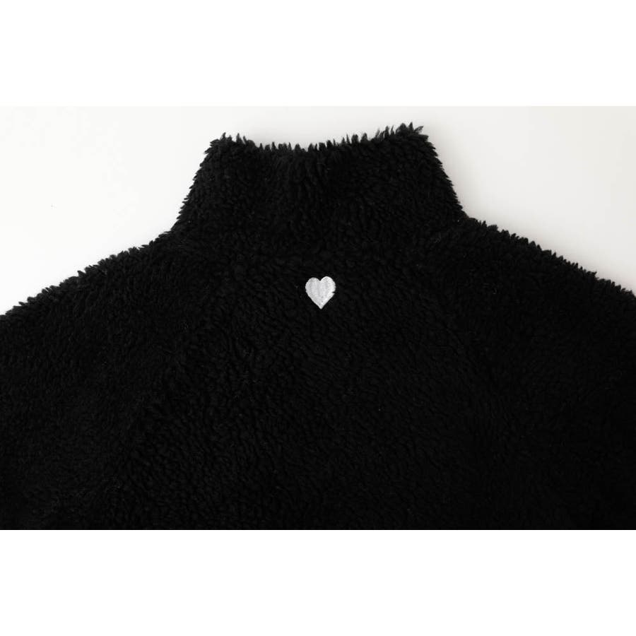 ハートロゴ刺繍スタンドカラーハーフジップトップス