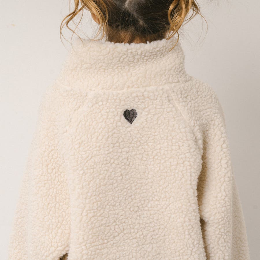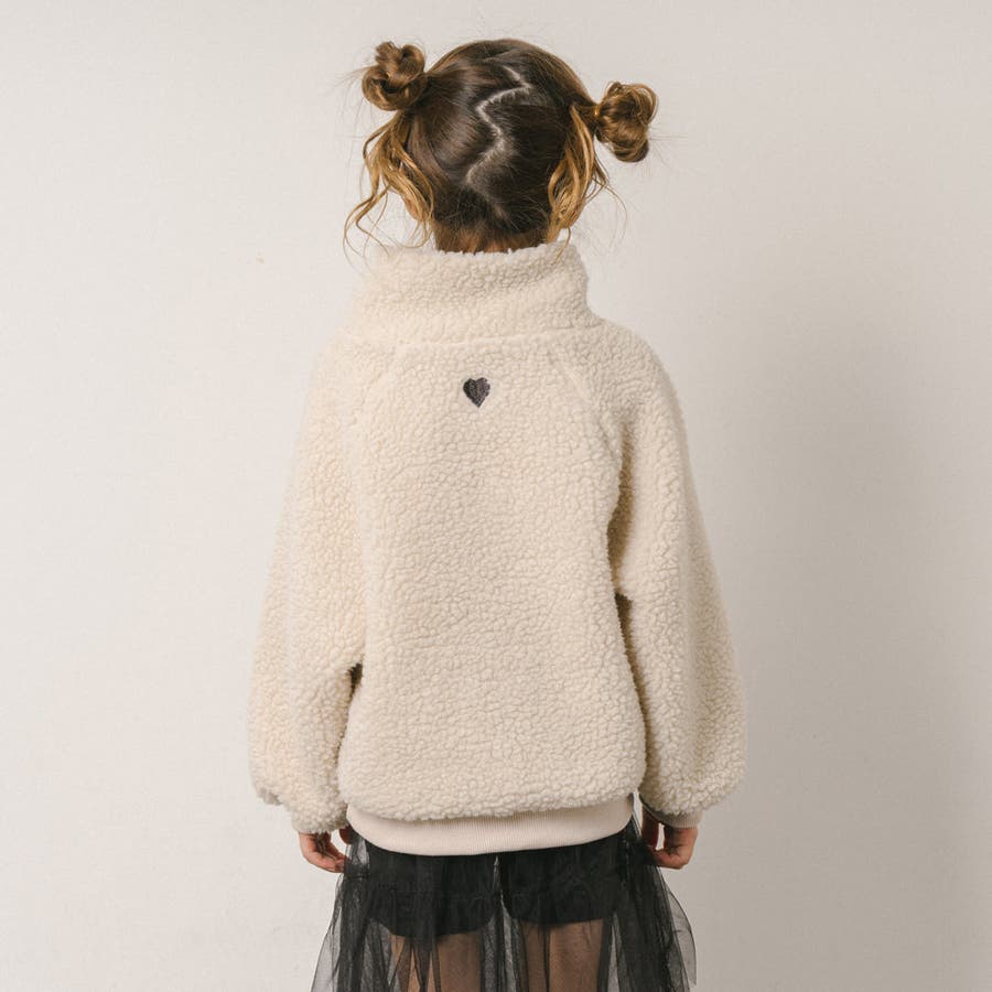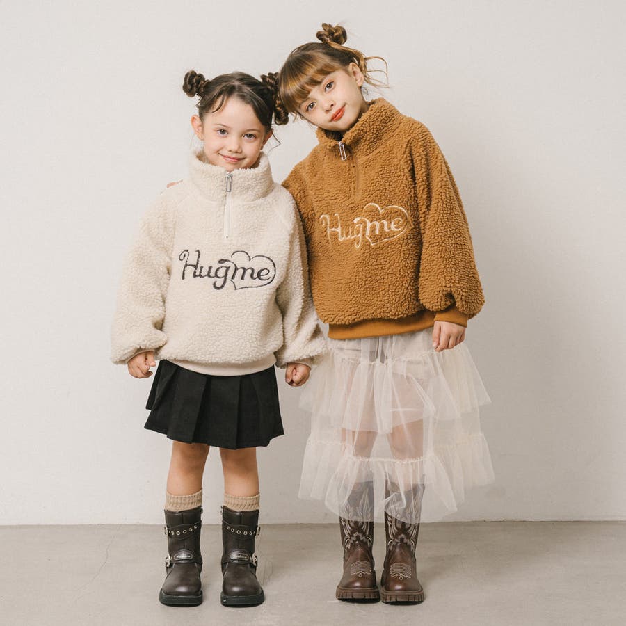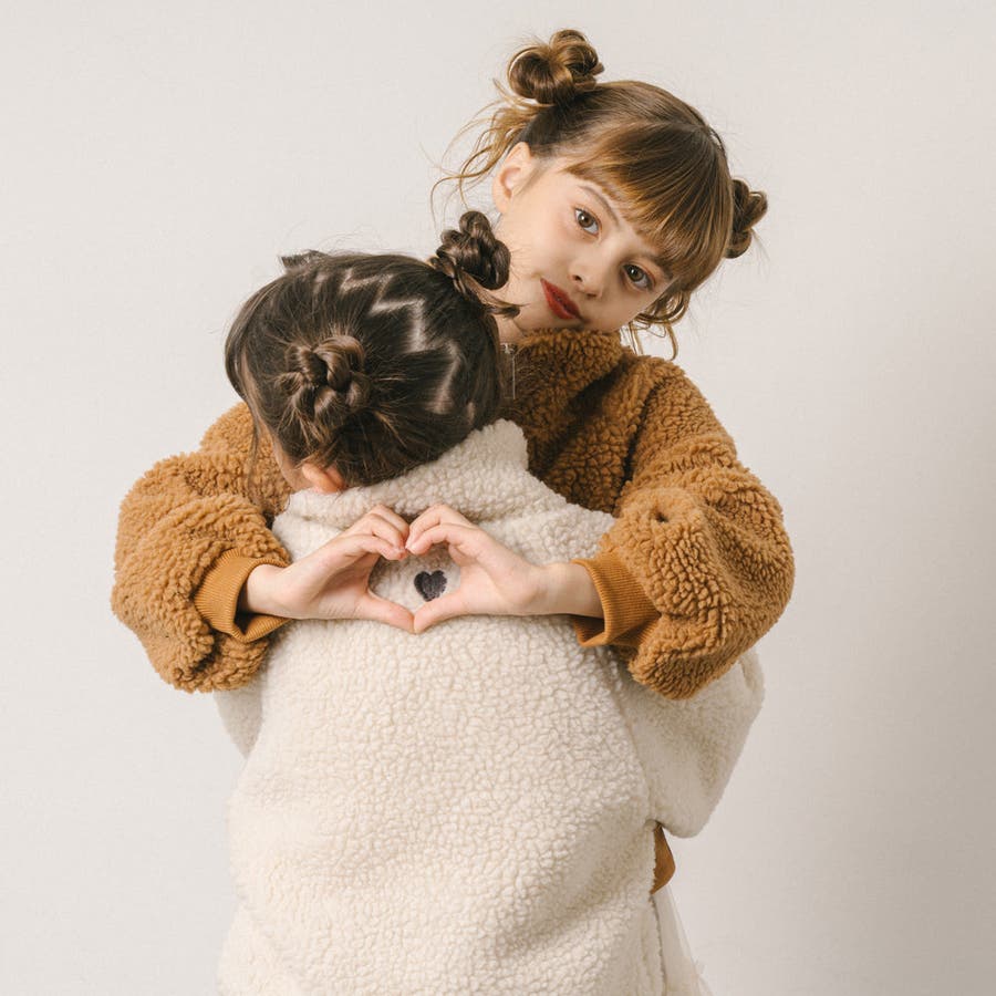 360度どこから見てもかわいい、バックロゴ刺繍と袖口のハートは、きょうだいやお友達と“ハグ”したときにリンクする特別なデザイン。