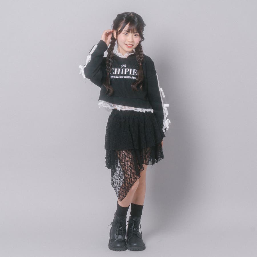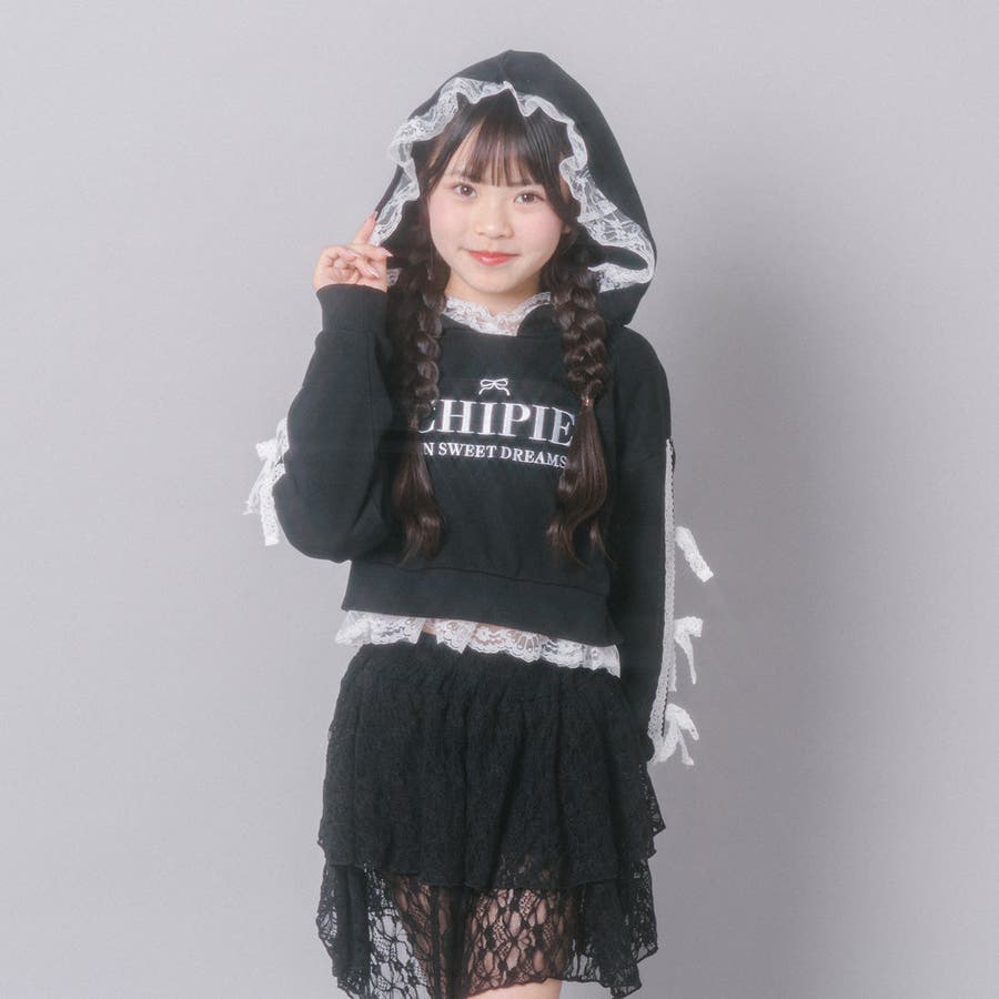 【CHIPIE/シピ】レースリボンラインフーディー