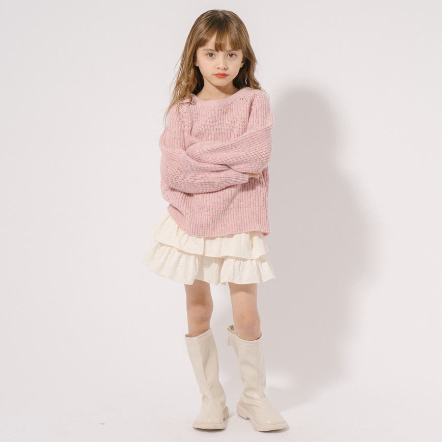 さらっと一枚でこなれ感漂うミックス系ゆるニットは人気のプリーツスカートや