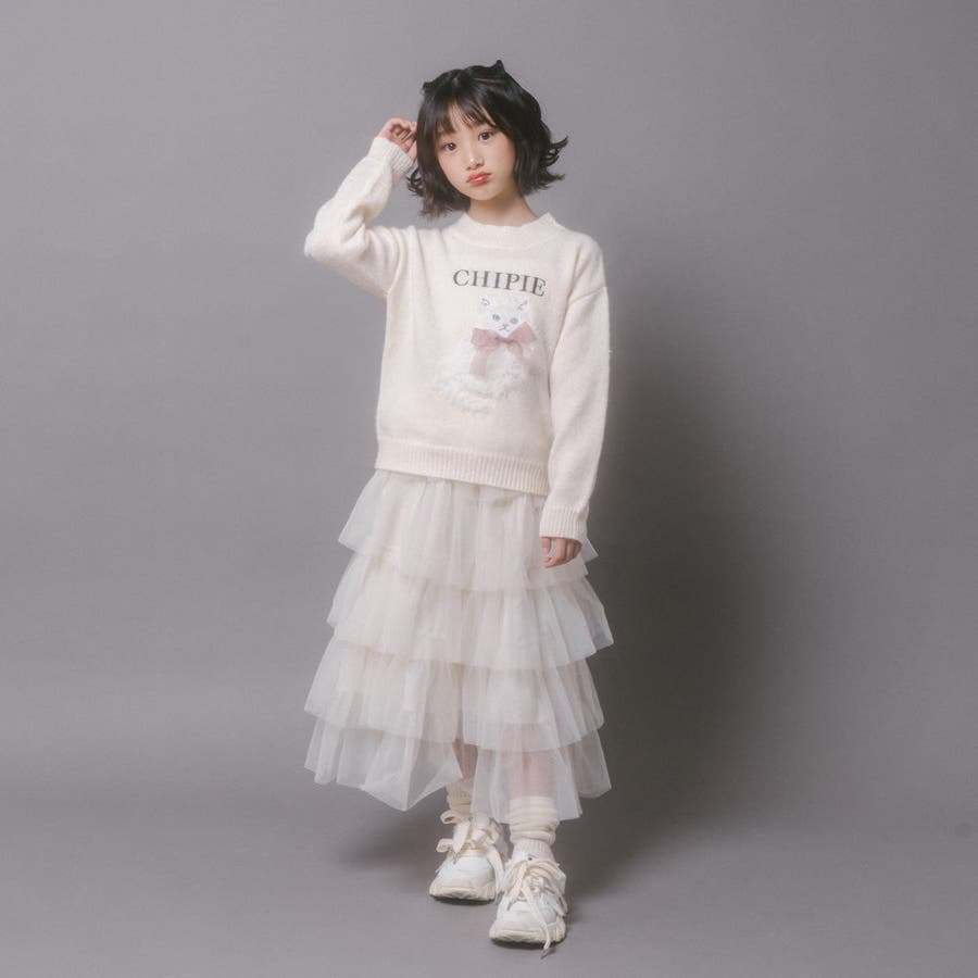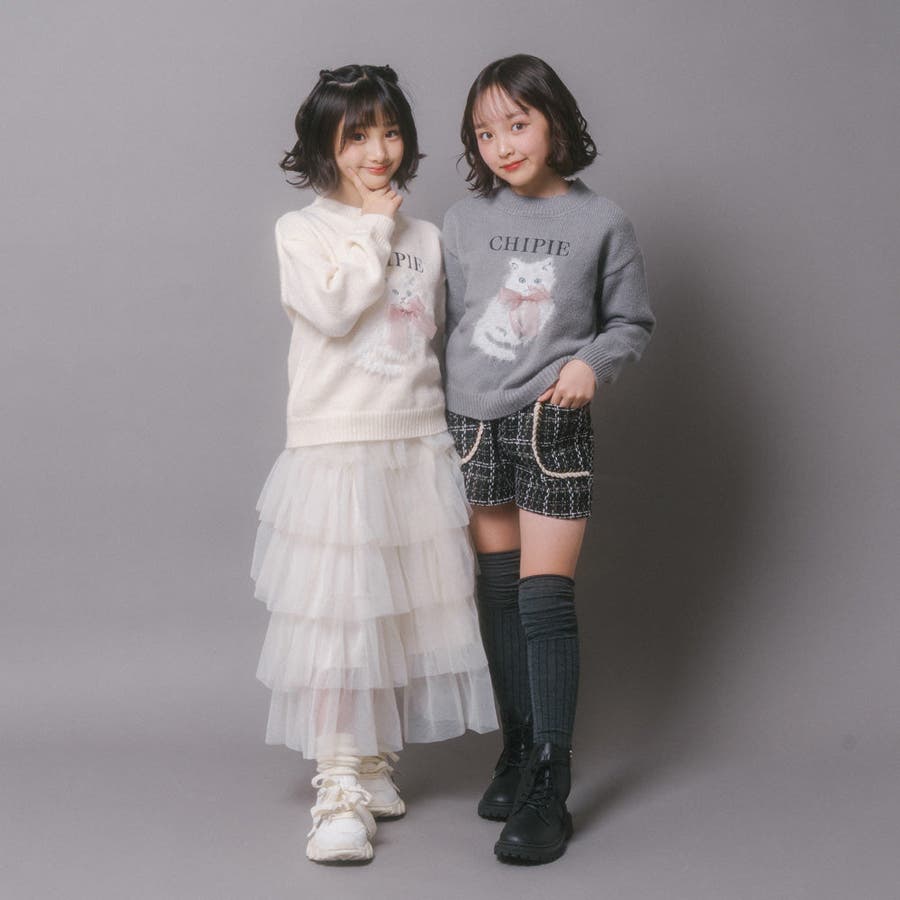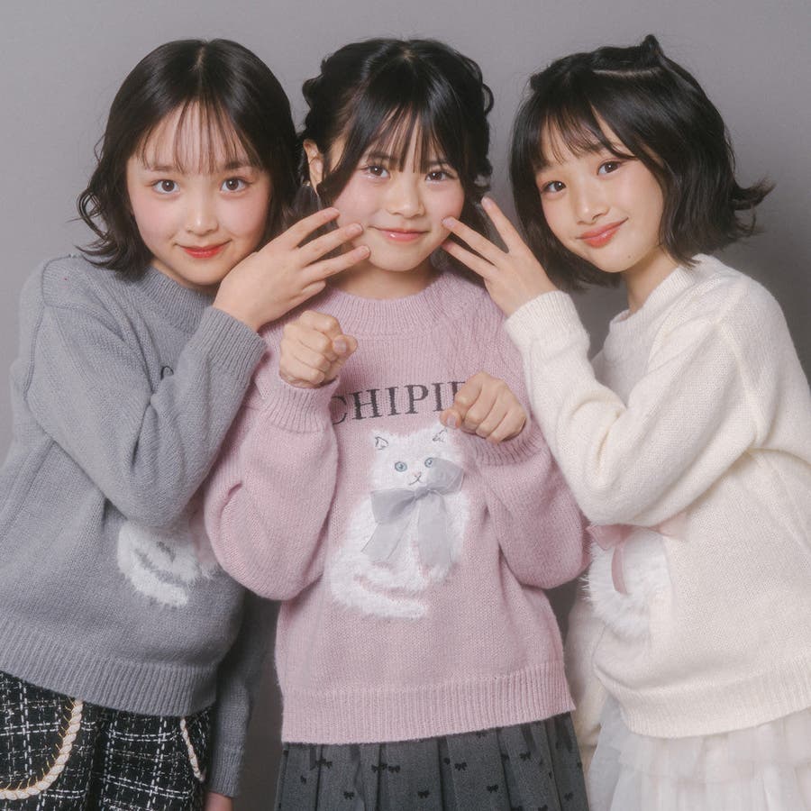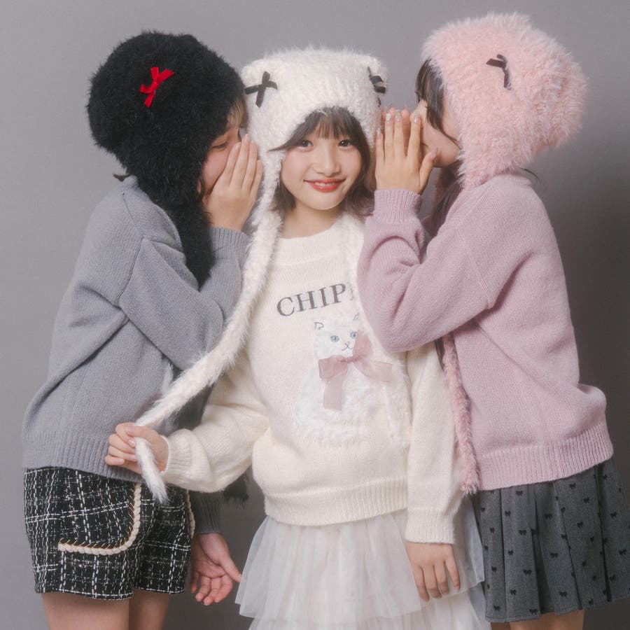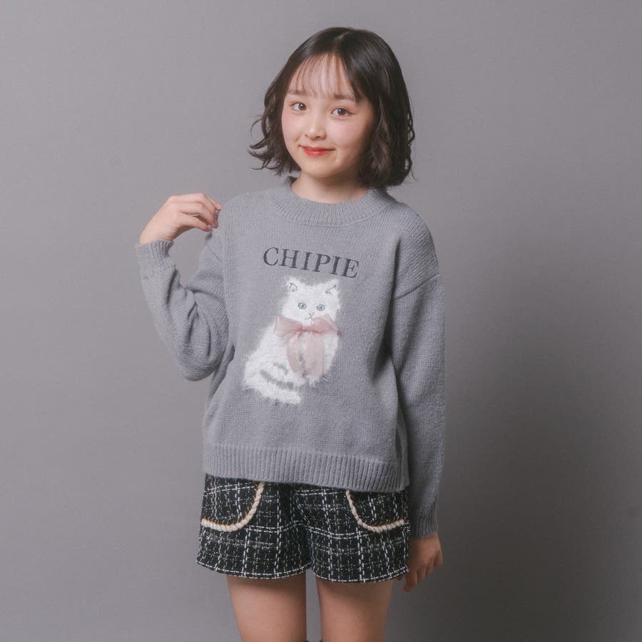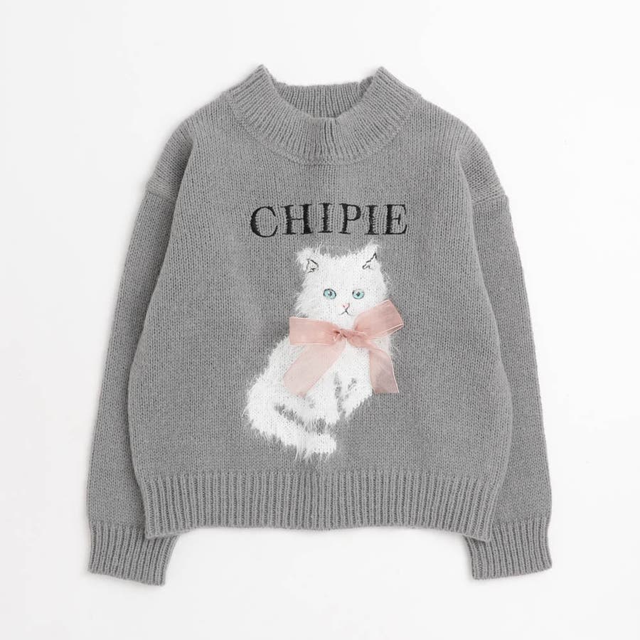 【CHIPIE/シピ】ふわふわシャギーキャットデザインニット
