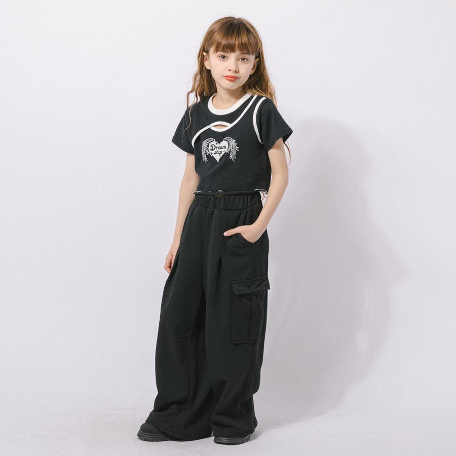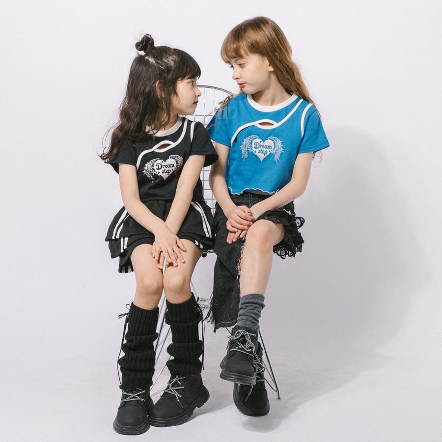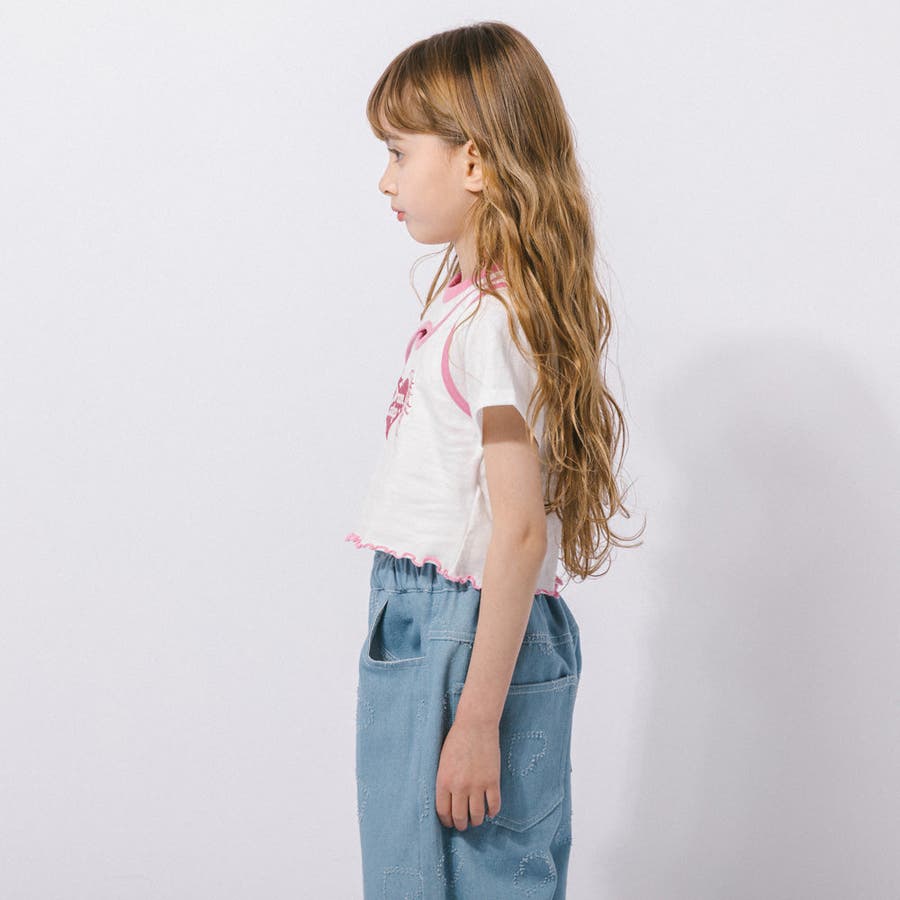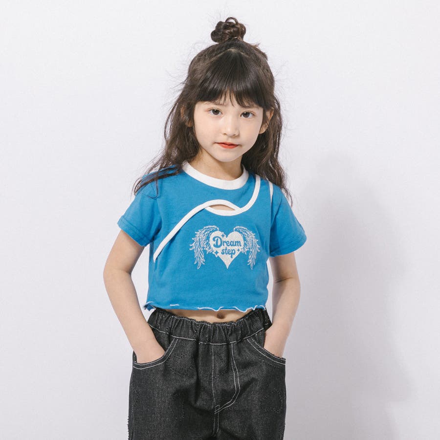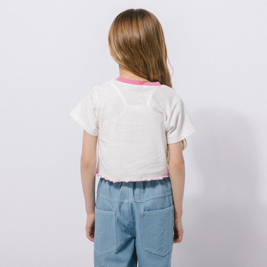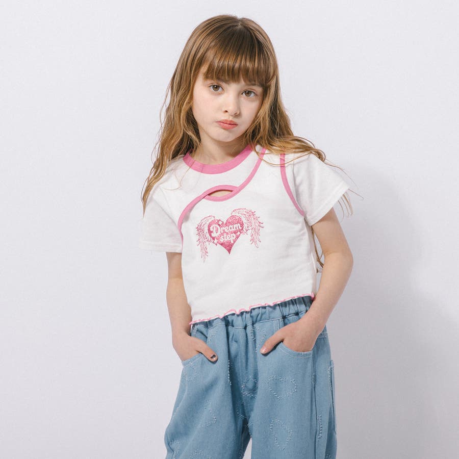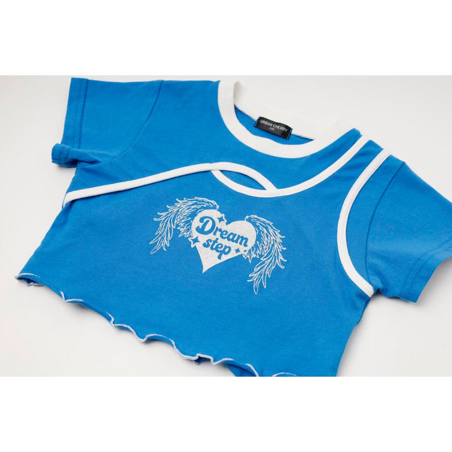 【綿100%/吸水速乾】ハートエンジェルラメプリントカットクロップドTシャツ