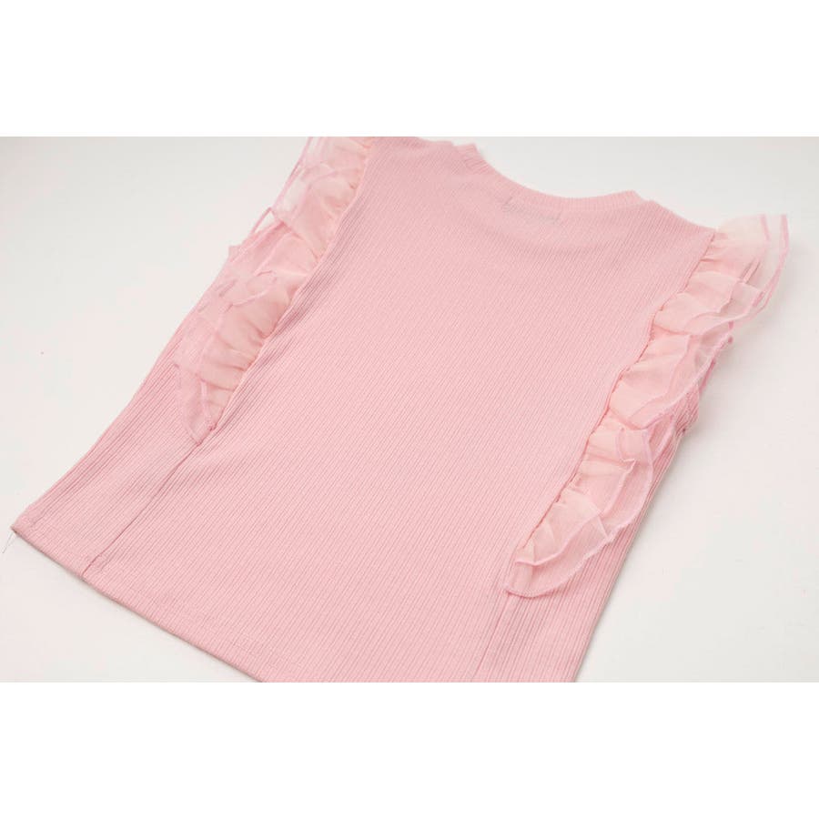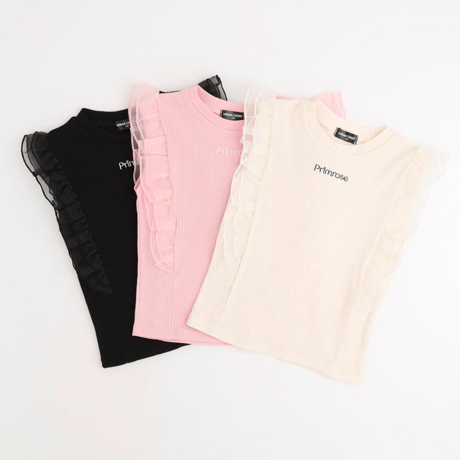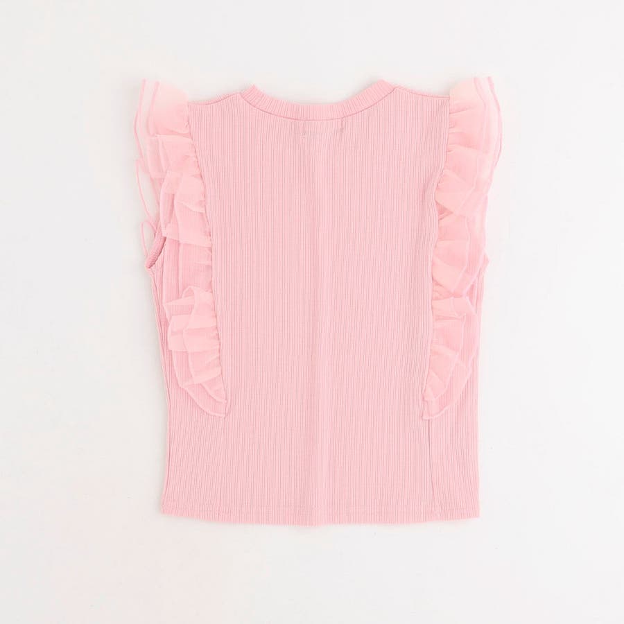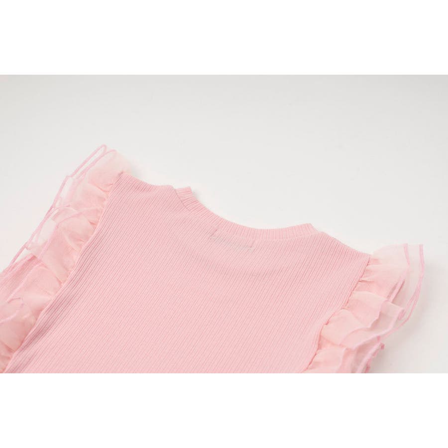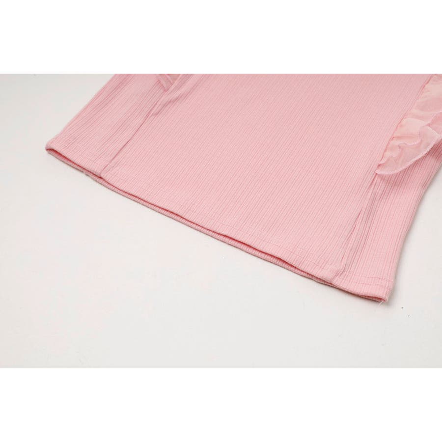 「快適さらリブ素材」シアーフリルノースリーブリブトップス