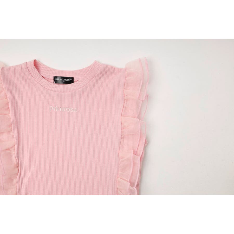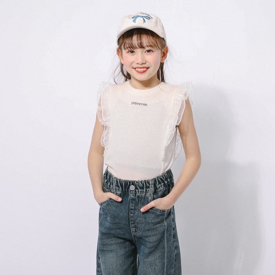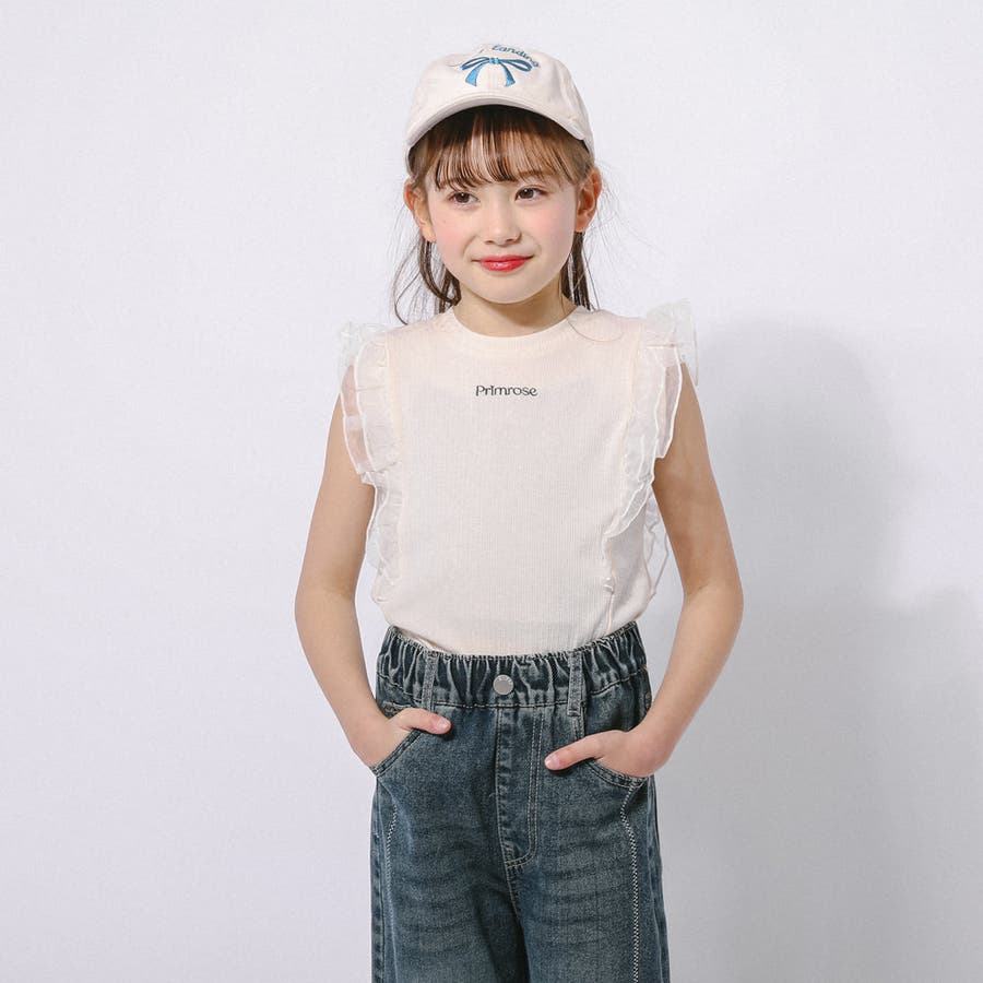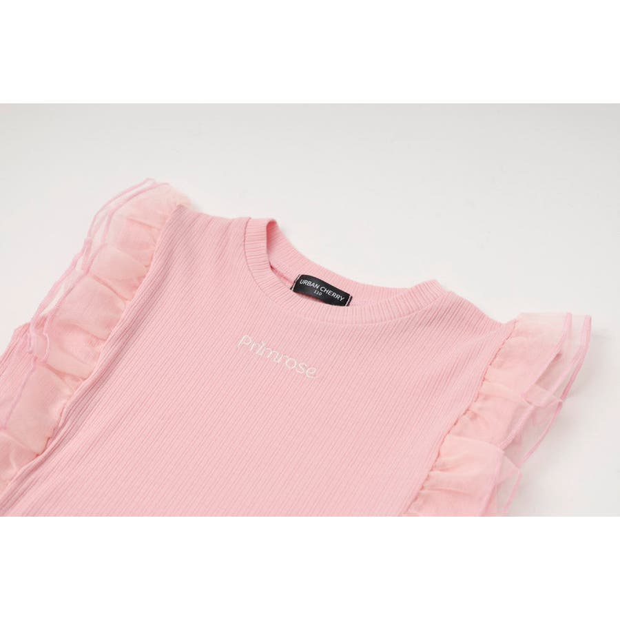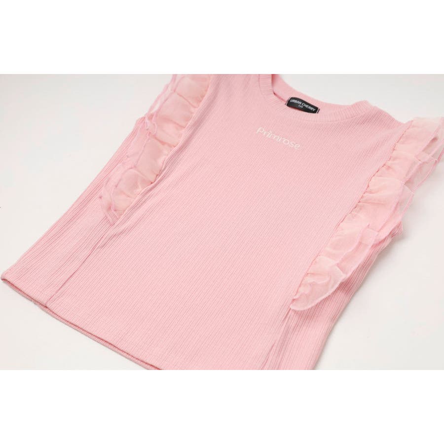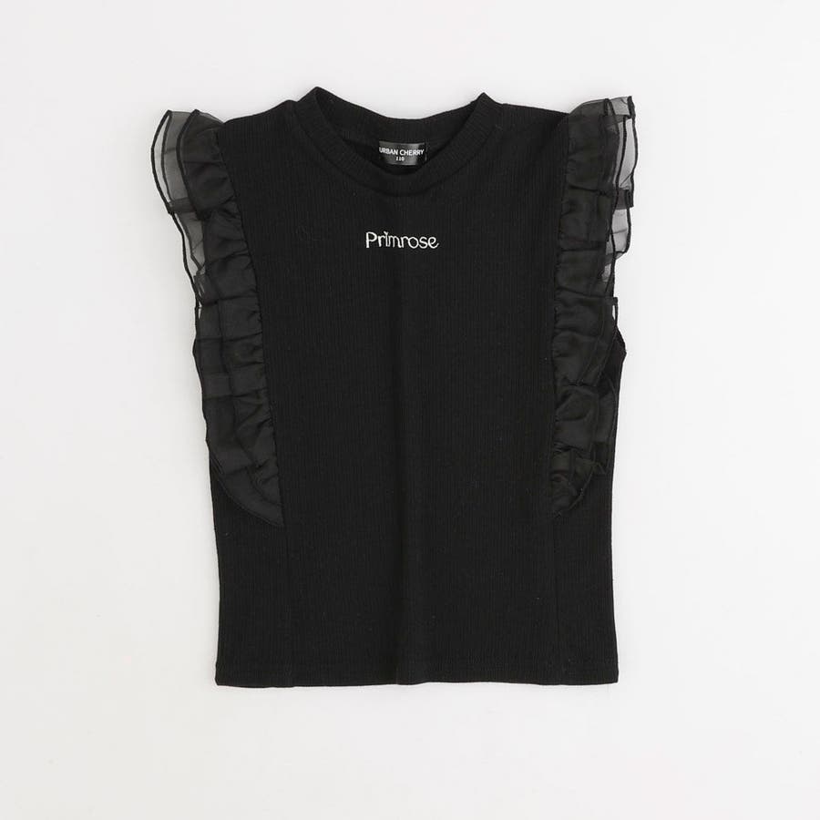 「快適さらリブ素材」シアーフリルノースリーブリブトップス