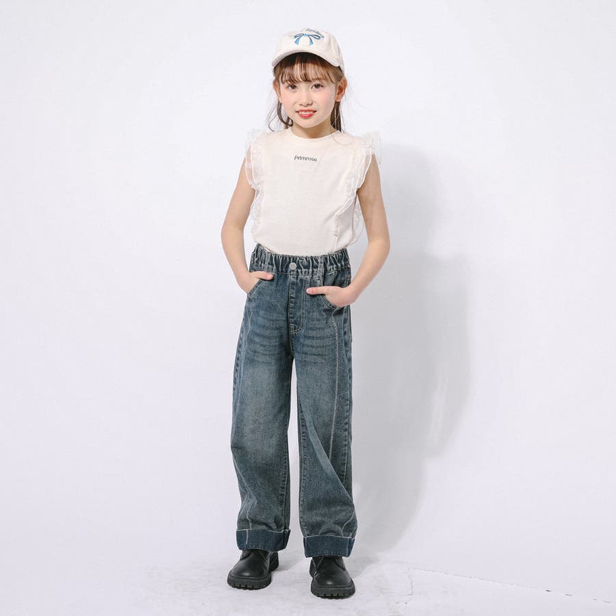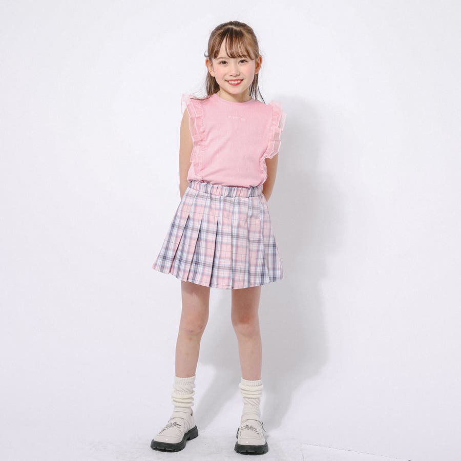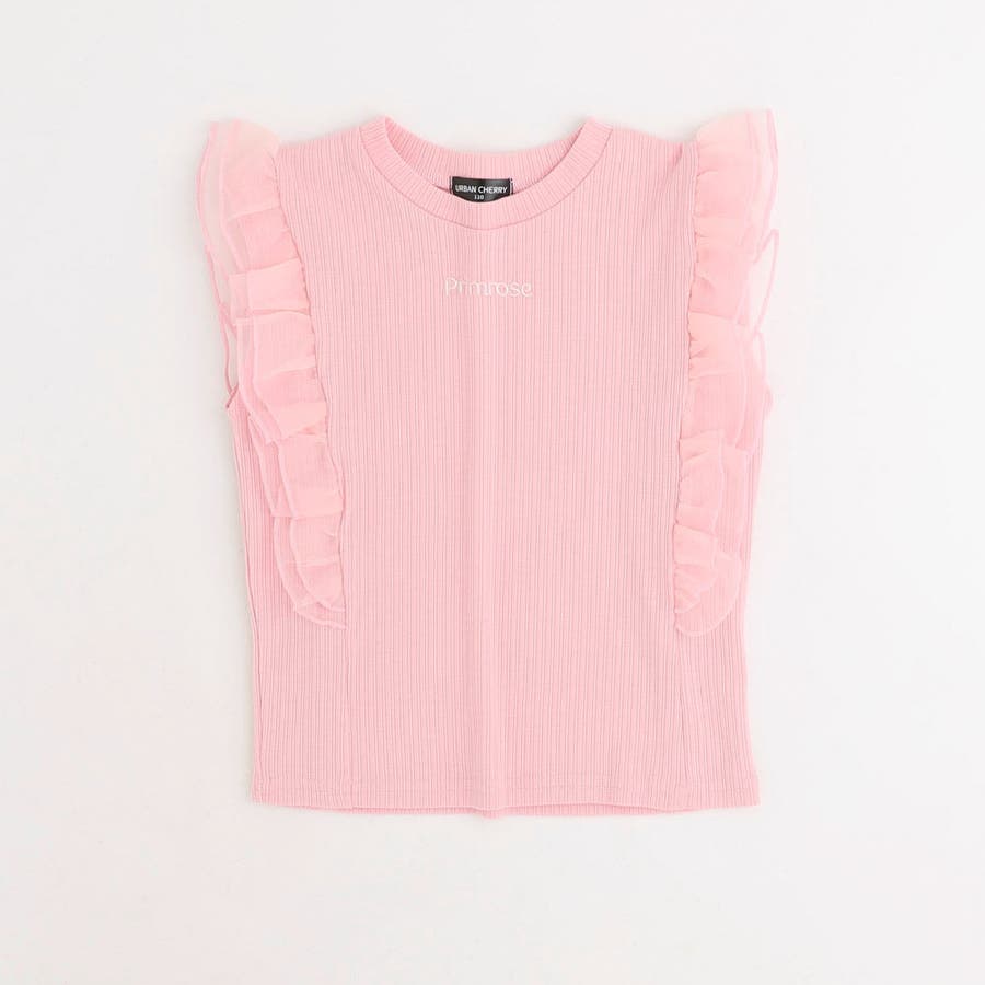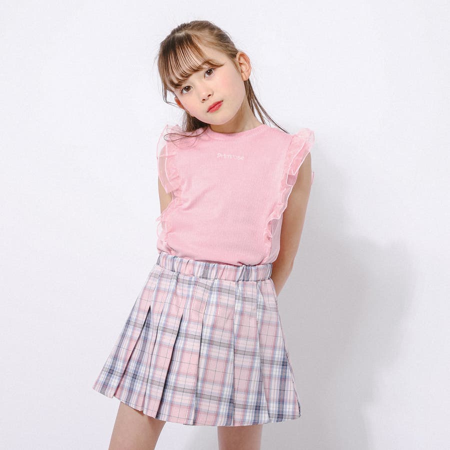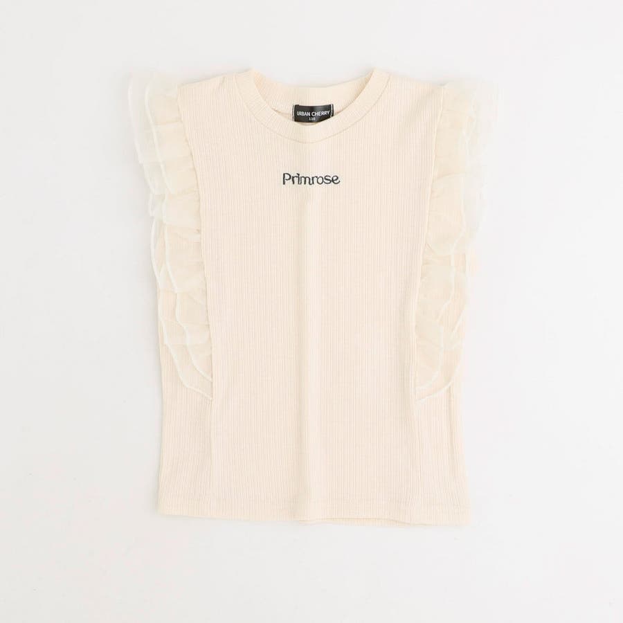 「快適さらリブ素材」シアーフリルノースリーブリブトップス