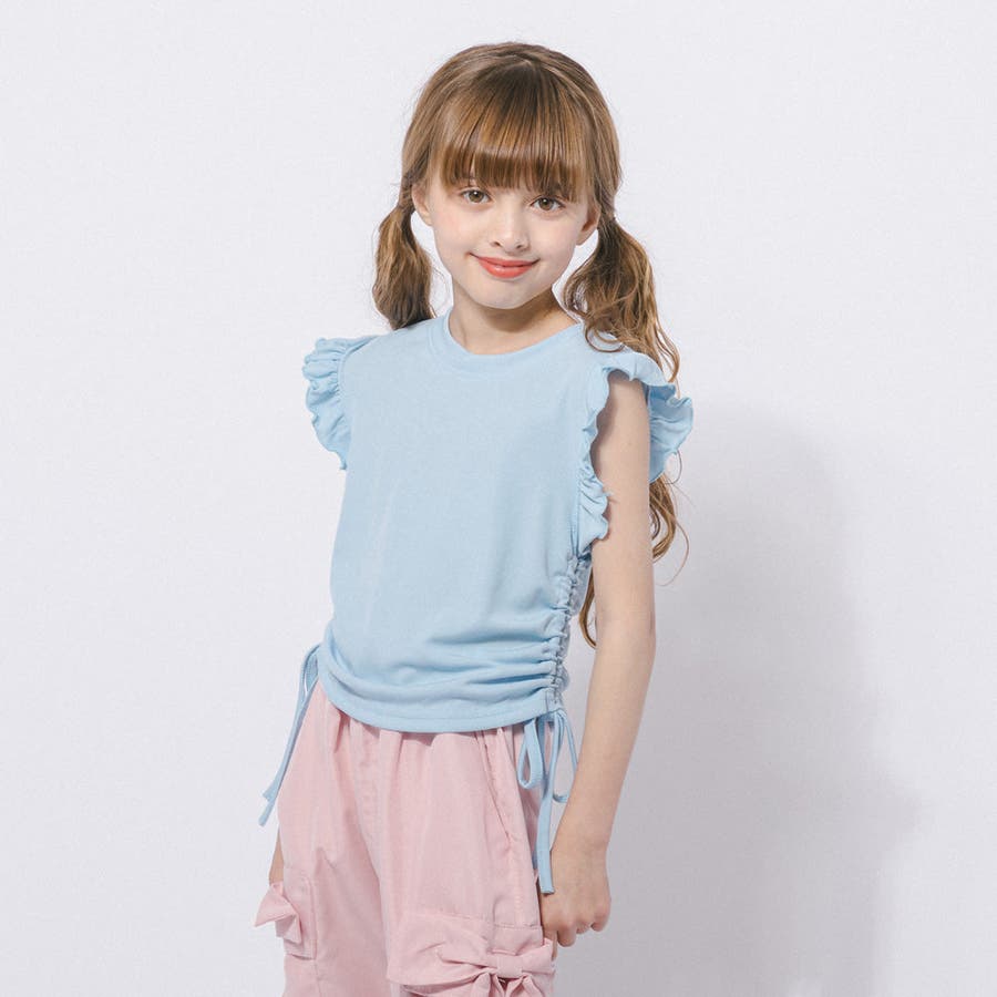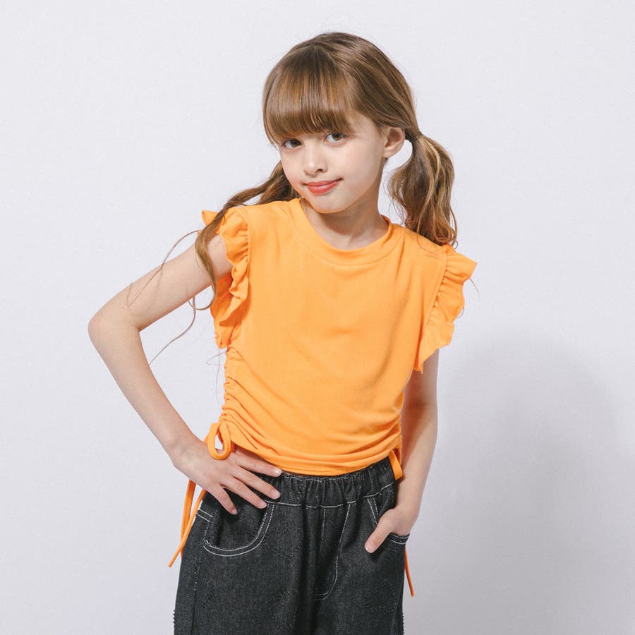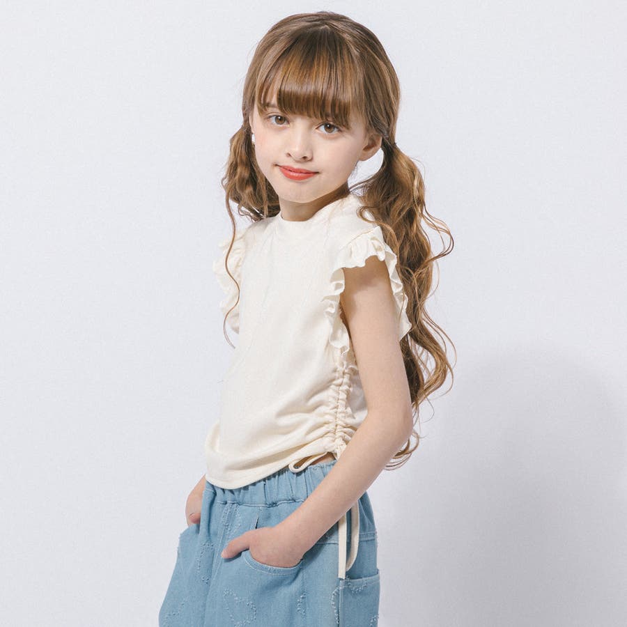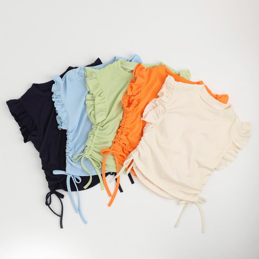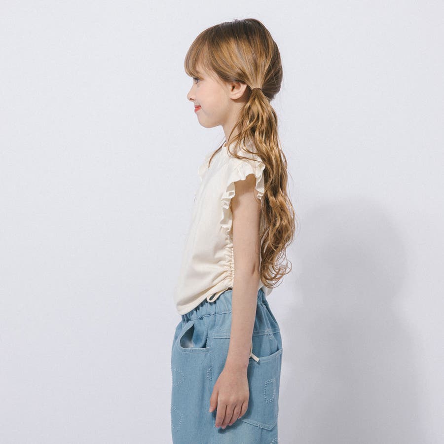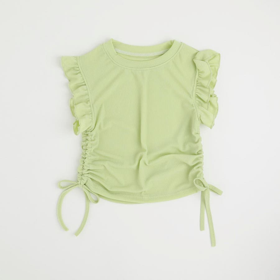 フレンチスリーブフリルサイドギャザートップス