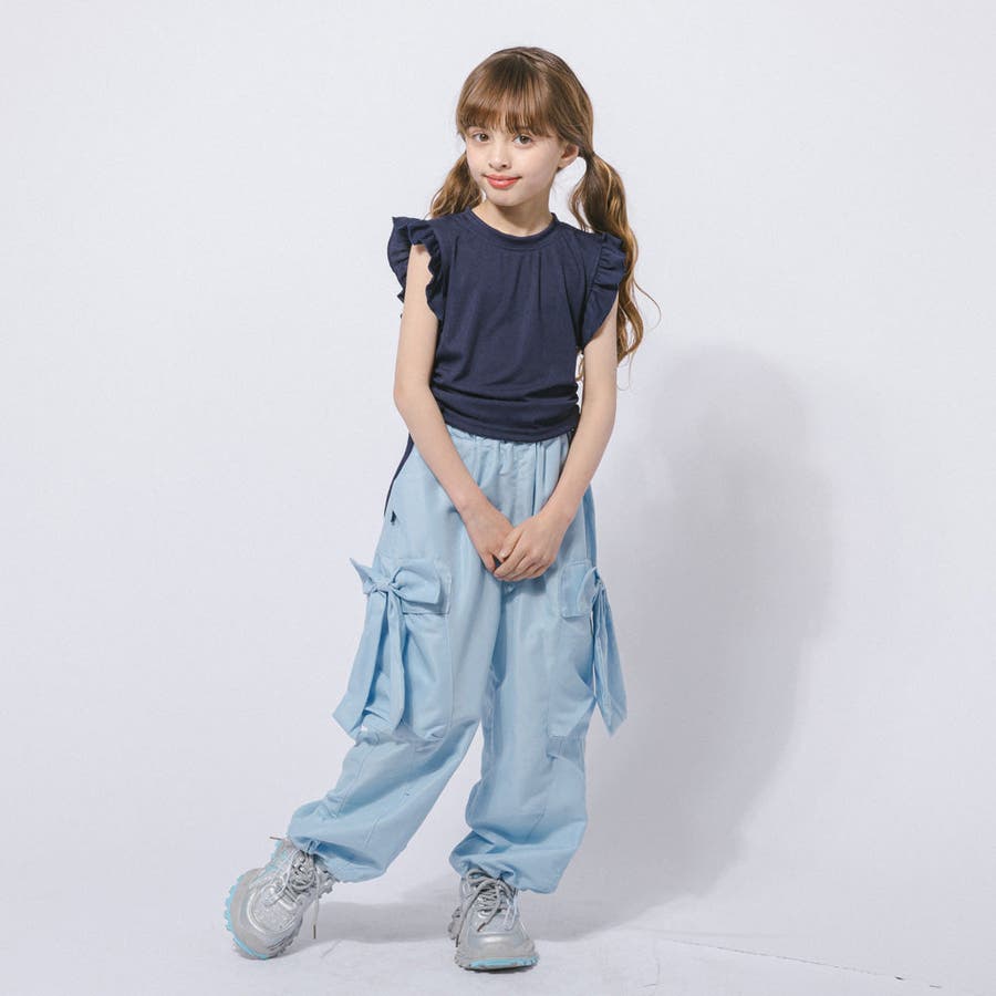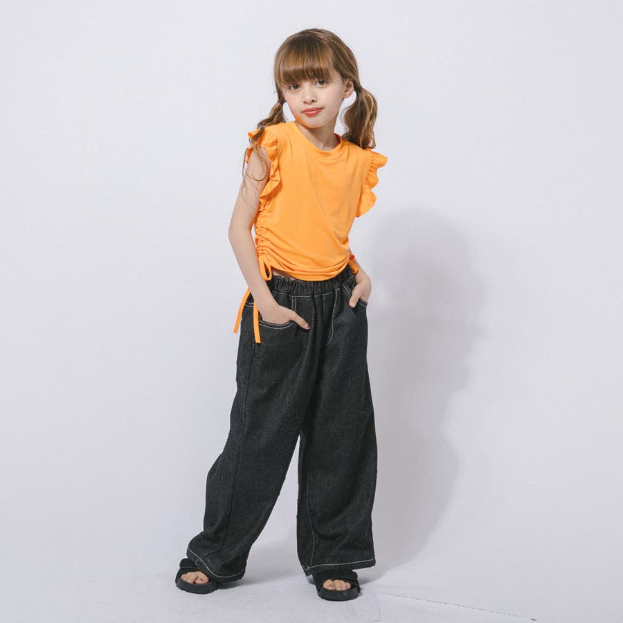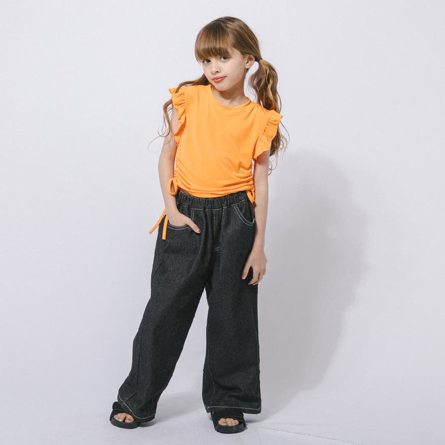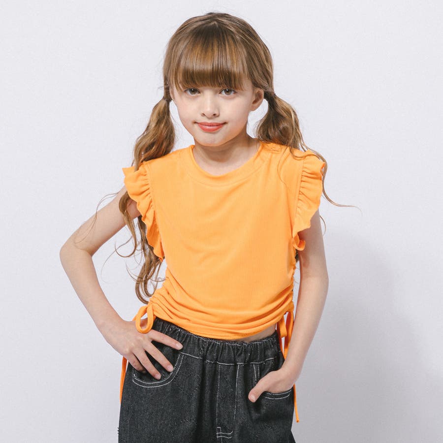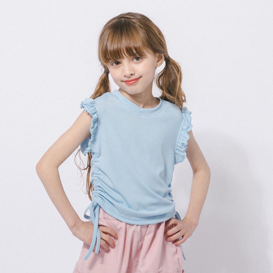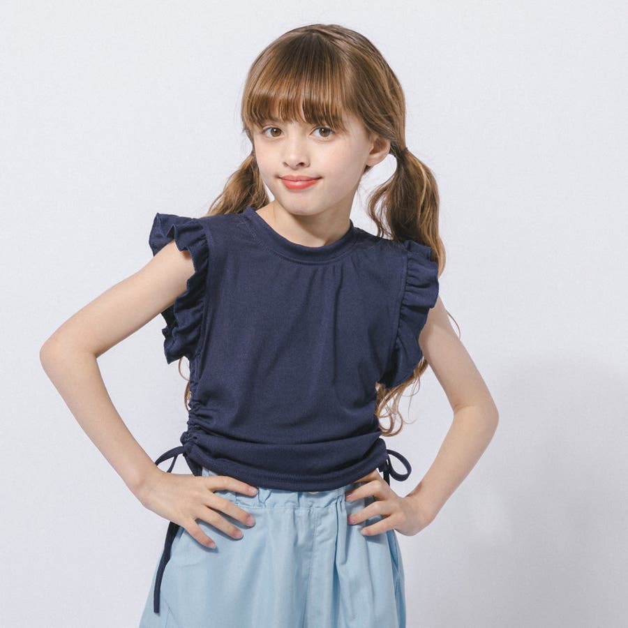フレンチスリーブフリルサイドギャザートップス