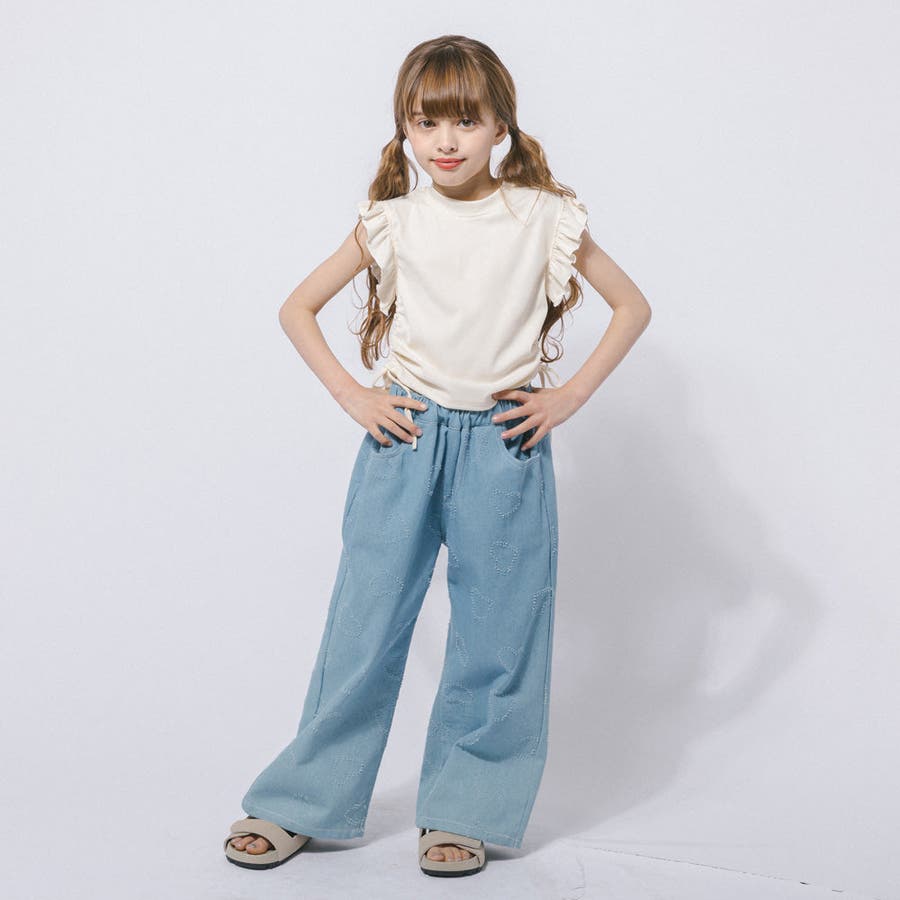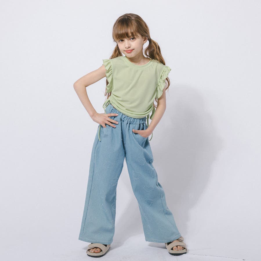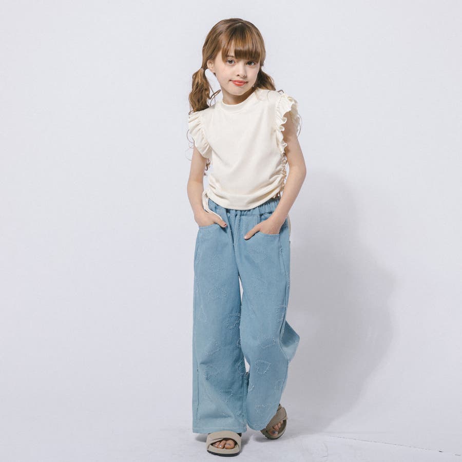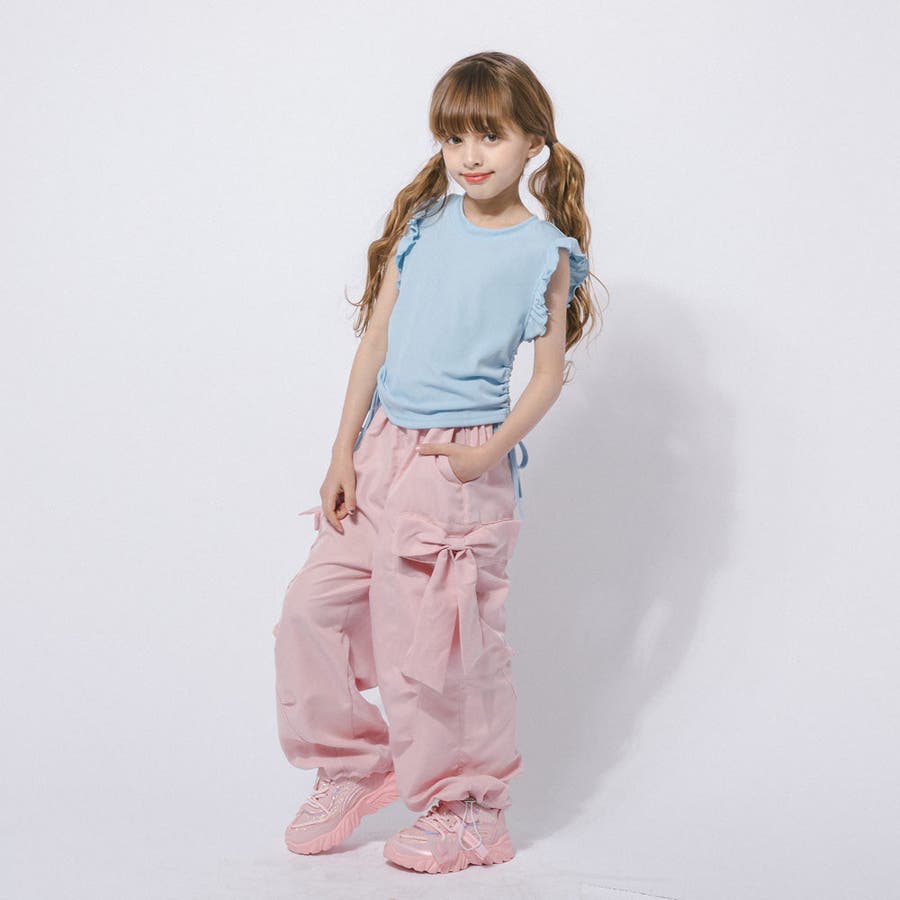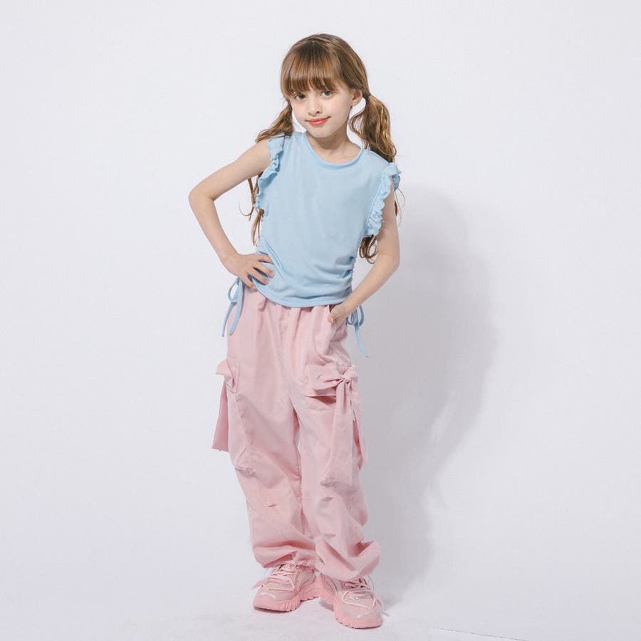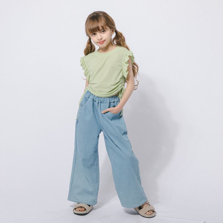 フレンチスリーブフリルサイドギャザートップス