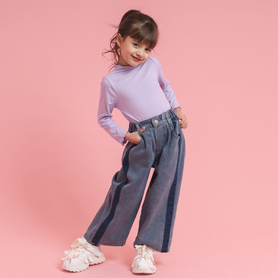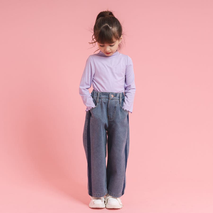 サイドラインデニムストレートパンツ