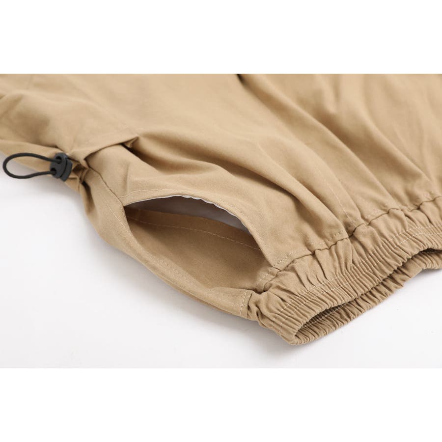 ウエストゴムに調節紐でストレスフリーな履き心地や両サイドのポケット付きで