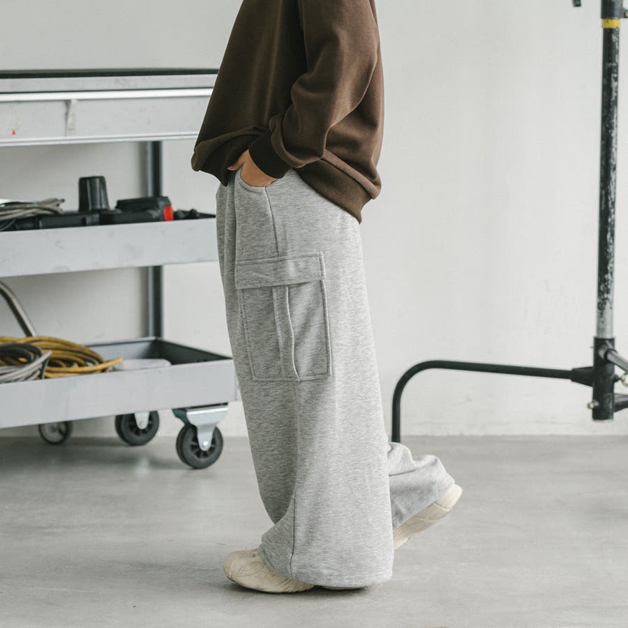 柔らかいのにガシガシ使ってもよれない高耐久スウェット素材を使用した、今っぽいルーズシルエットのカーゴパンツ。