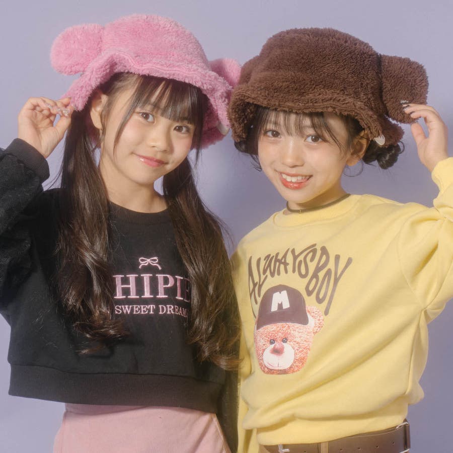 くま耳がぴょこんと生えた愛らしいバケットハット。